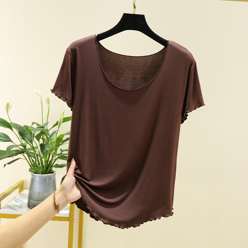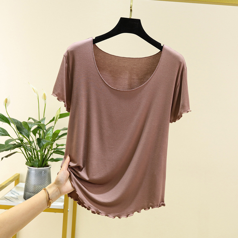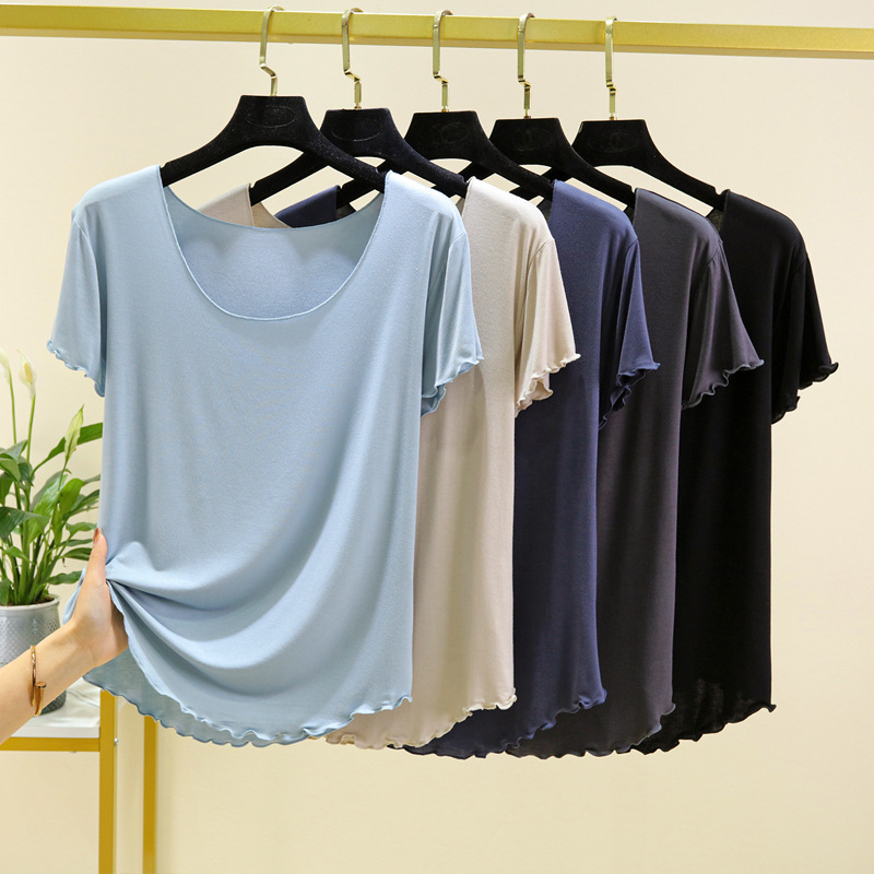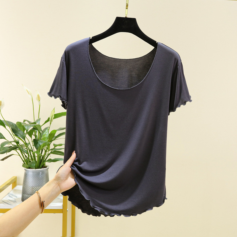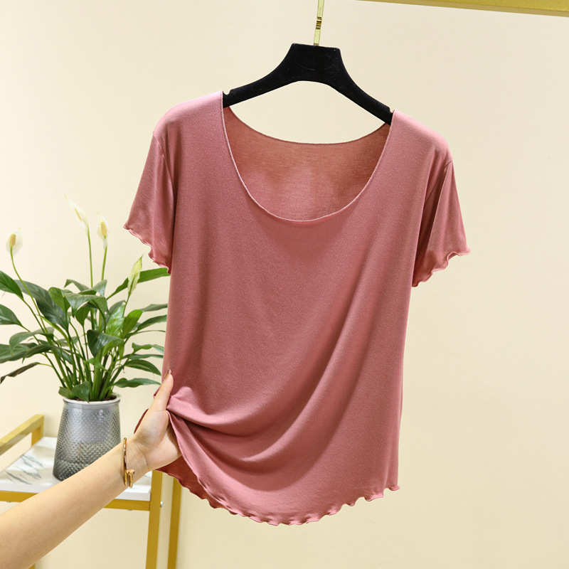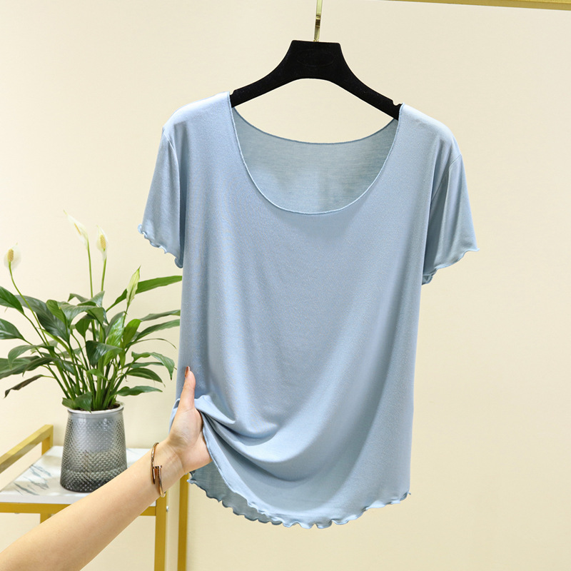 반팔 티셔츠 여성용 여름 한국식 올매치 슬림핏 모달 베이스 셔츠 이어 탑 여름 스몰 셔츠