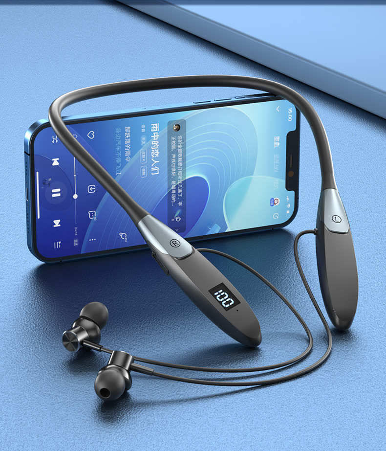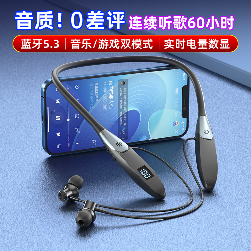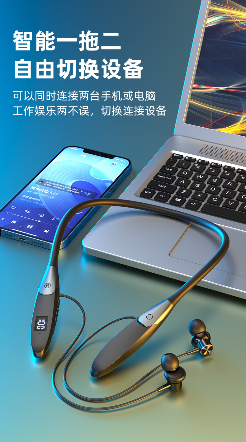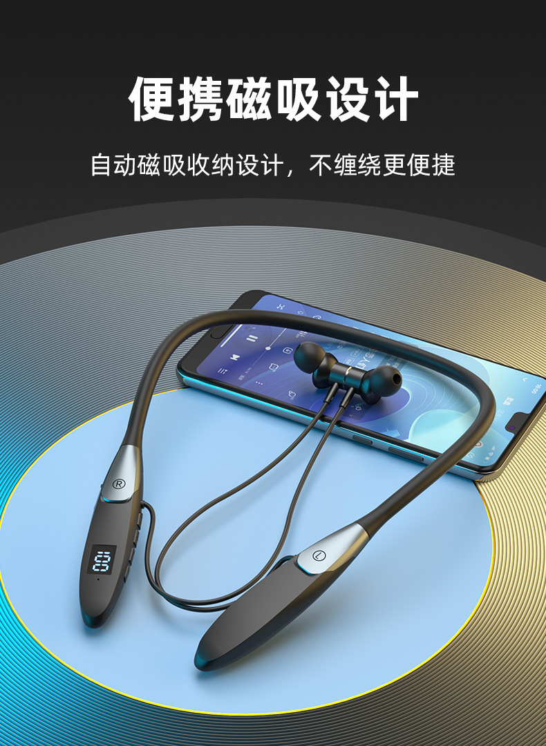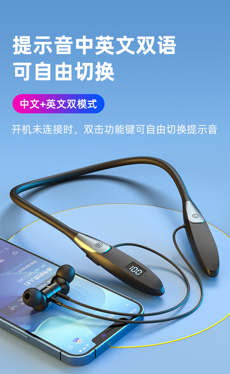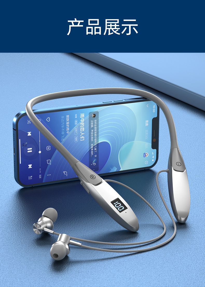 크로스 보더 디지털 디스플레이로 새로운 목 걸이 블루투스 헤드셋 대용량 전력 스포츠 게임 목 걸이 블루투스 헤드셋을 카드에 삽입 할 수 있습니다