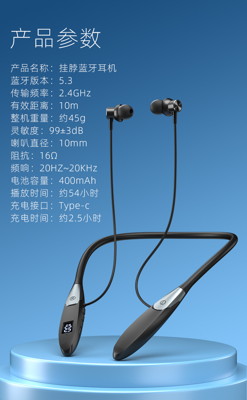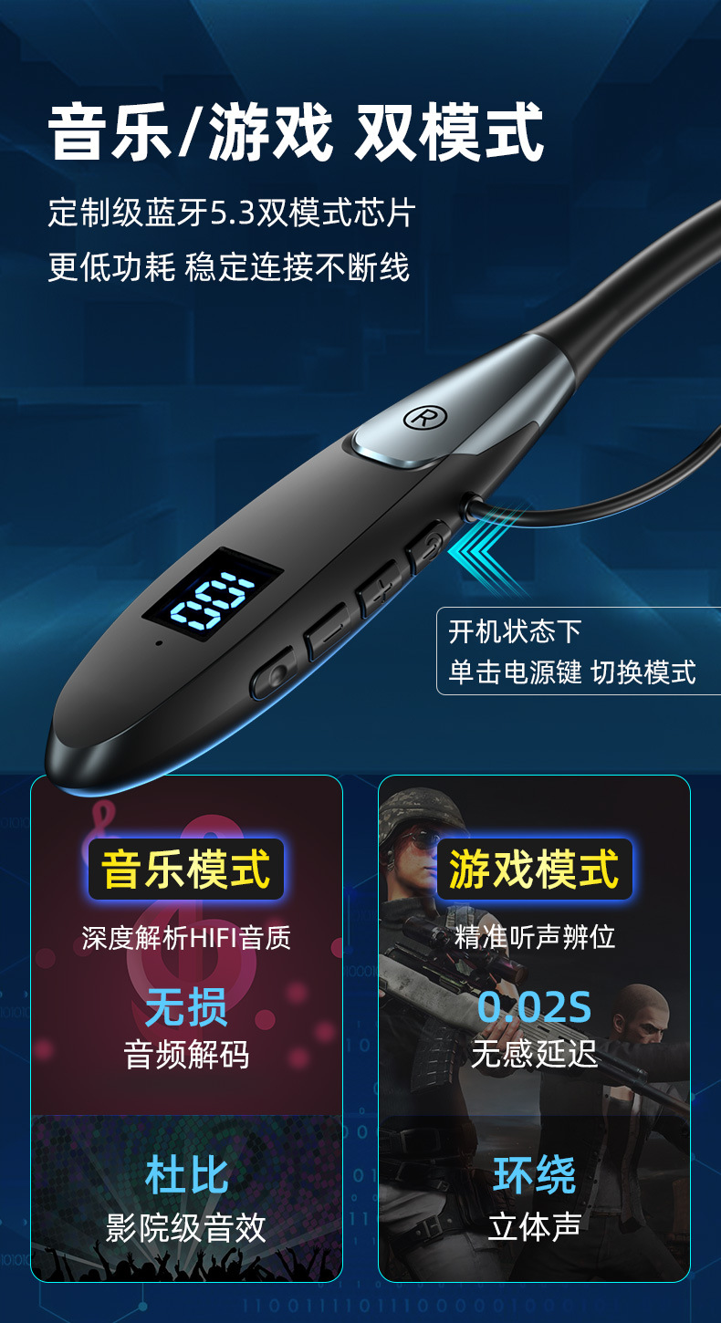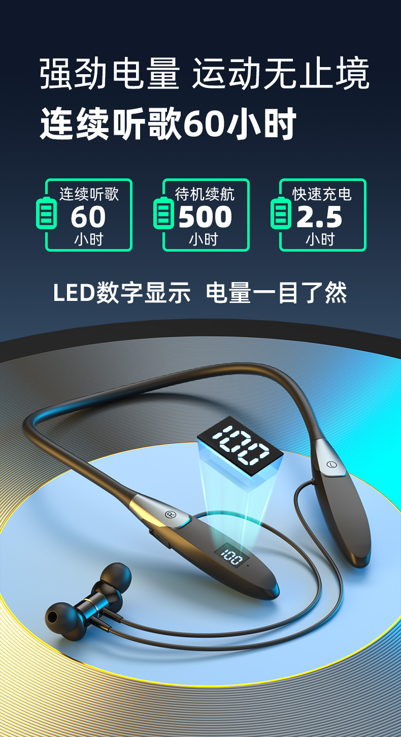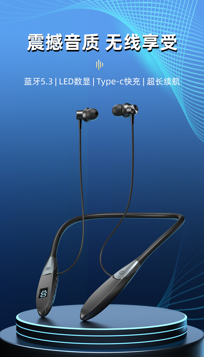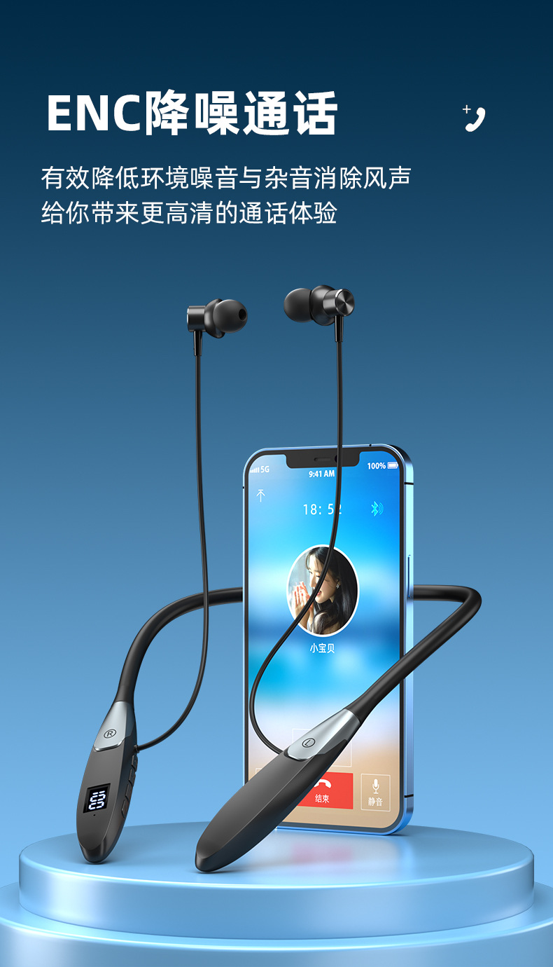크로스 보더 디지털 디스플레이로 새로운 목 걸이 블루투스 헤드셋 대용량 전력 스포츠 게임 목 걸이 블루투스 헤드셋을 카드에 삽입 할 수 있습니다