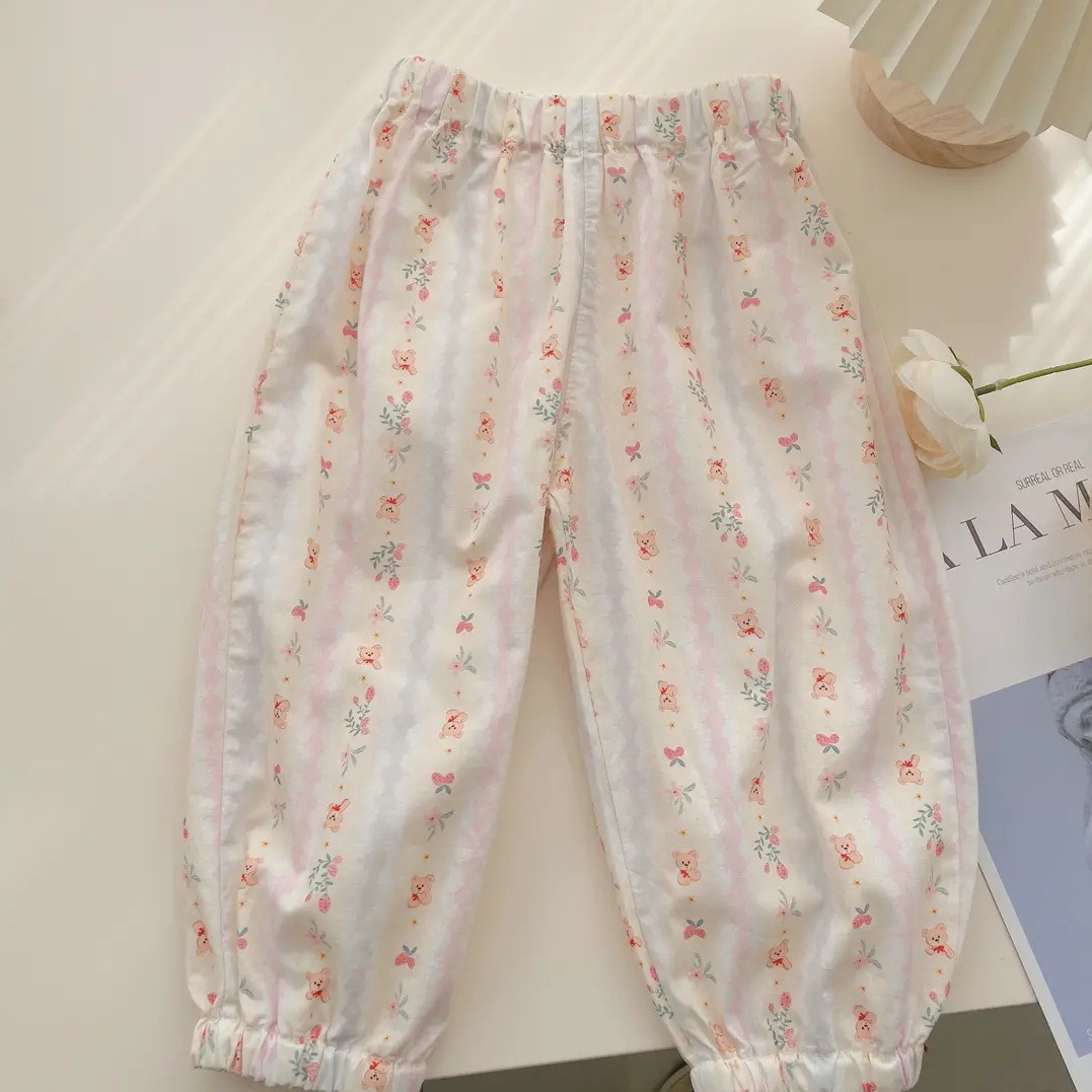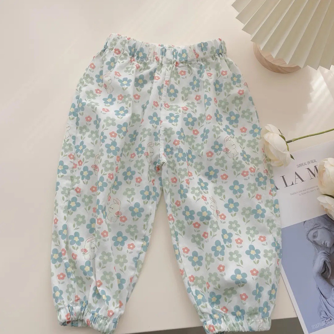 여아 홀리데이 자외선 차단제 바지 어린이 복고풍 꽃 여름 모든 경기 모기 방지 바지 여름 인쇄 미드 하이 웨이스트 비치 바지 유행