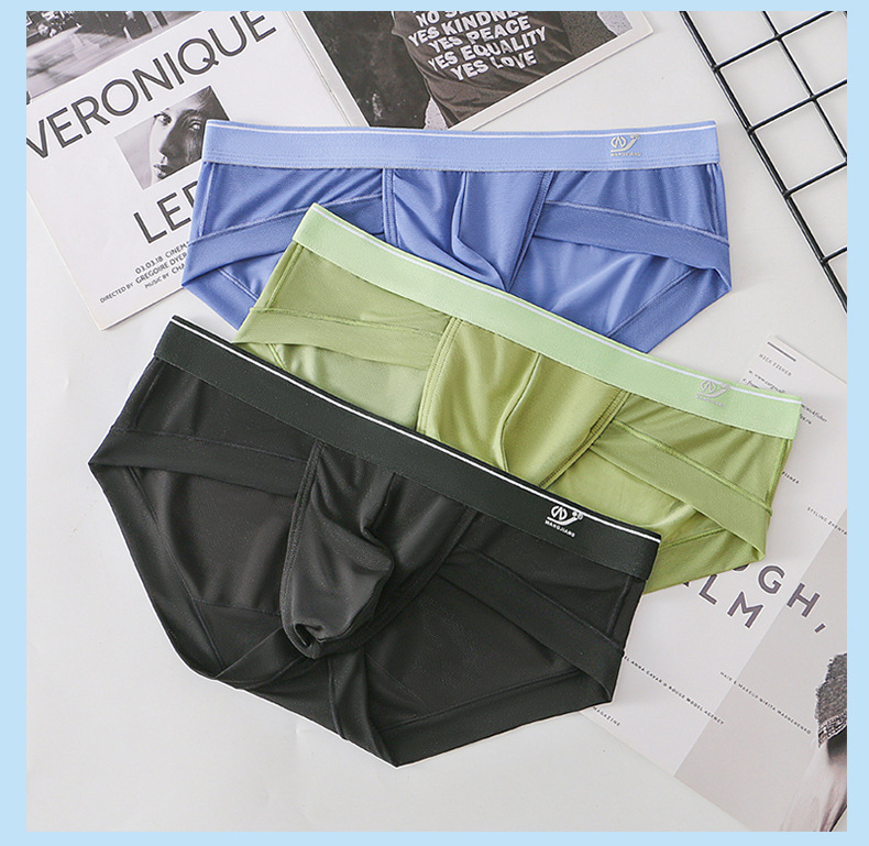 그물 여름 새로운 남성 브리프 아이스 실크 메쉬 통기성 빠른 건조 남성용 속옷 섹시한 브리프 남성스토어 가기