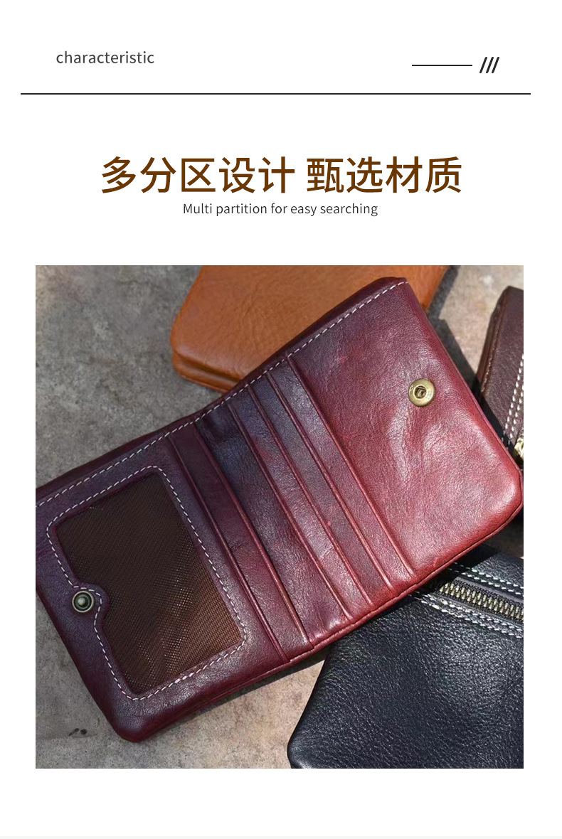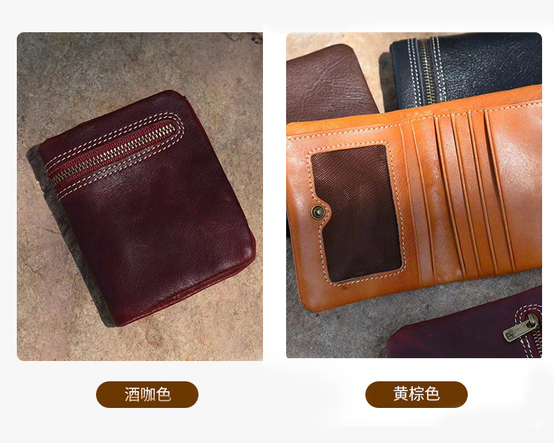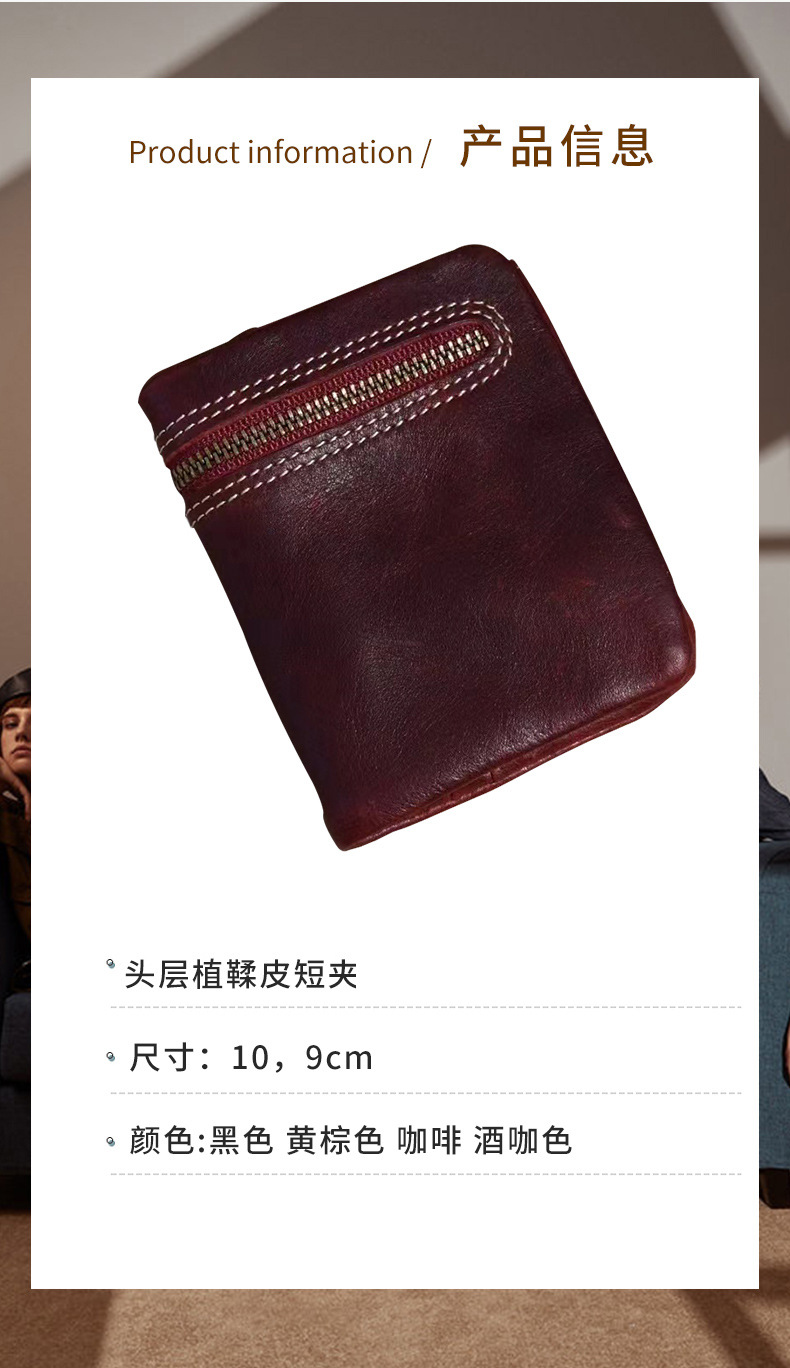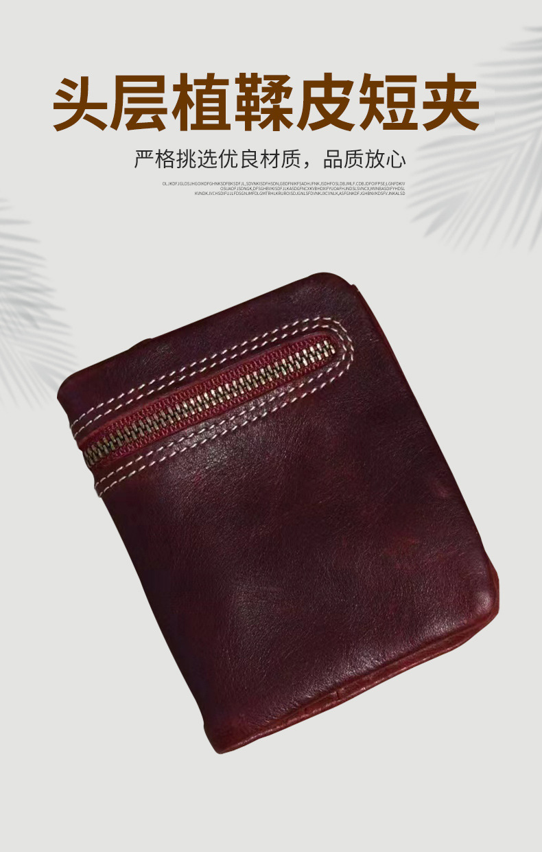 공장 공급 슈퍼 탑 레이어 야채 무두질 가죽 짧은 클립 지갑 남성 지갑 간단한 비즈니스 가죽 짧은 클립 지갑스토어 가기