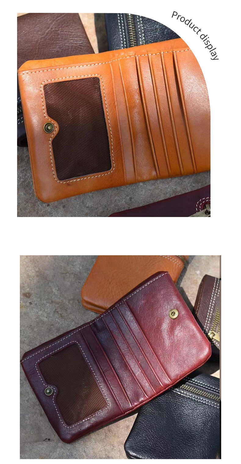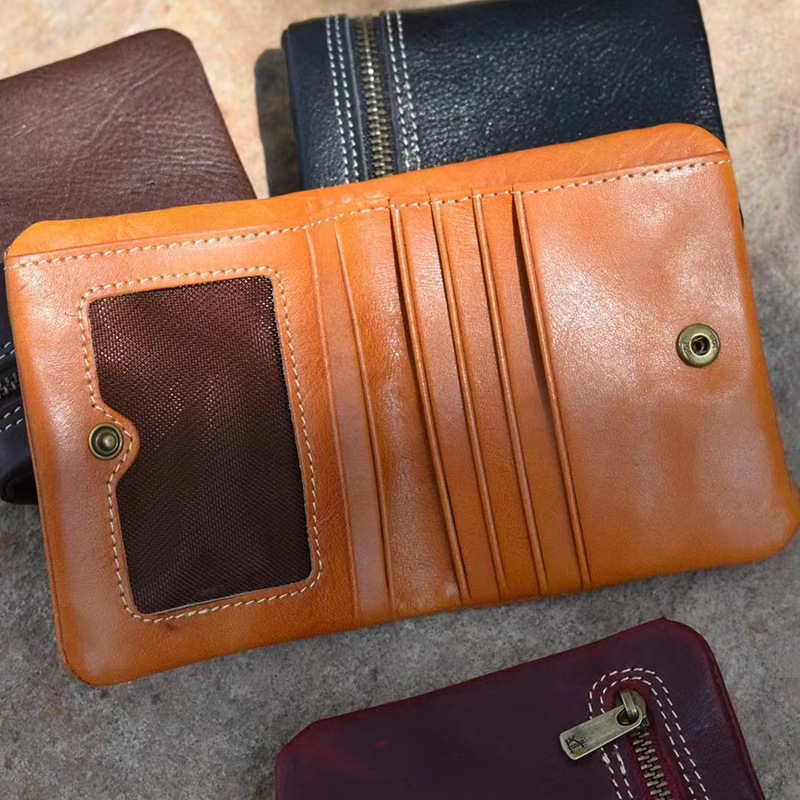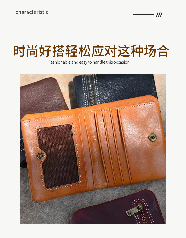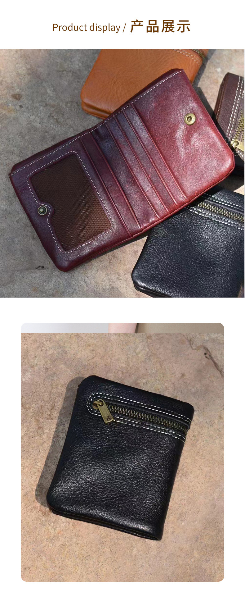 공장 공급 슈퍼 탑 레이어 야채 무두질 가죽 짧은 클립 지갑 남성 지갑 간단한 비즈니스 가죽 짧은 클립 지갑스토어 가기