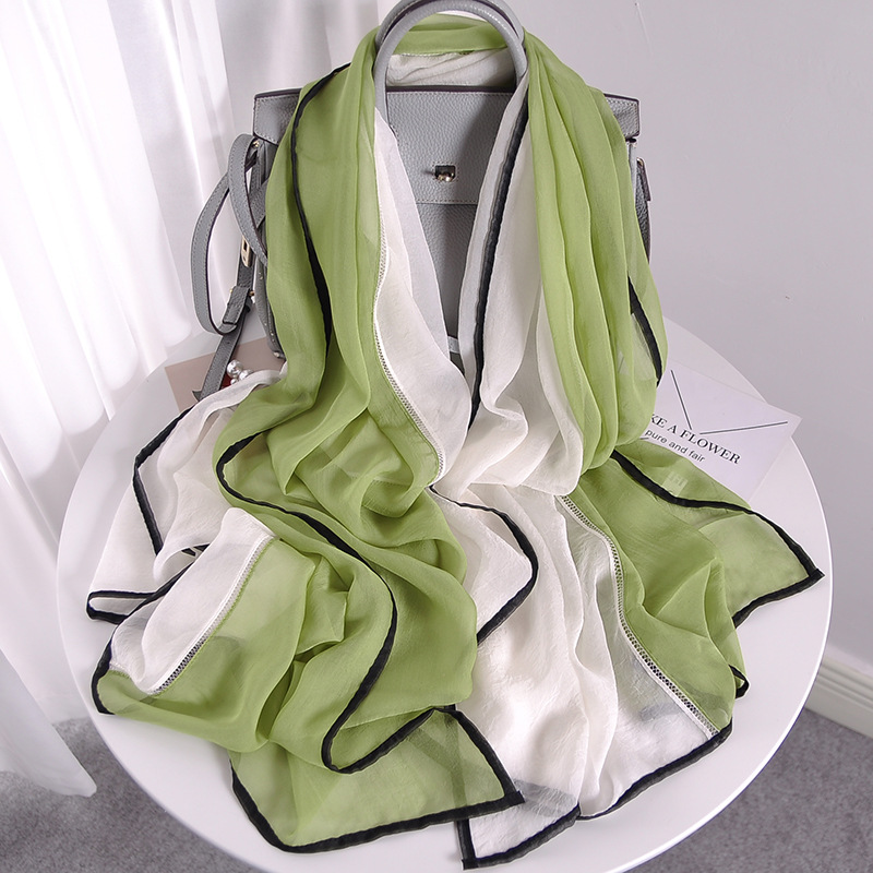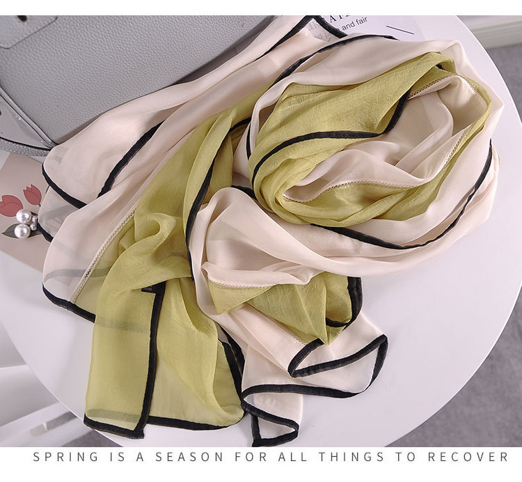 실크 스카프 여자의 봄과 가을 Tencel 컬러 매칭 긴 겉옷 얇은 스카프 조립 유행 외국 스타일 포장 모조 실크스토어 가기
