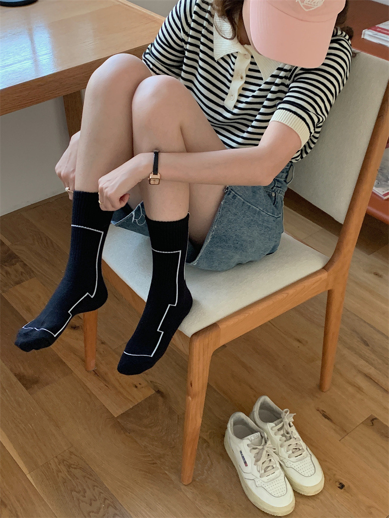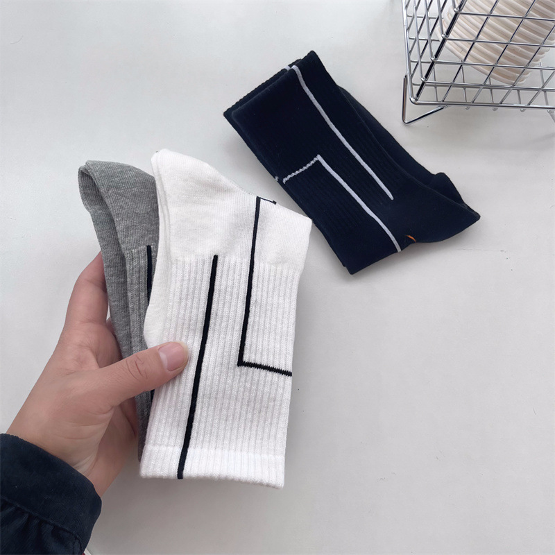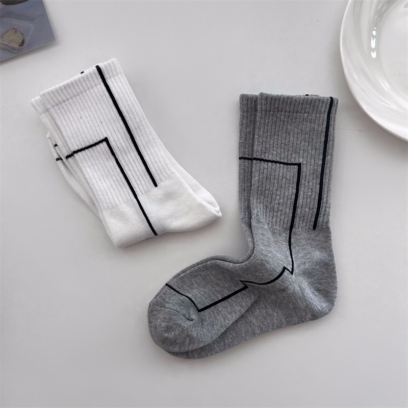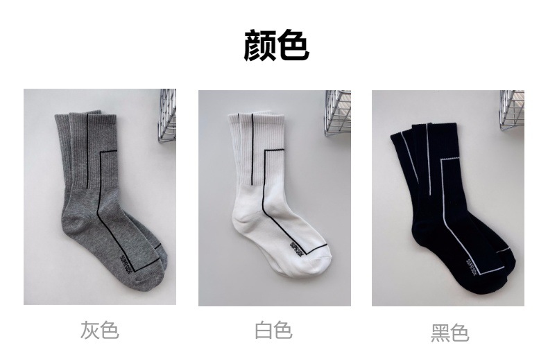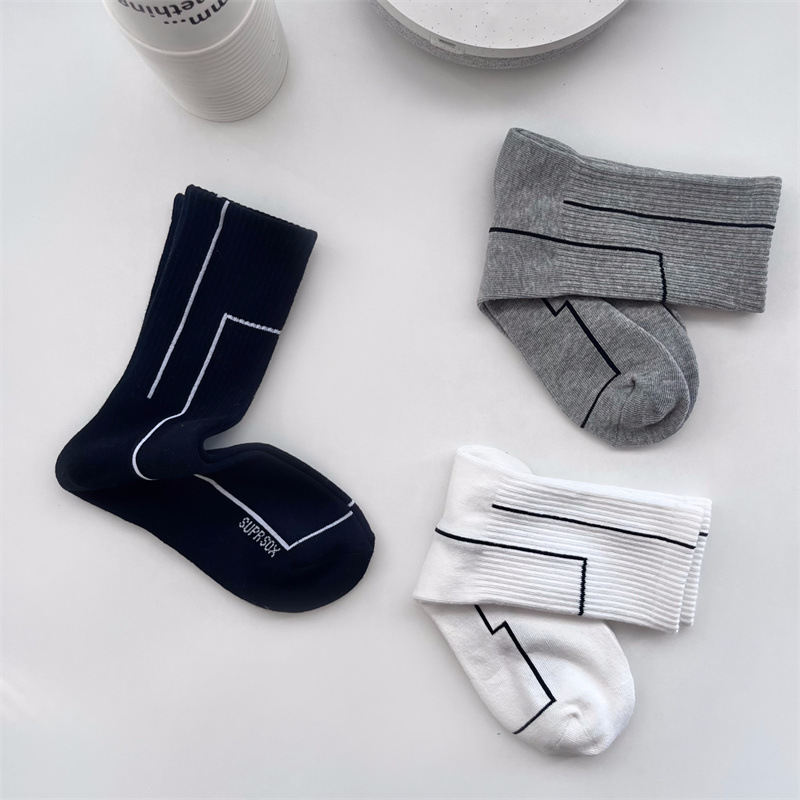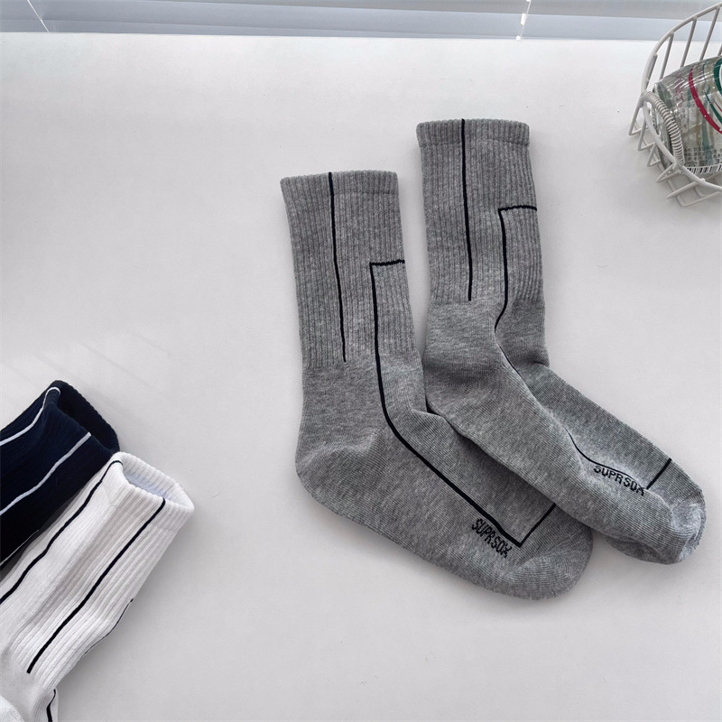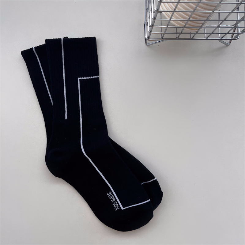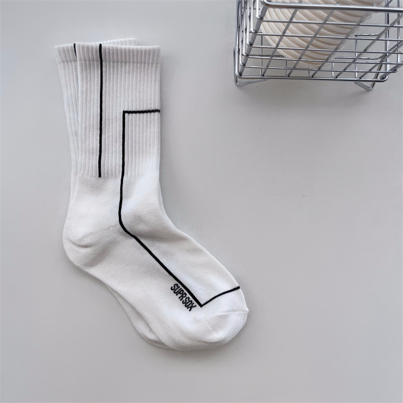 여름 간단한 세로 줄무늬 높은 고무 밴드 질감 중간 튜브 스포츠 남성용 양말 여성용 화이트 라인 기하학적 유행 양말스토어 가기