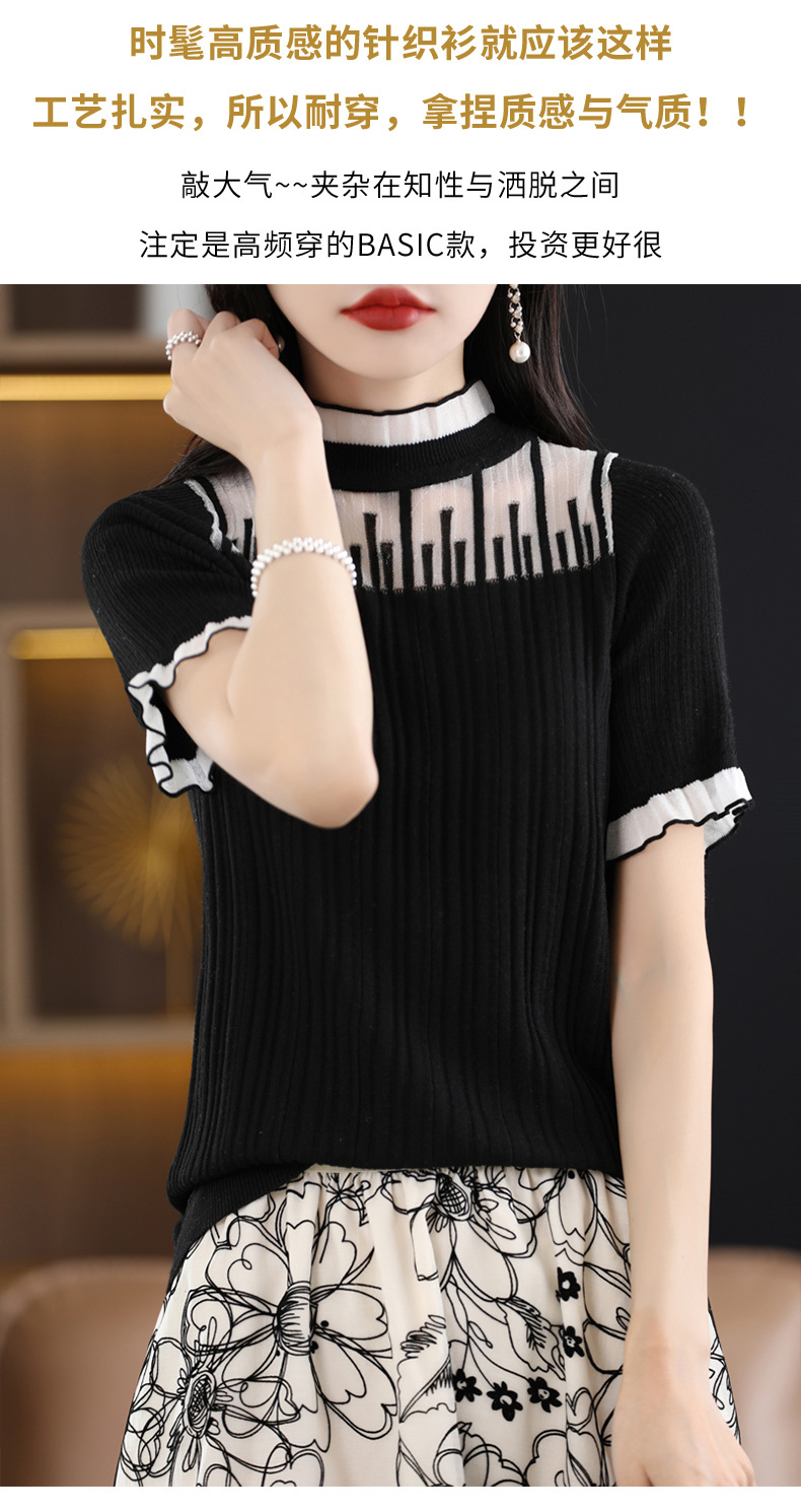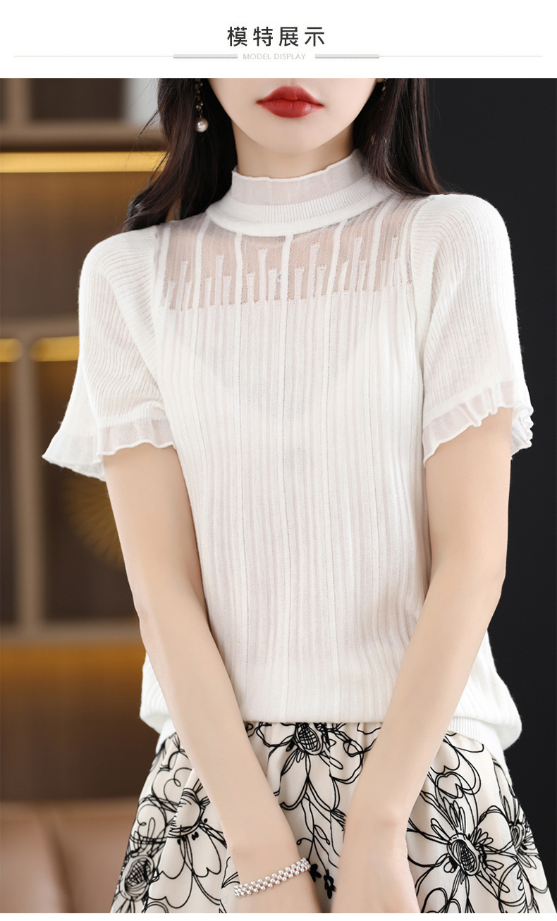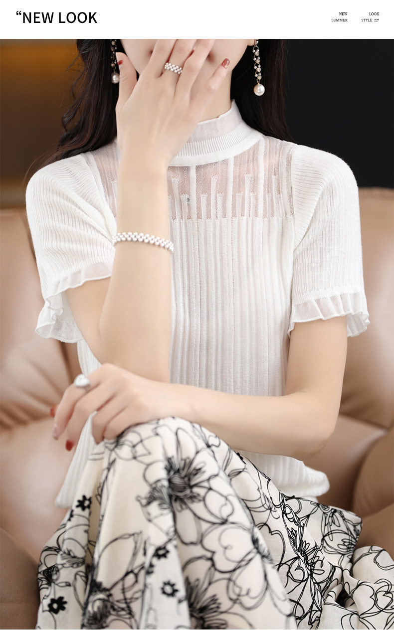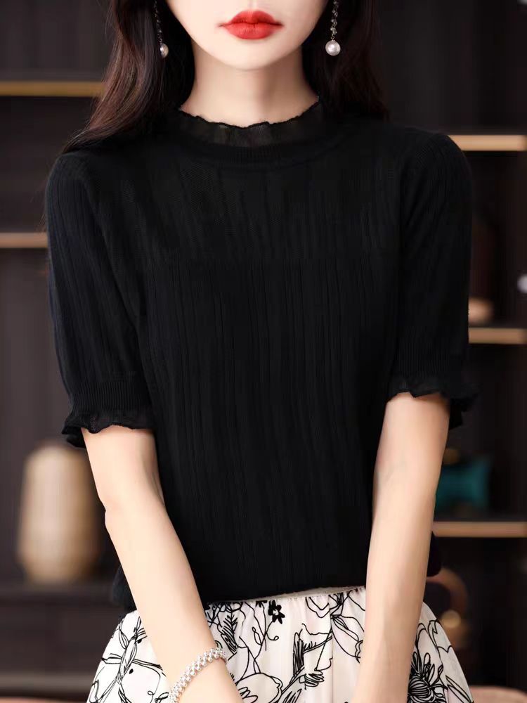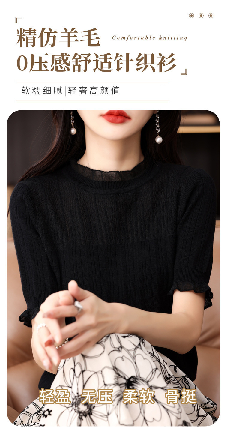 고급 모조 6 울 새로운 레이스 에지 쉬폰 셔츠 여성용 세련된 연령 감소 반팔 내부 에어컨 조끼 티셔츠 베이스 셔츠스토어 가기