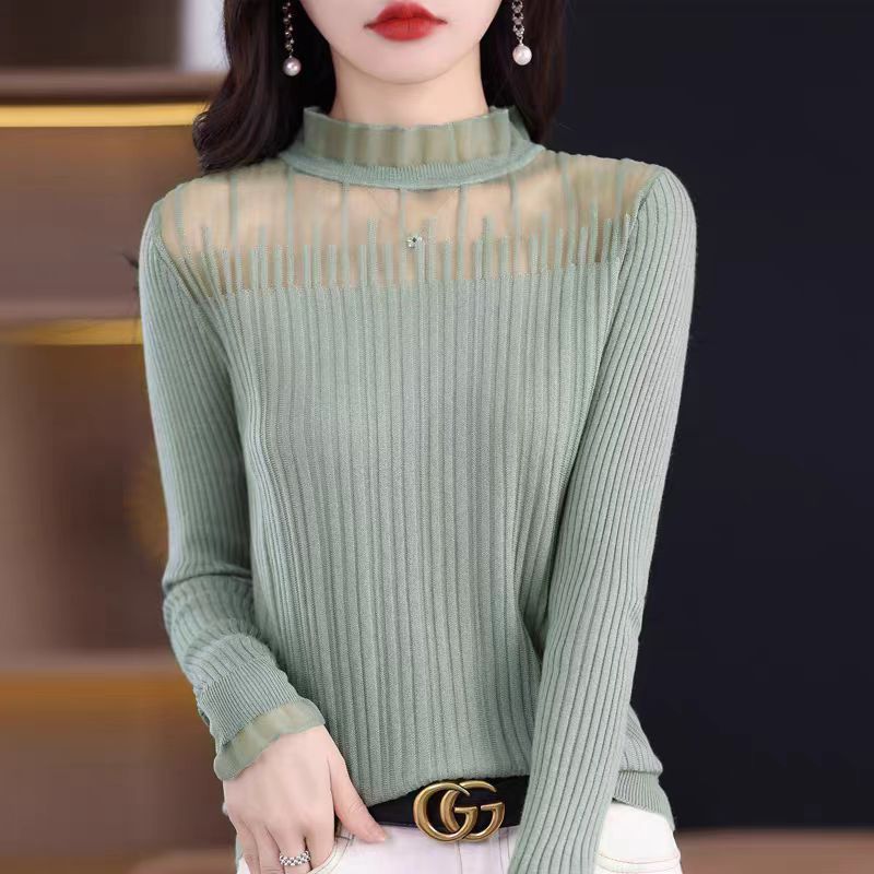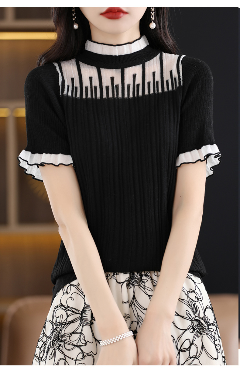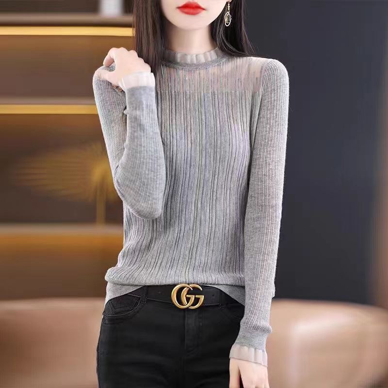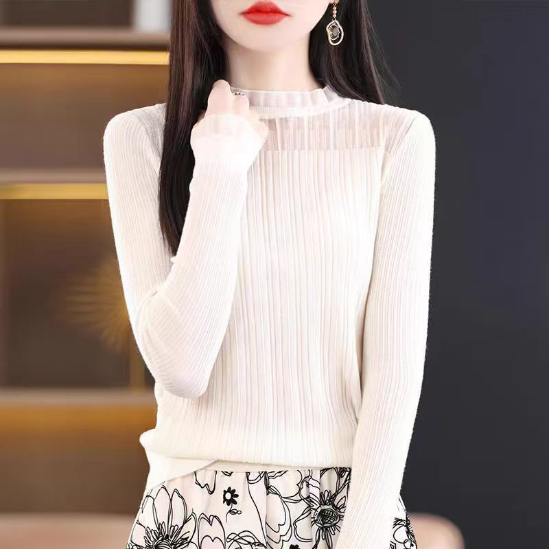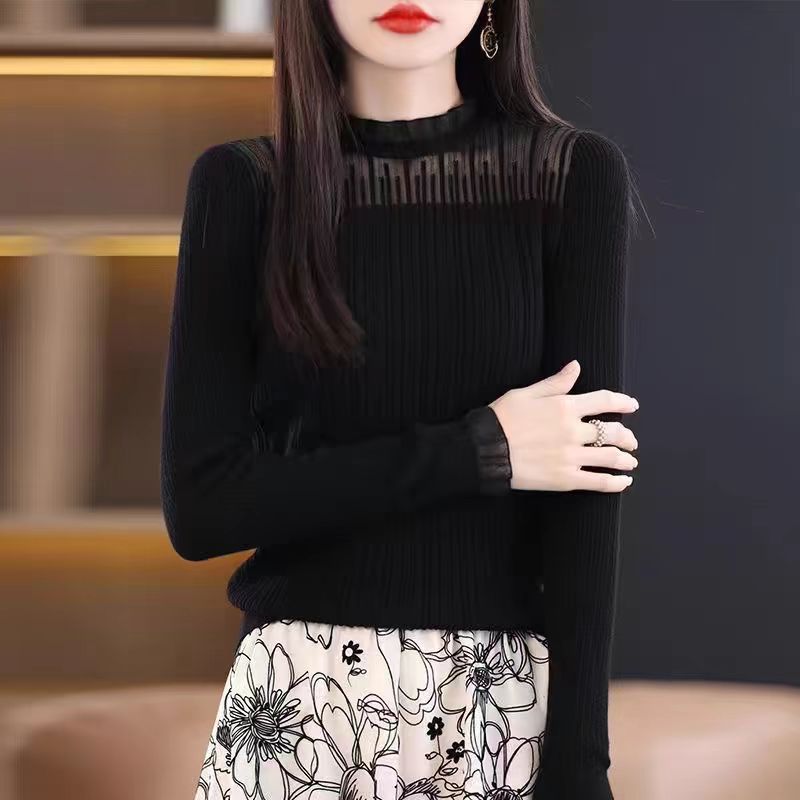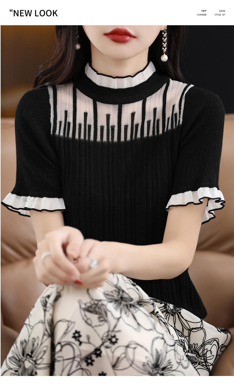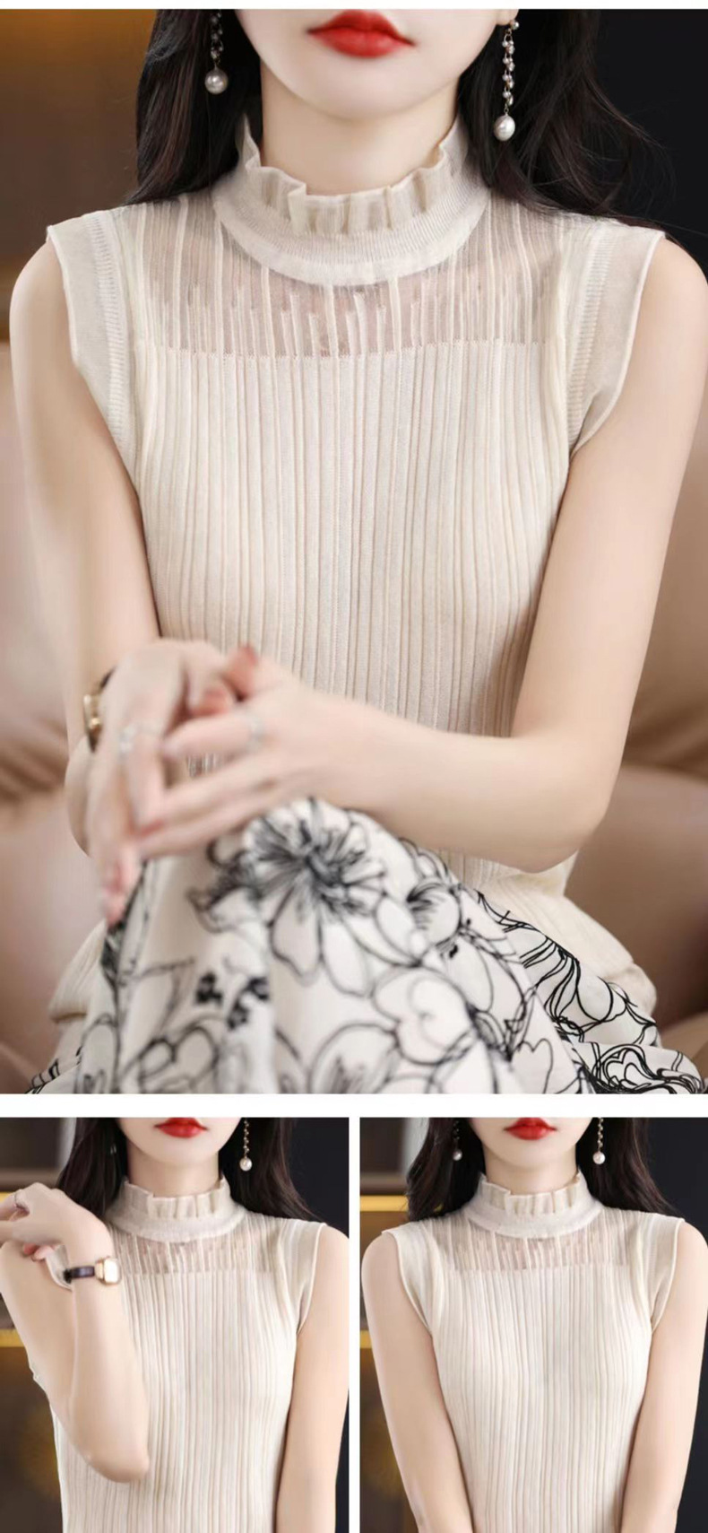 고급 모조 6 울 새로운 레이스 에지 쉬폰 셔츠 여성용 세련된 연령 감소 반팔 내부 에어컨 조끼 티셔츠 베이스 셔츠스토어 가기