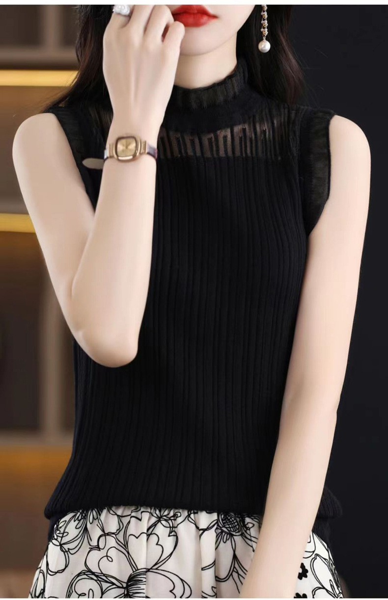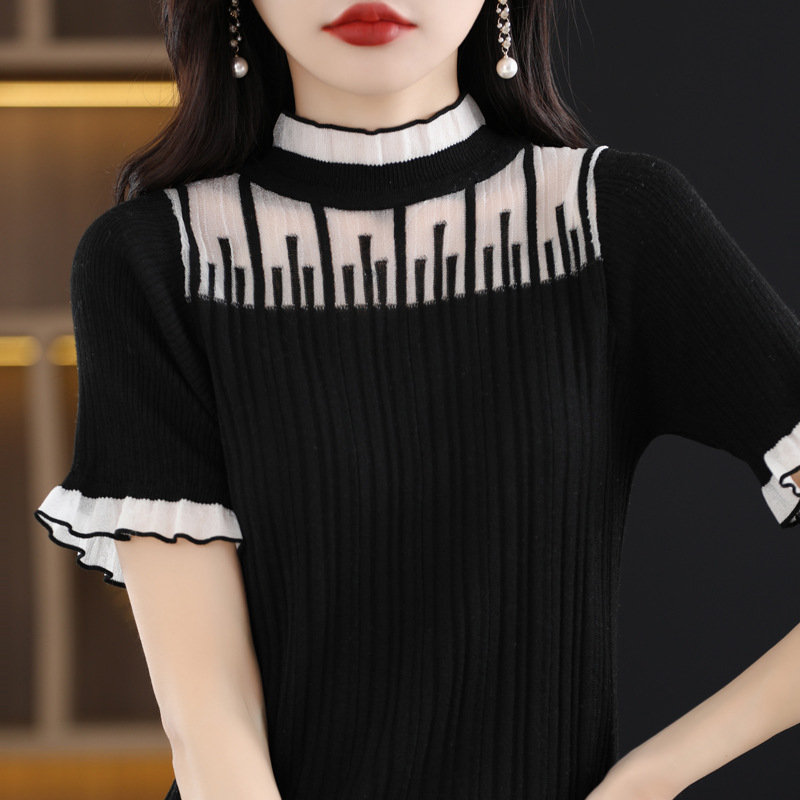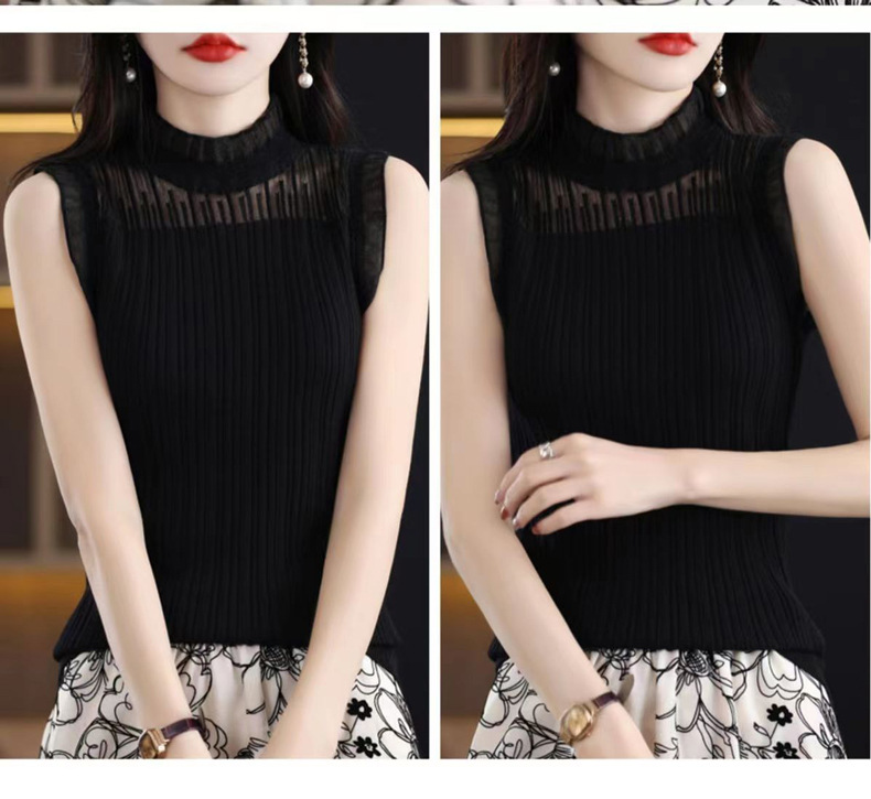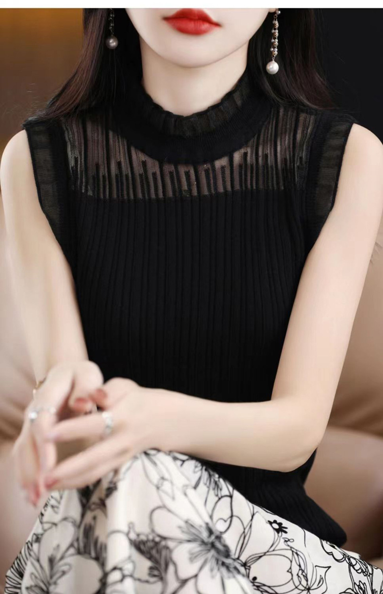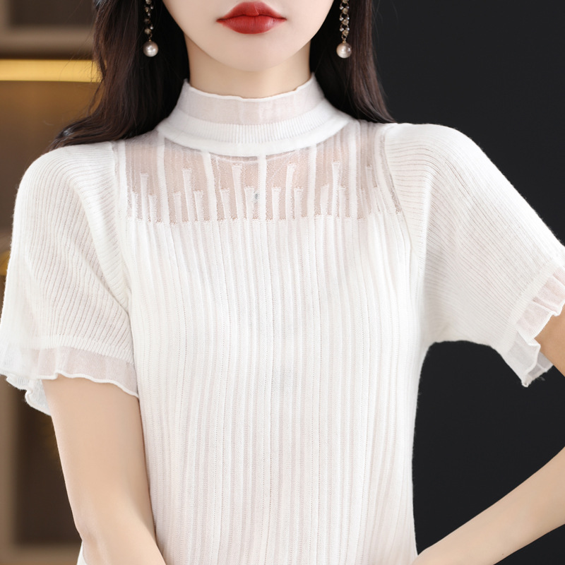 고급 모조 6 울 새로운 레이스 에지 쉬폰 셔츠 여성용 세련된 연령 감소 반팔 내부 에어컨 조끼 티셔츠 베이스 셔츠