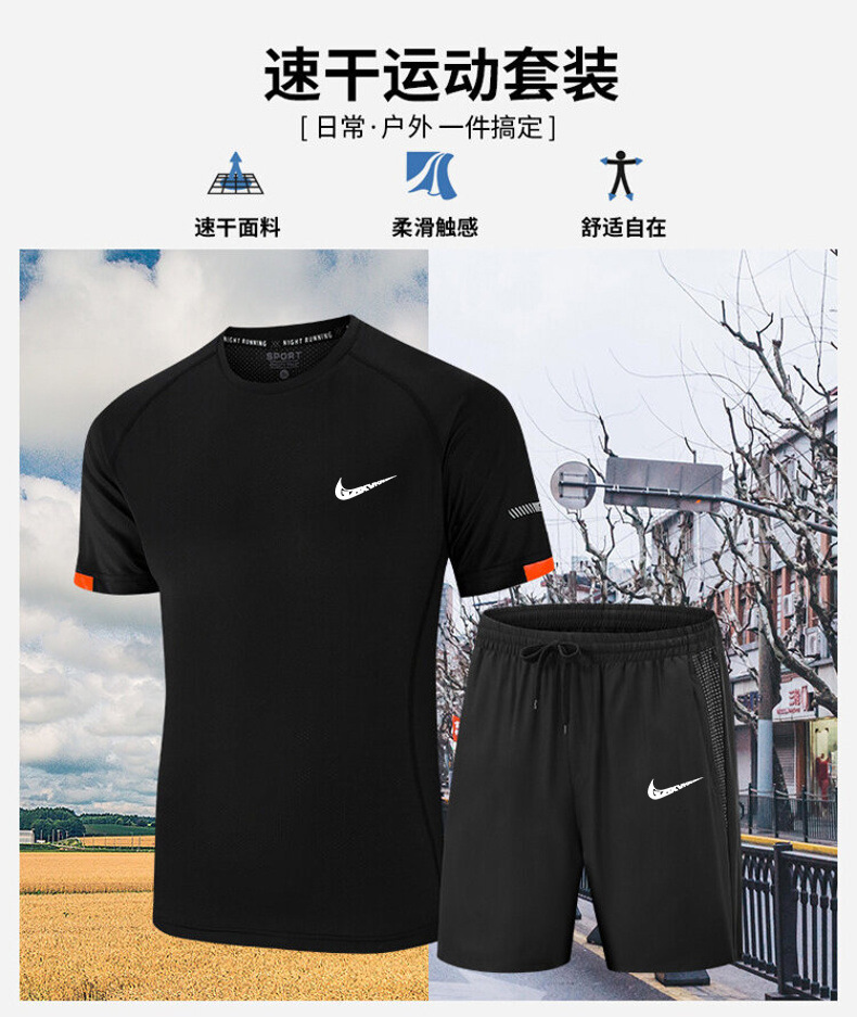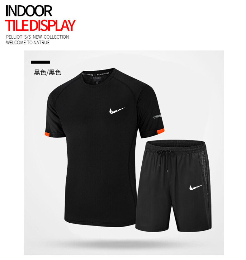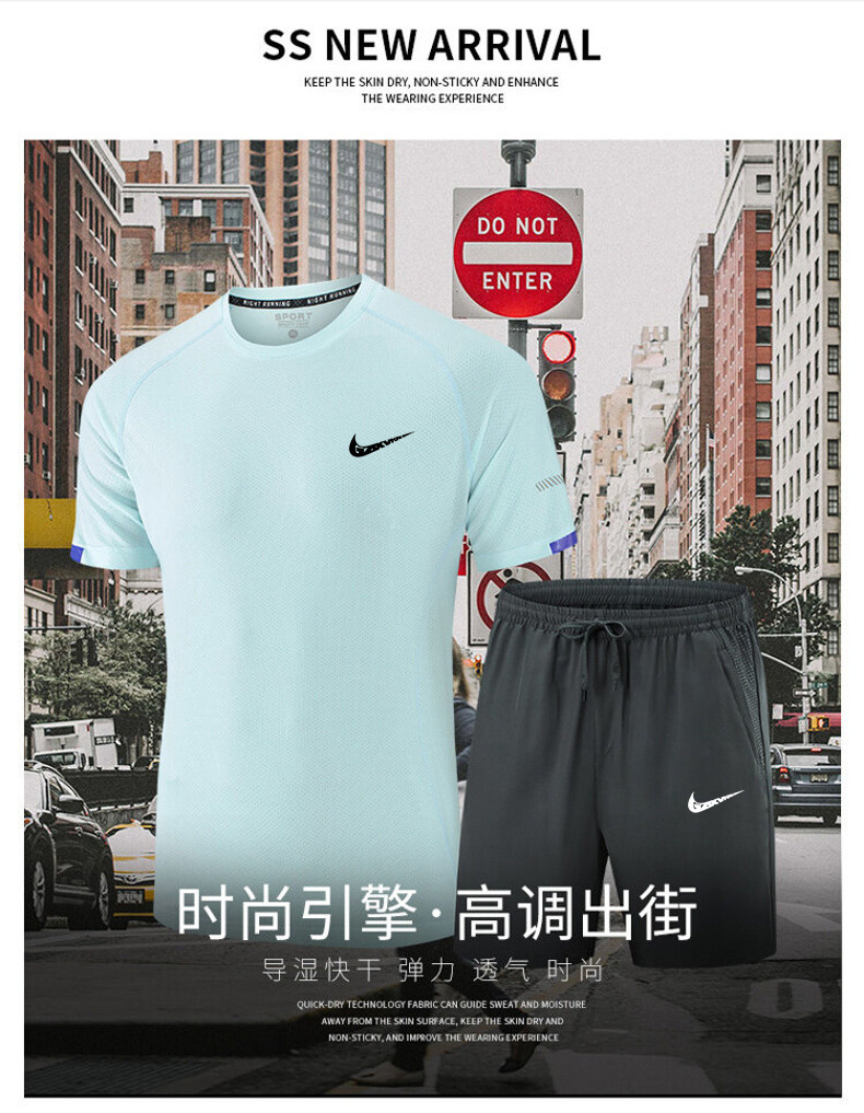 남성복 2025 남성 스포츠 캐주얼 세트 통기성 속건 반팔 티셔츠 반바지 러닝 트레이닝 피트니스복 투피스 세트스토어 가기