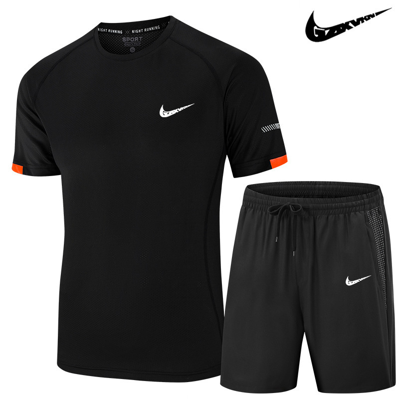 남성복 2025 남성 스포츠 캐주얼 세트 통기성 속건 반팔 티셔츠 반바지 러닝 트레이닝 피트니스복 투피스 세트