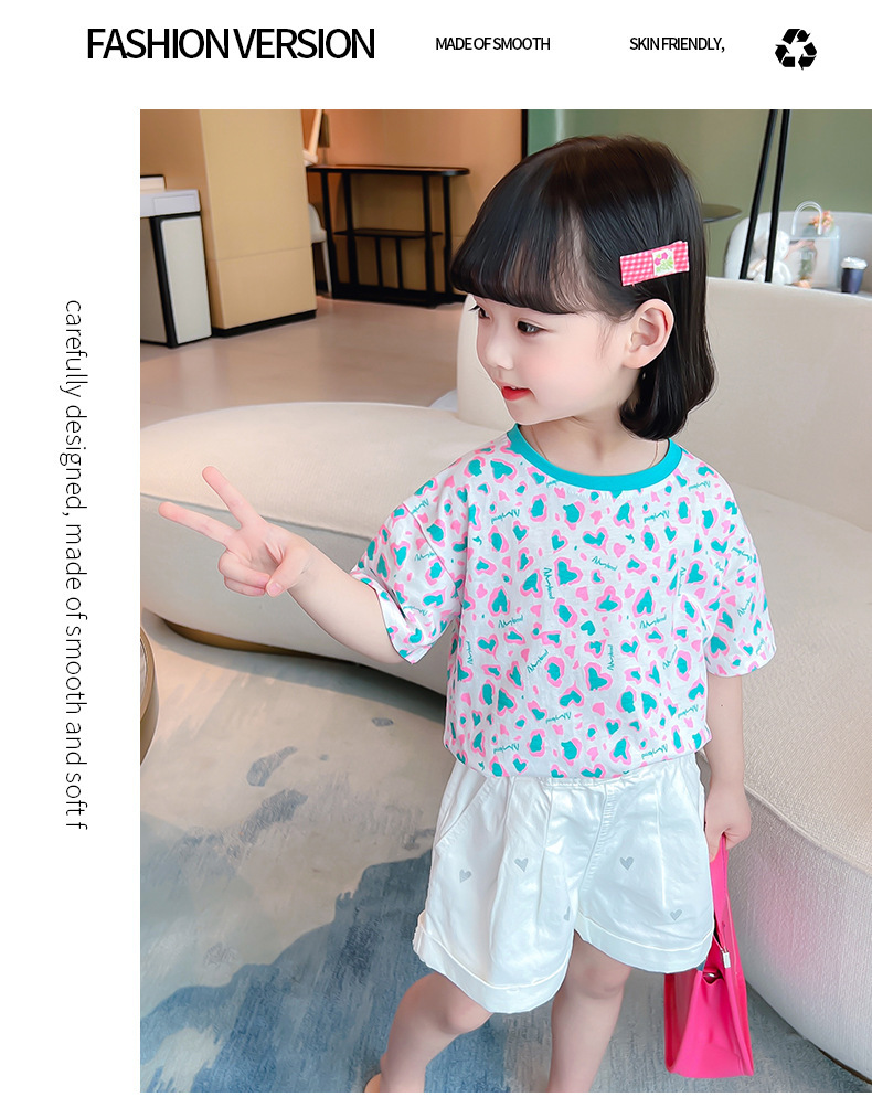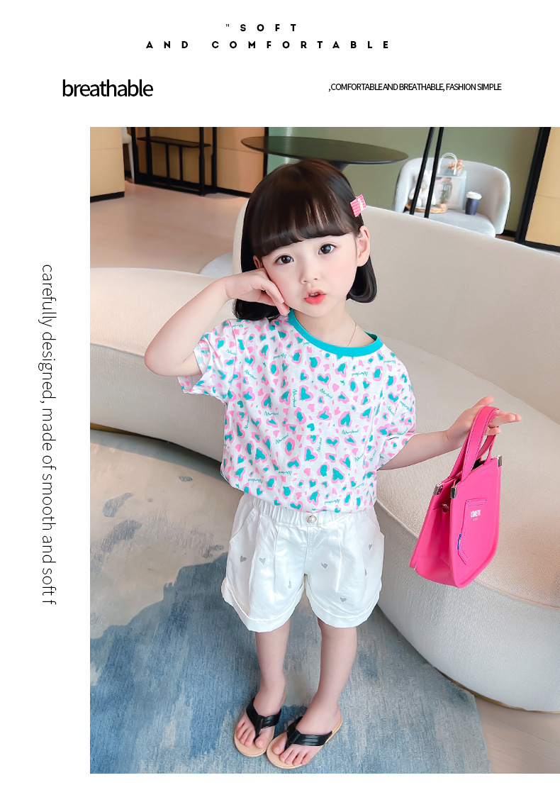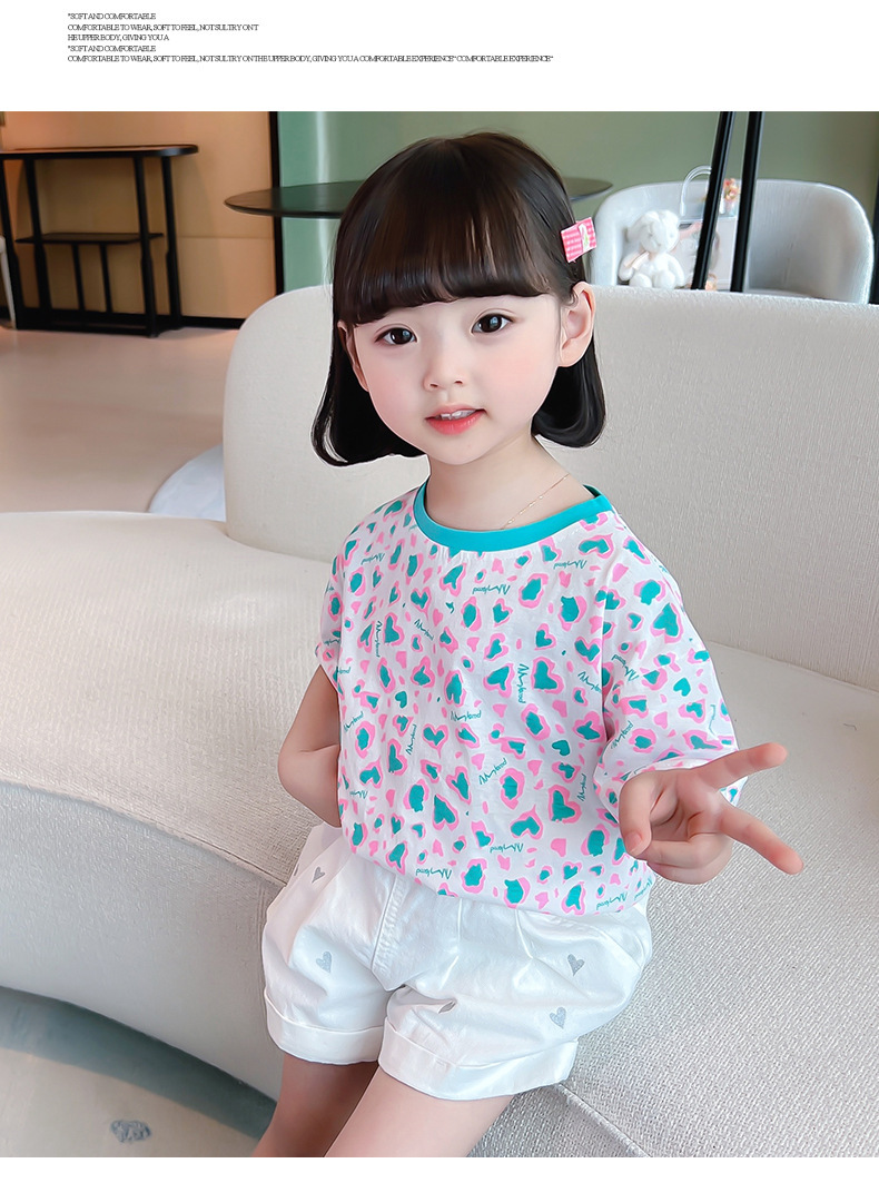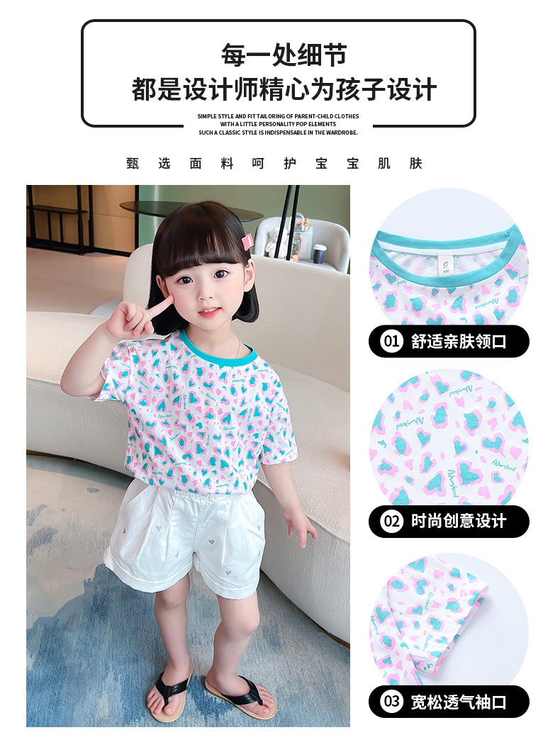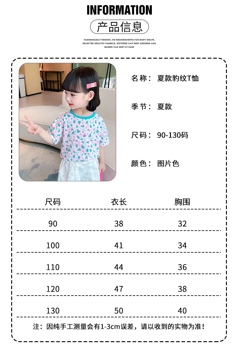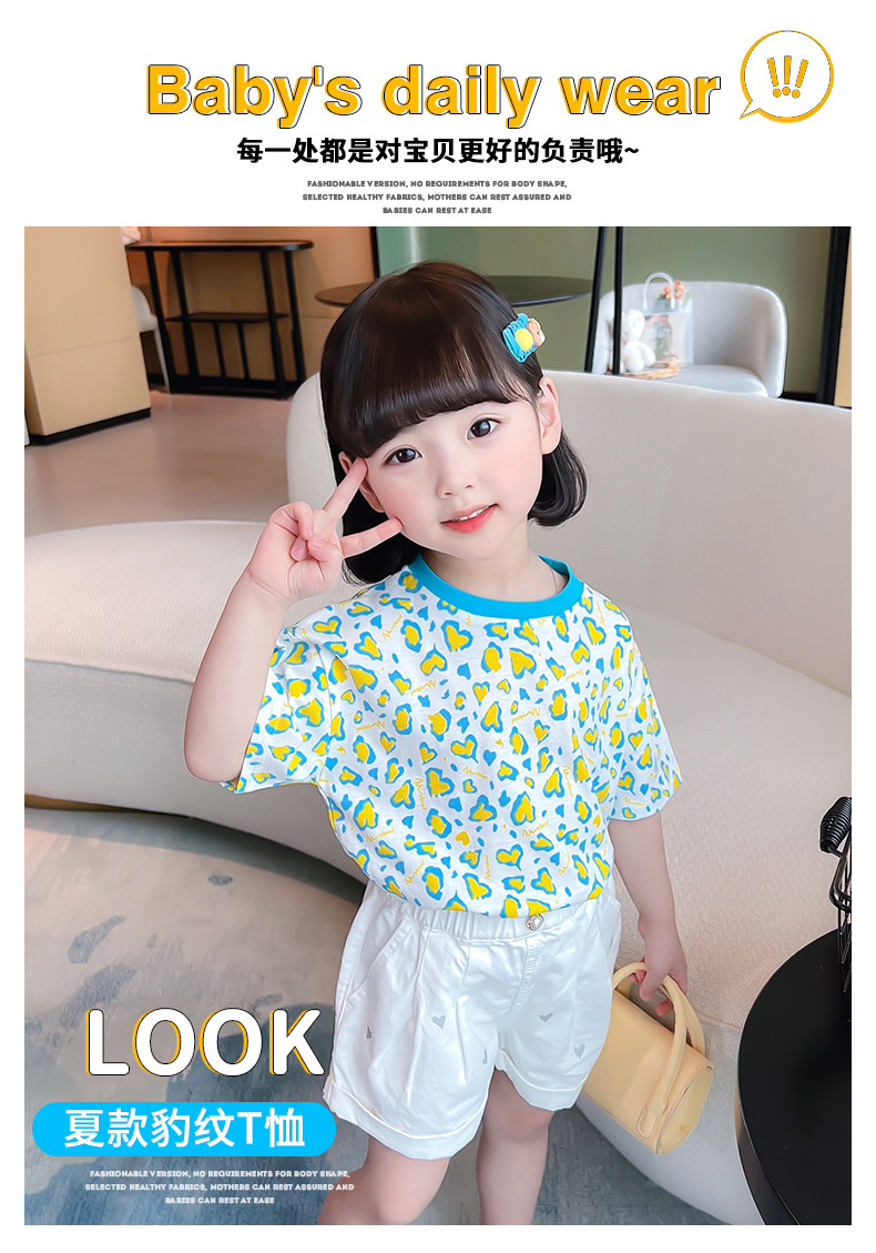 2025 어린이 아기 소녀 여름 새로운 패션 스타일 다목적 편안한 표범 인쇄 중소 소녀 티셔츠 탑 유행스토어 가기