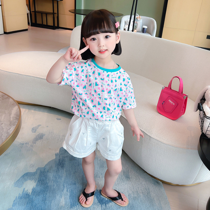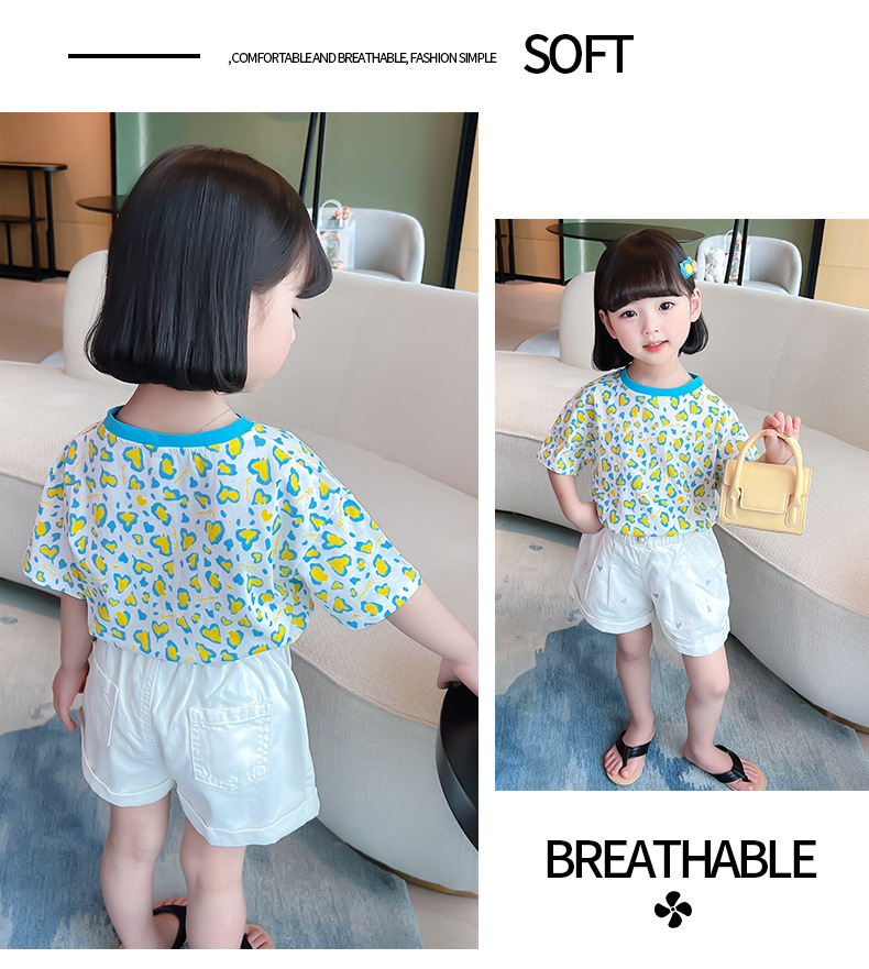 2025 어린이 아기 소녀 여름 새로운 패션 스타일 다목적 편안한 표범 인쇄 중소 소녀 티셔츠 탑 유행