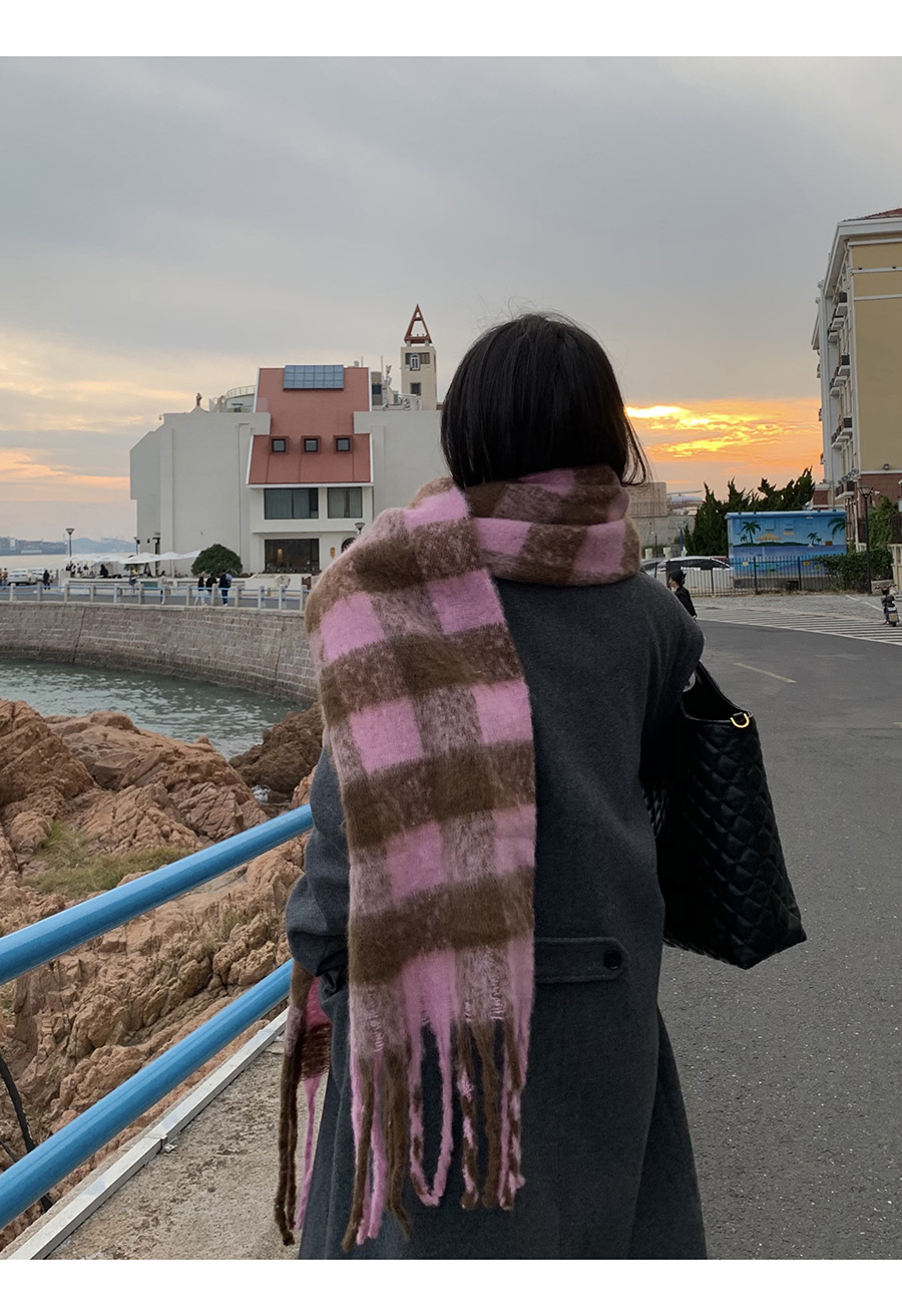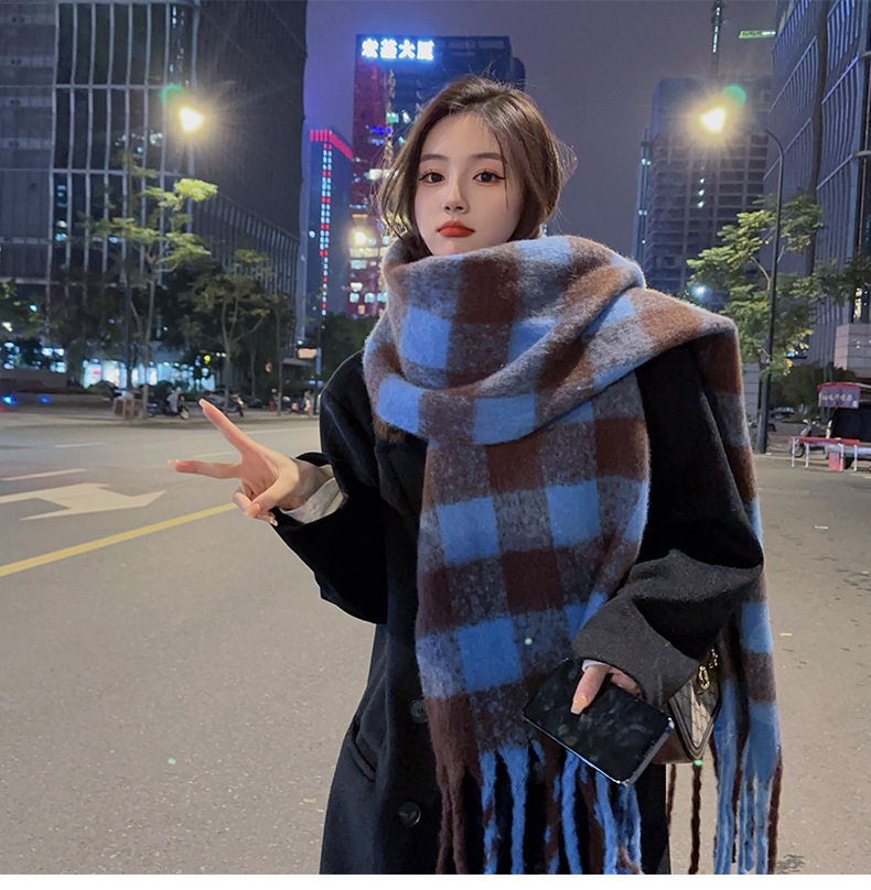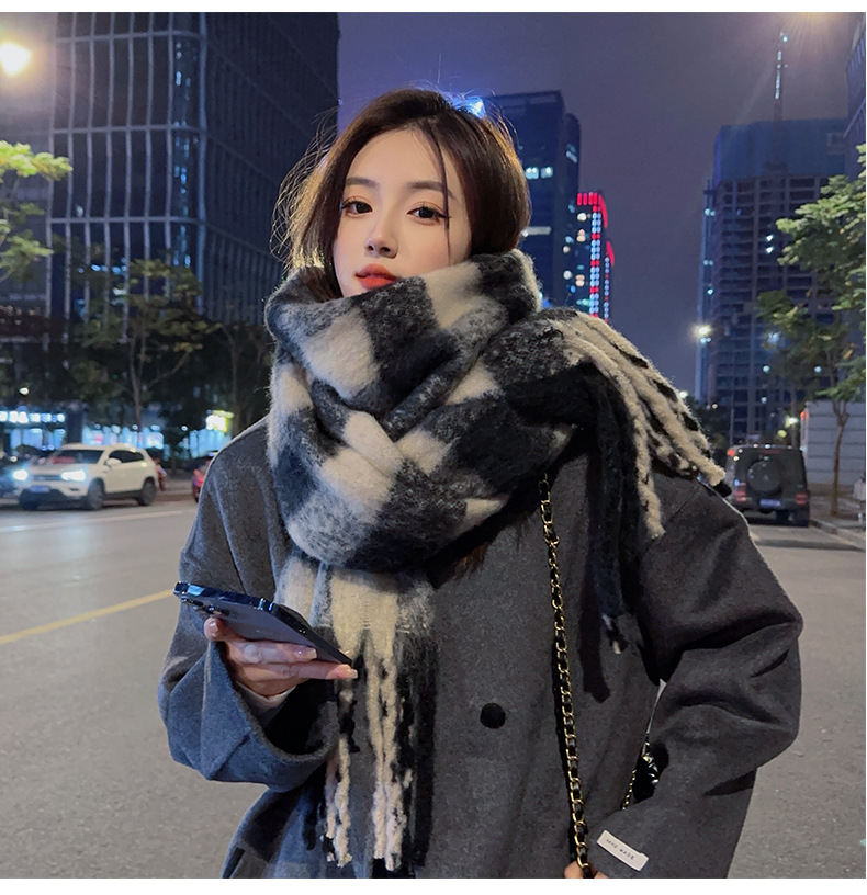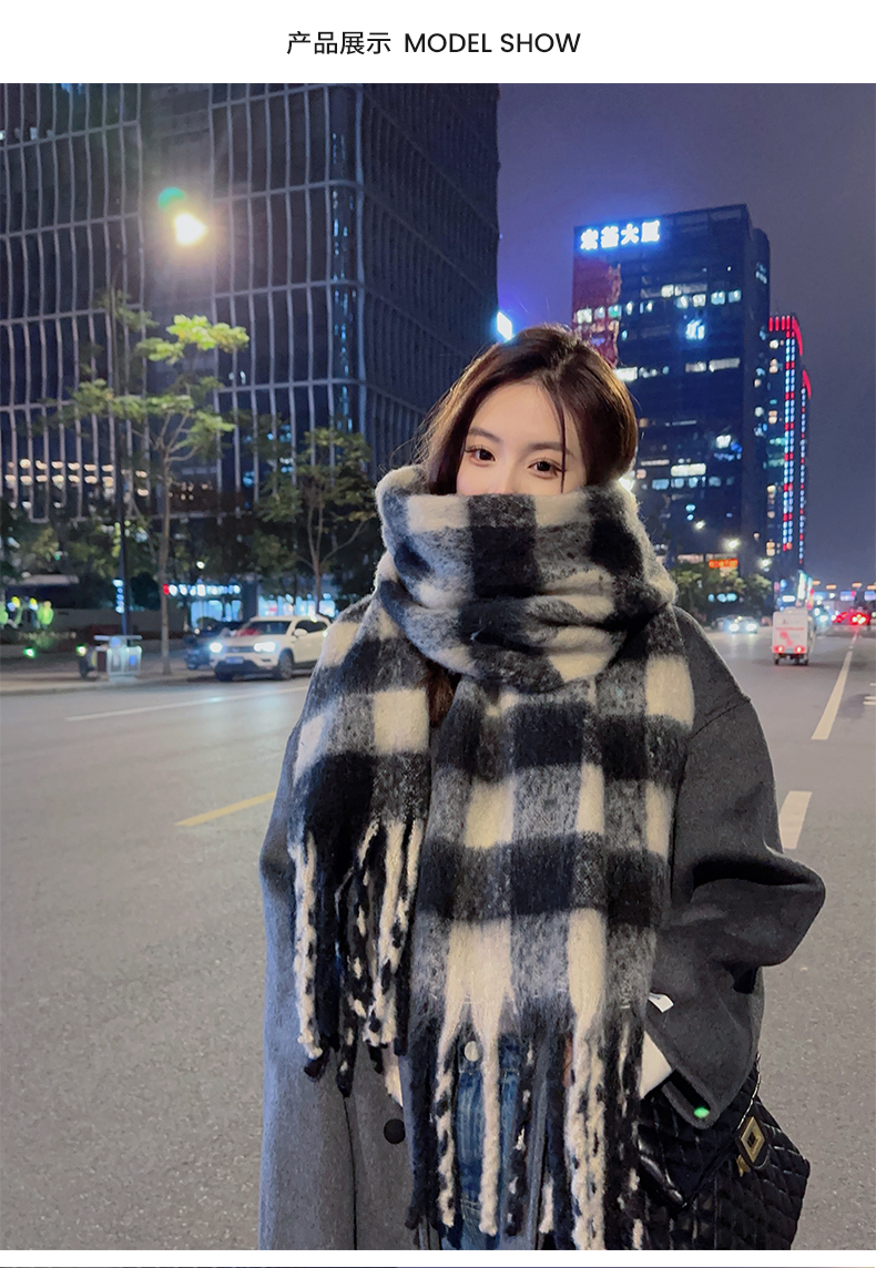 Yu Shuxin ZA 스카프 겨울 여성용 격자 무늬 스카프 모헤어 숄 컬러 체크 스카프스토어 가기