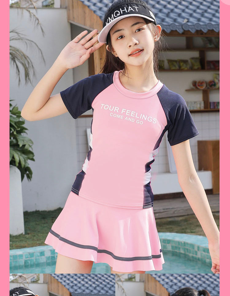 여아 수영복 스포츠 스티칭 분할 반소매 태양 보호 중형 및 대형 어린이 수영복 가슴 패드 어린이 속건 학생 수영복스토어 가기