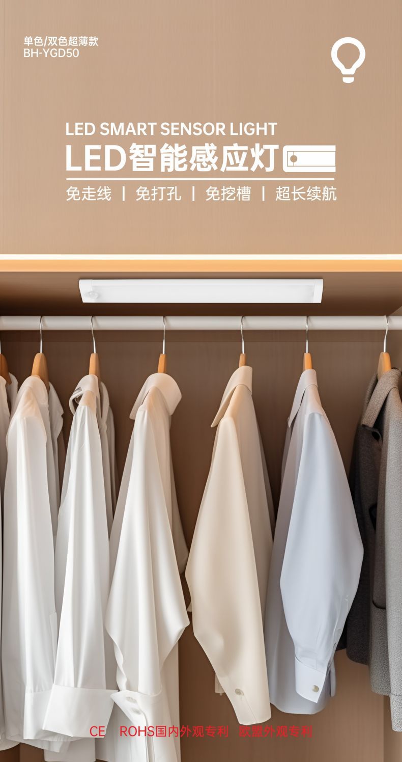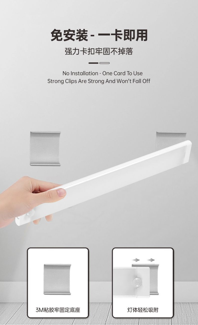 灯条安装固定的配件默认带自粘塑料卡扣,可随意取放。