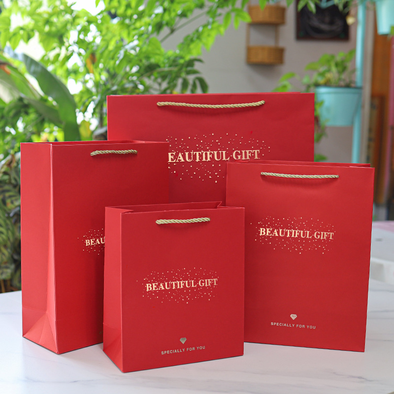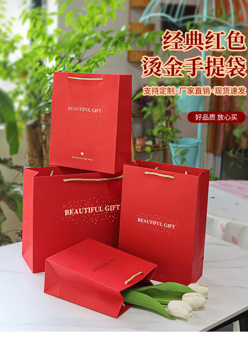 재고 빨간 축제 선물 가방 큰 결혼 선물 가방 두꺼운 간단한 의류 쇼핑백 도매스토어 가기