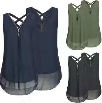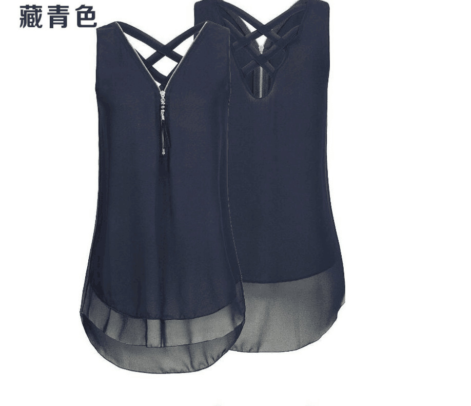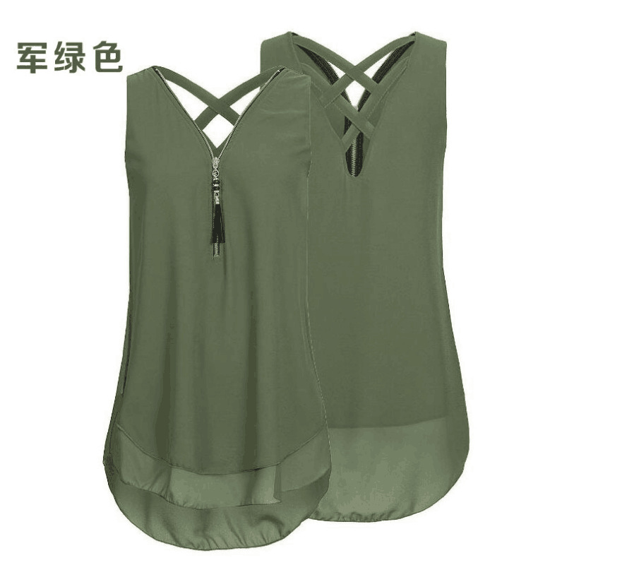 2023 아마존, 새로운 민소매 앞 지퍼 크로스 조끼 쉬폰 셔츠 재고
