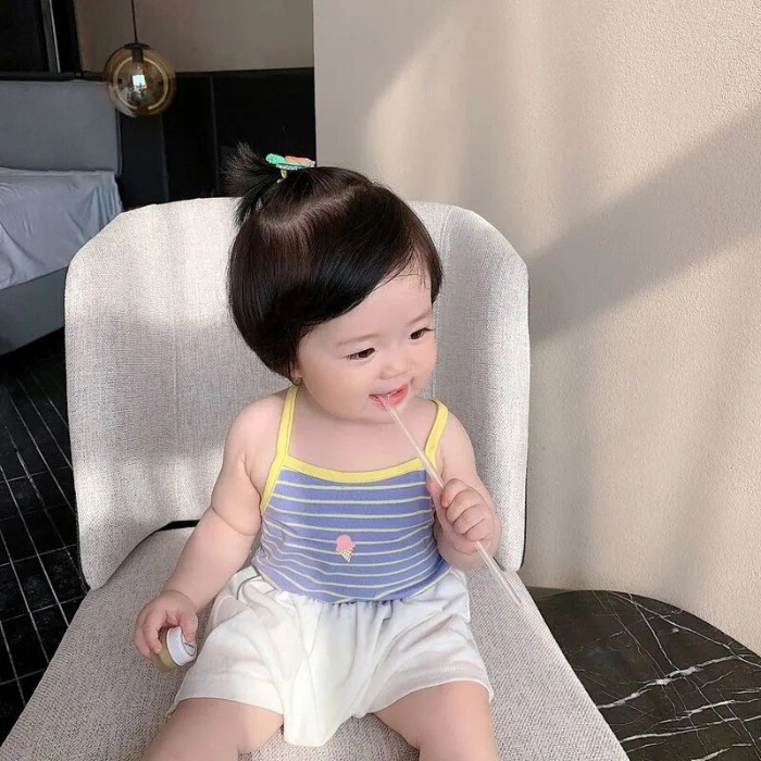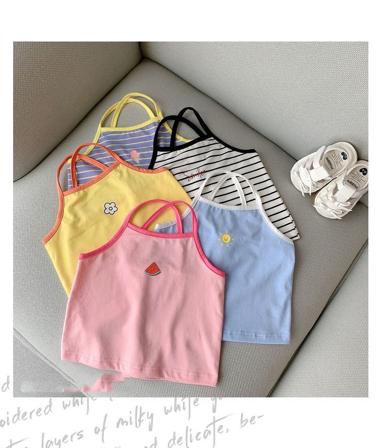 2025 소녀 여름 새 스타일 조끼 어린이 아기 서스펜더 여름 어린이 스타일 민소매 탑 아동 의류스토어 가기