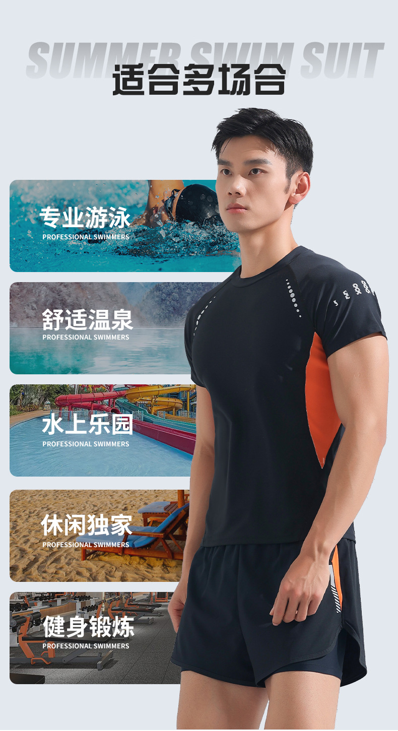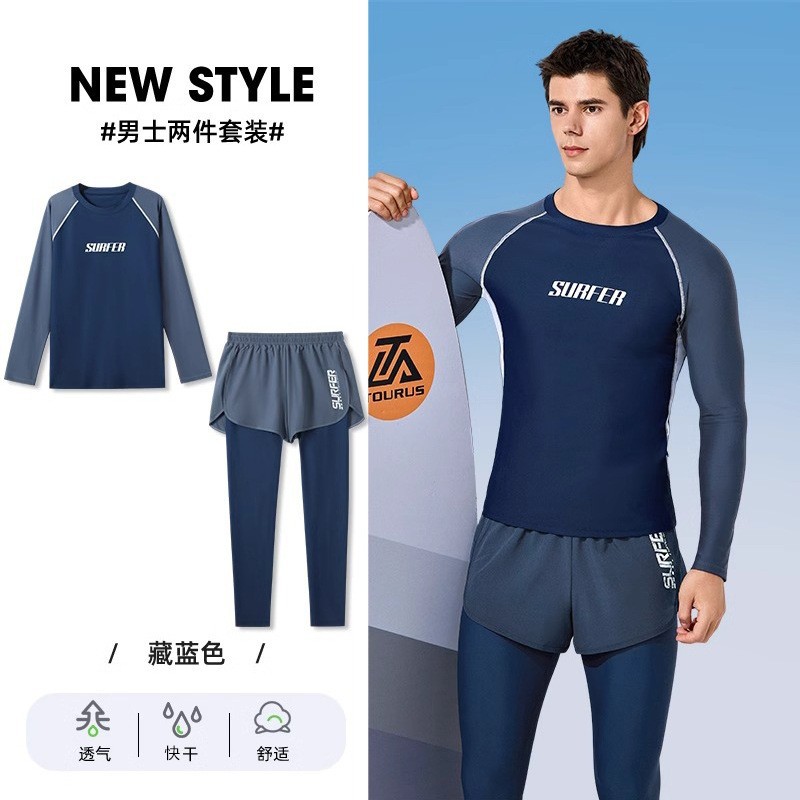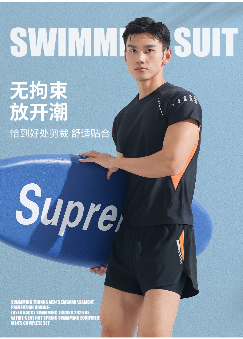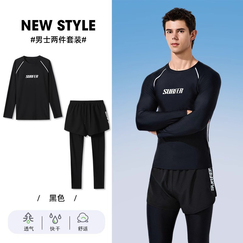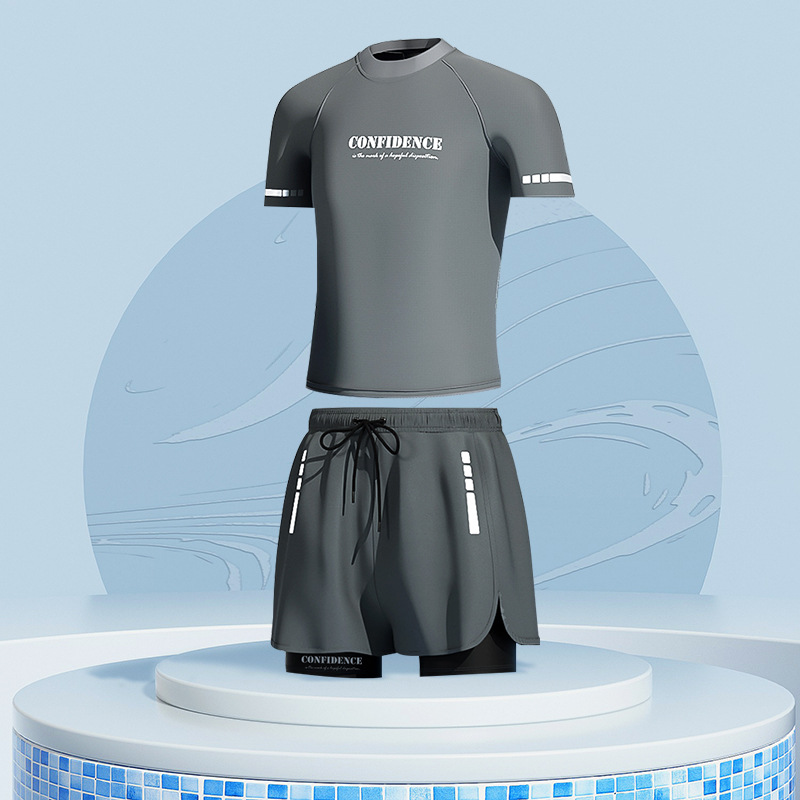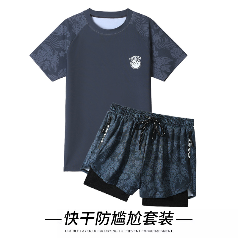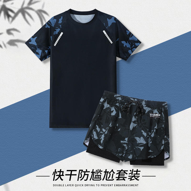 수영복 남자의 더블 레이어 안티 당황 플러스 사이즈 느슨한 전문 수영 트렁크 자외선 차단제 온천 전신 남성용 수영복 세트