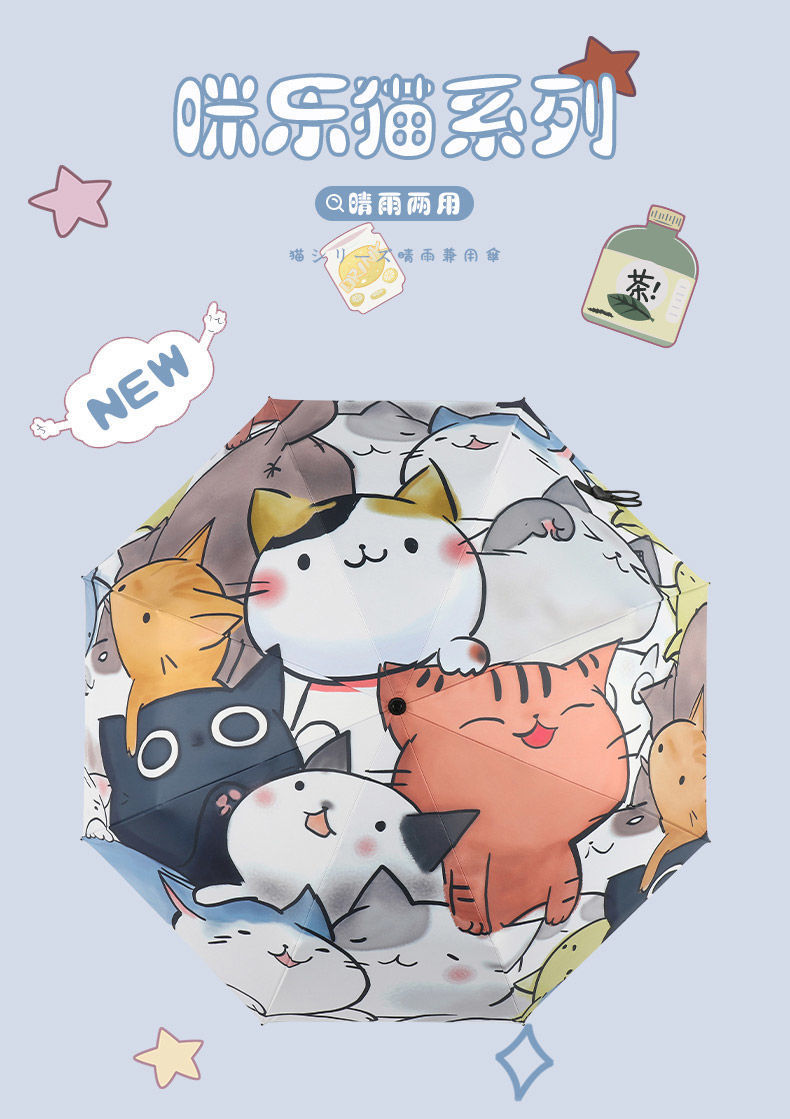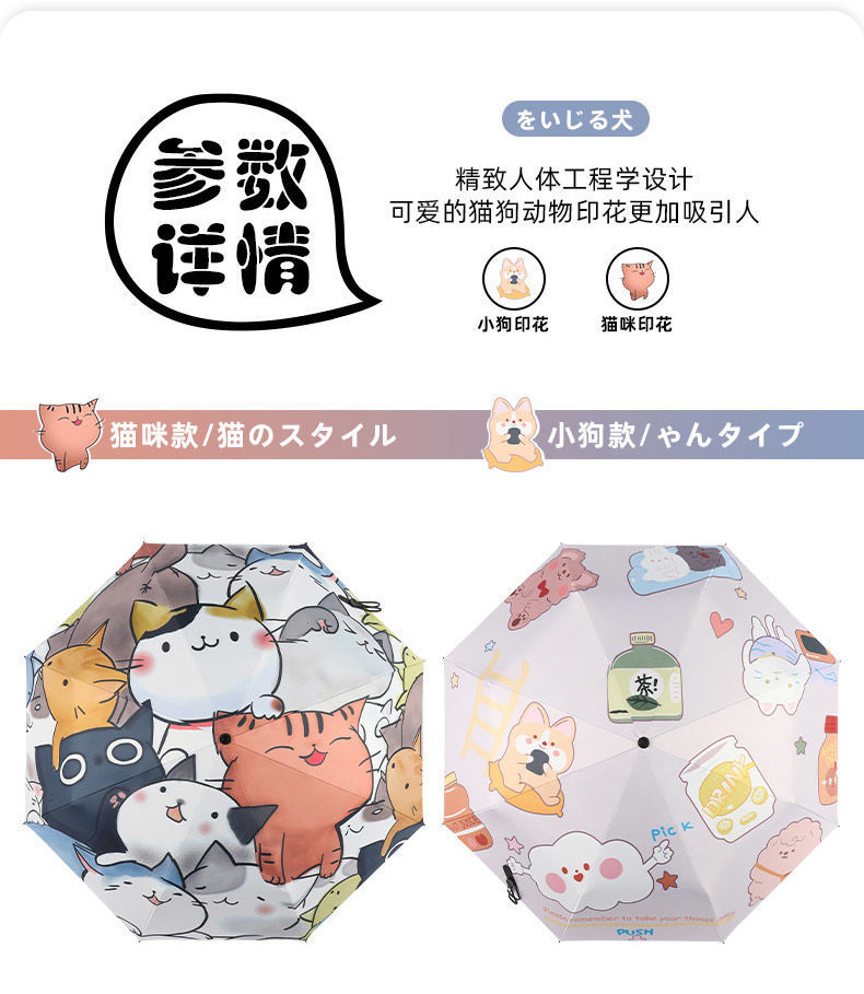 일본식 귀여운 고양이 태양 우산 여성용 블랙 고무 써니 우산 남성용 자외선 차단제 자동 접이식 차양 우산에서 이중 사용스토어 가기