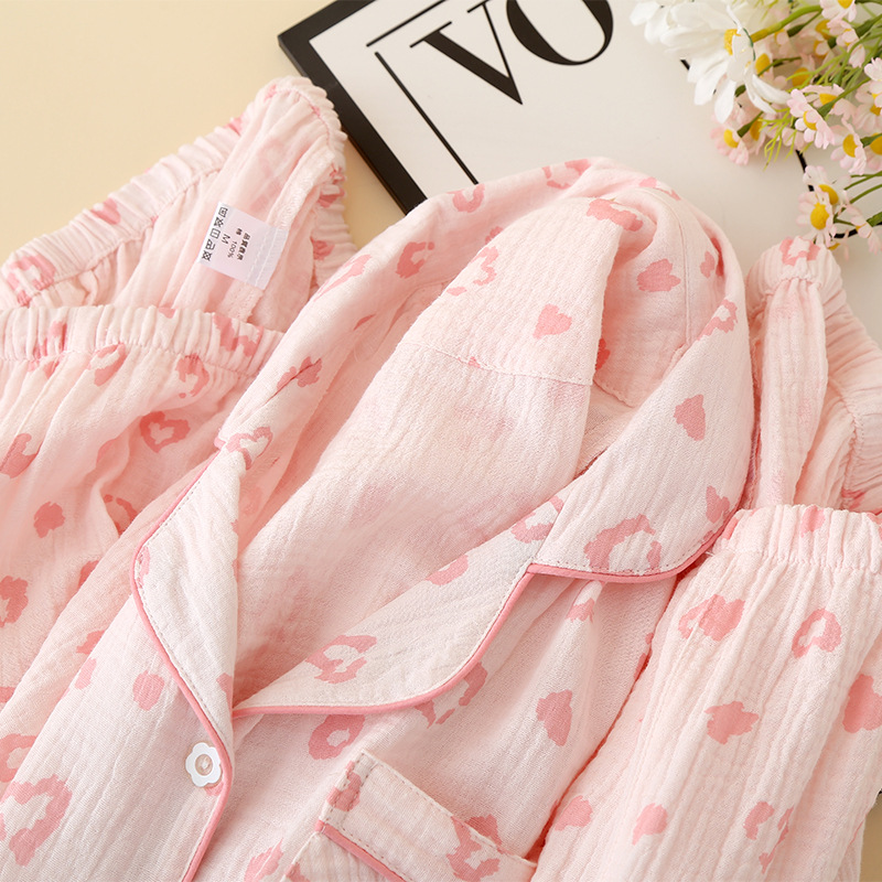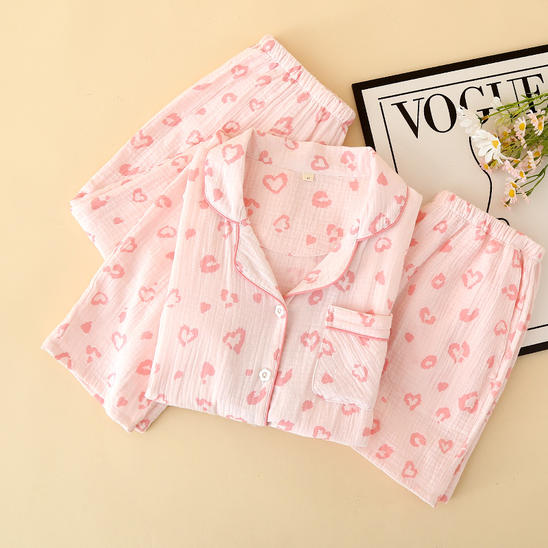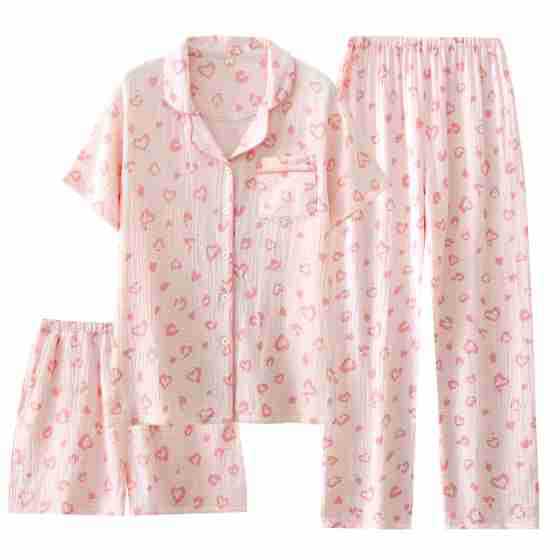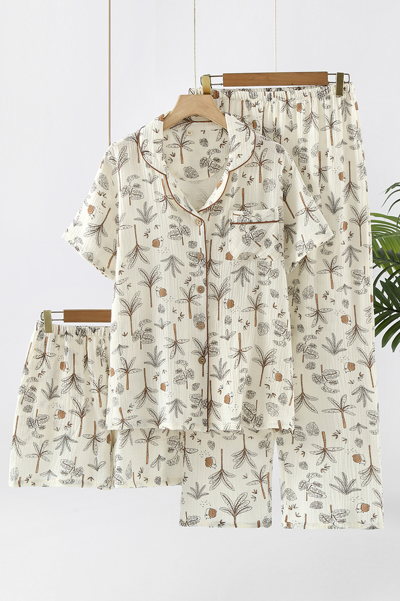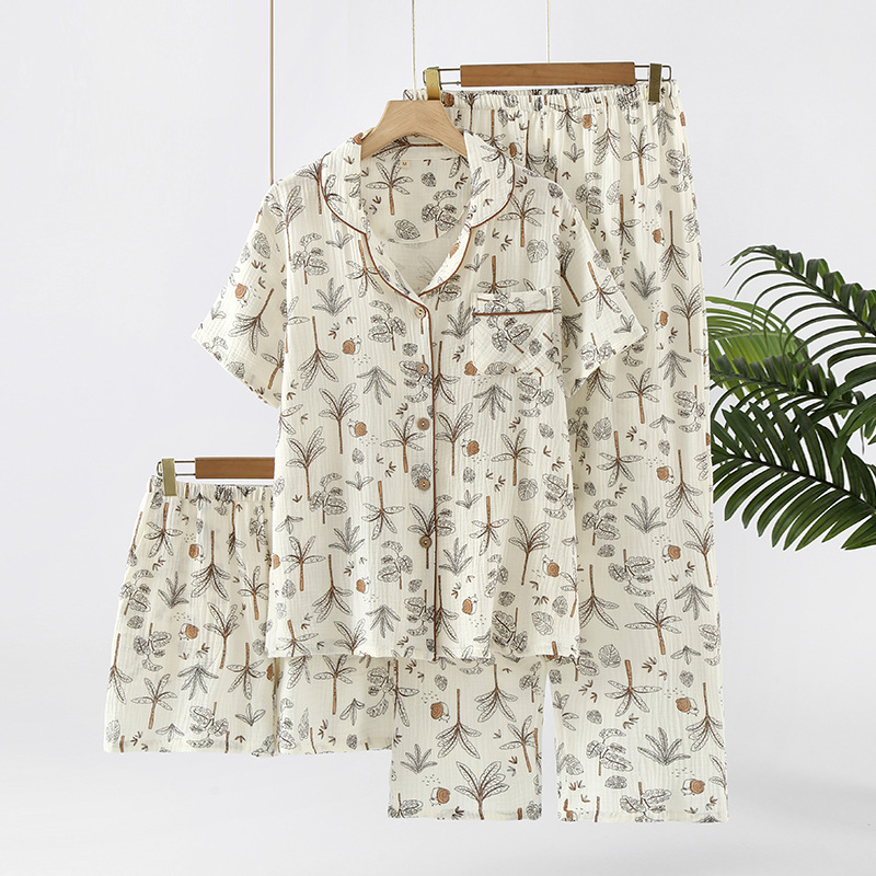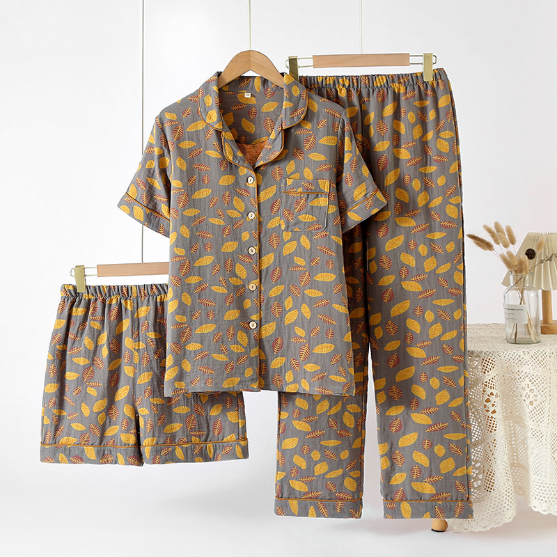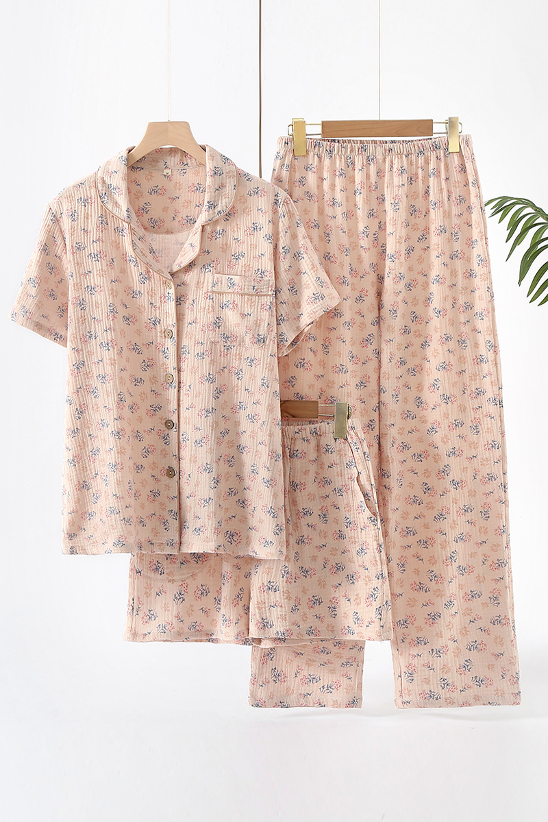 여성용 크레페 코튼 원사 반바지 3 종 세트 봄 여름 가을 얇은 국경 면 파자마 홈 의류스토어 가기