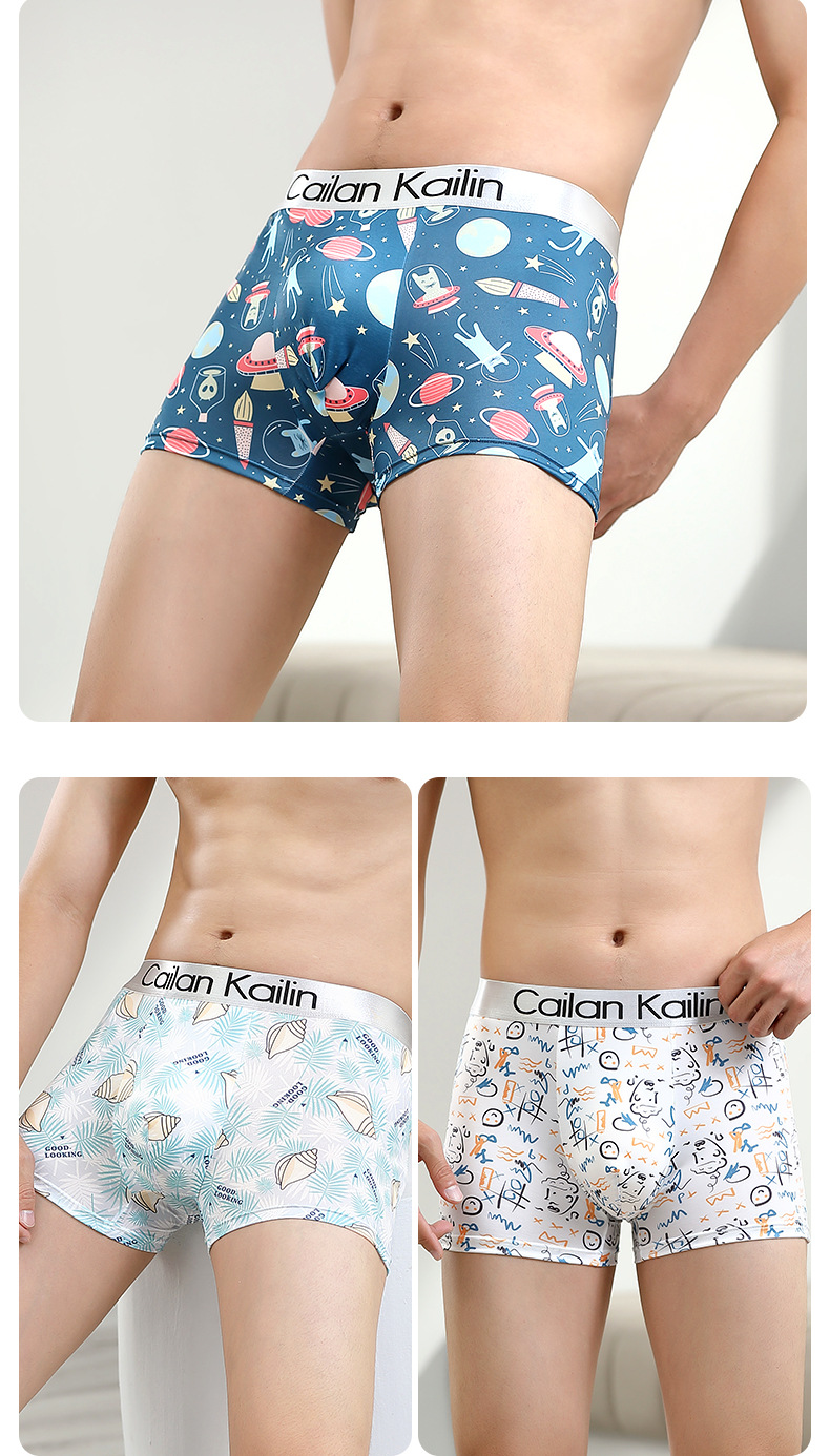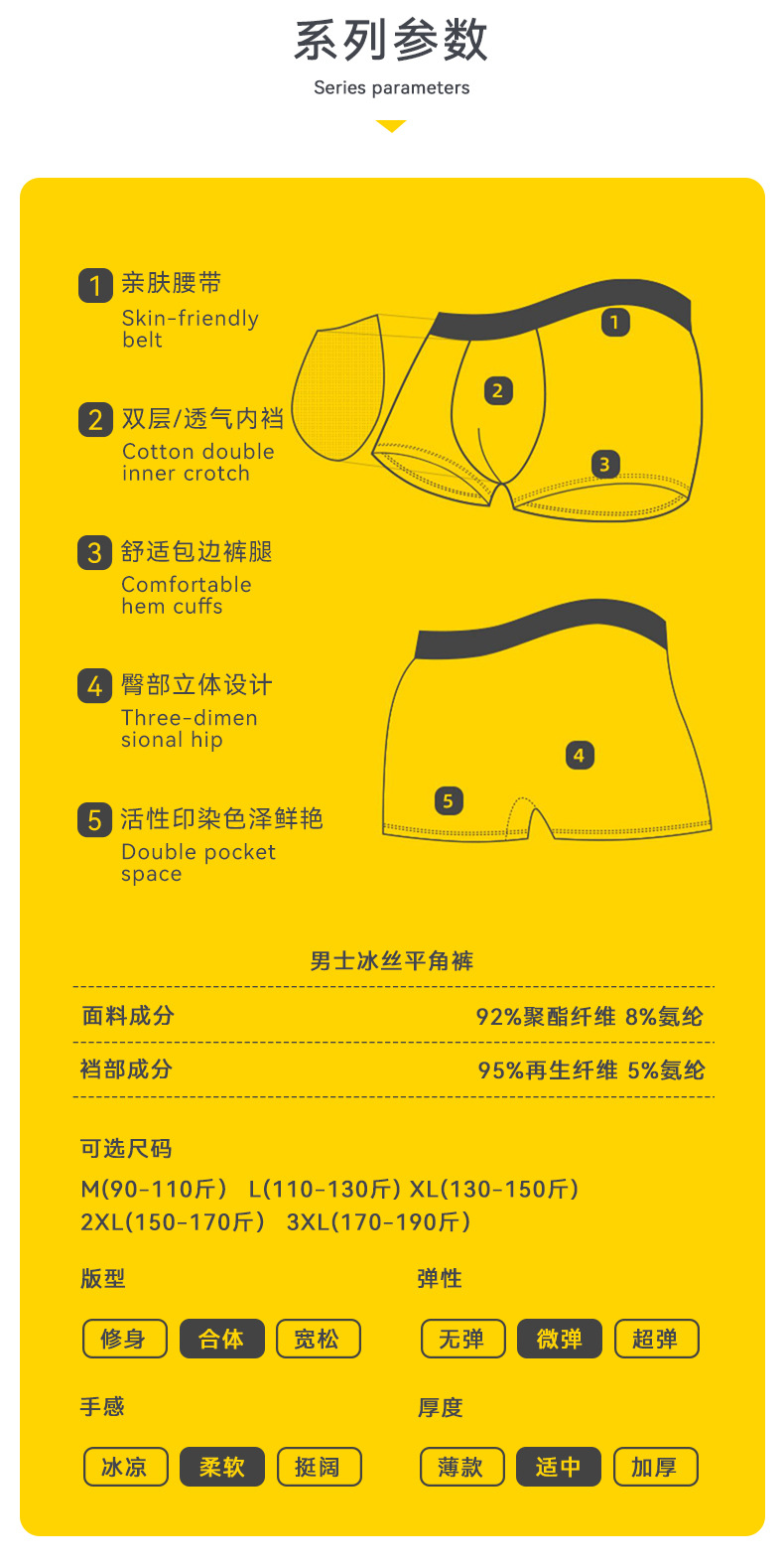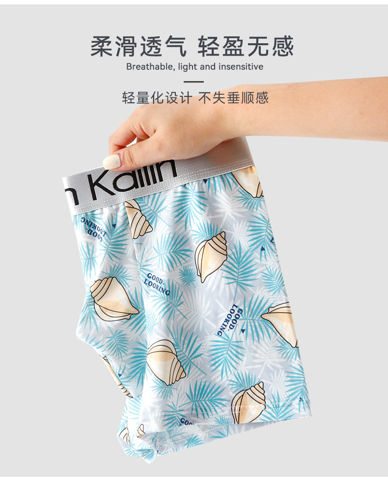 새로운 재고 도매 남자의 속옷 여름 아이스 실크 울트라 얇은 복서 느슨한 부드러운 복서 반바지 머리 생성