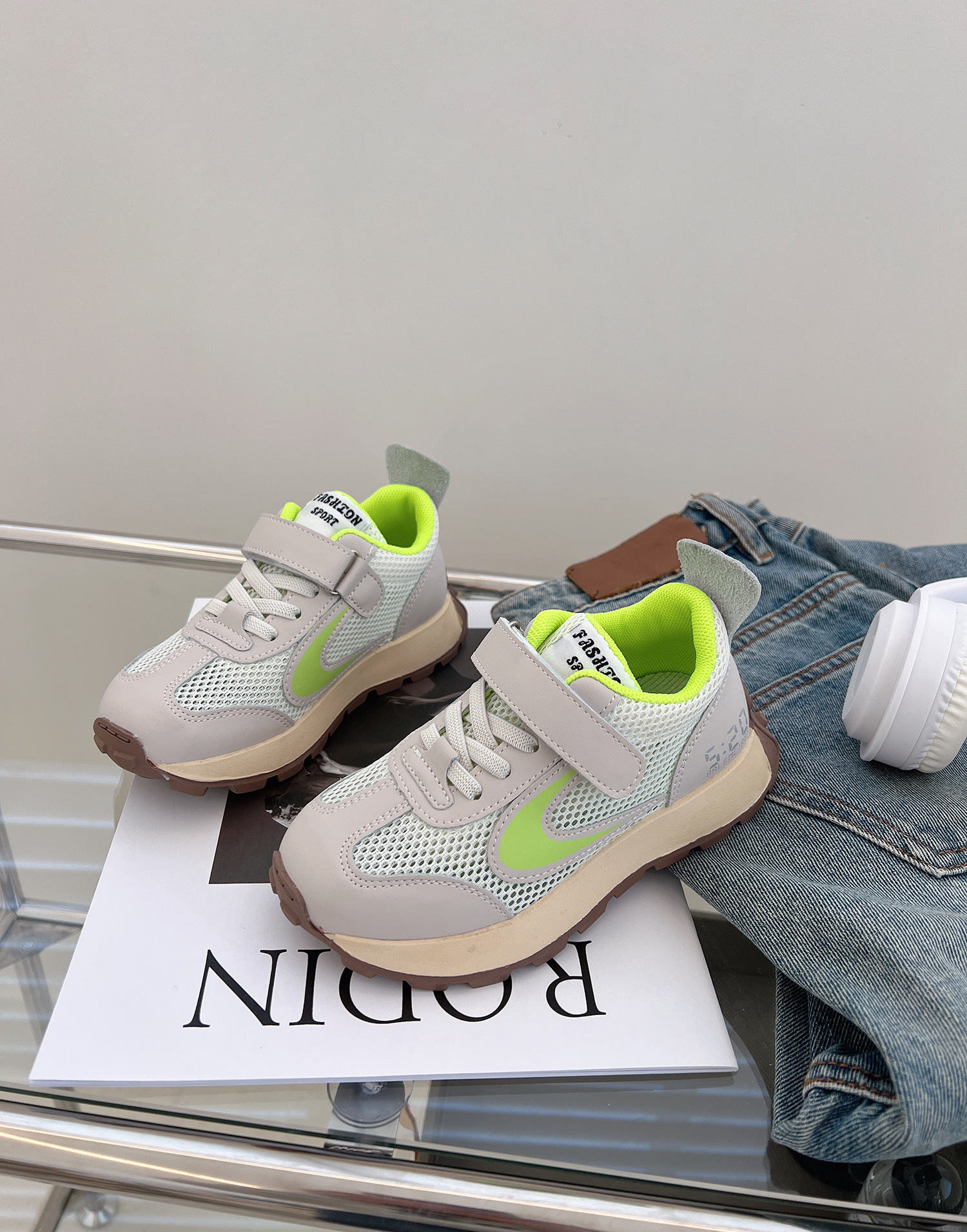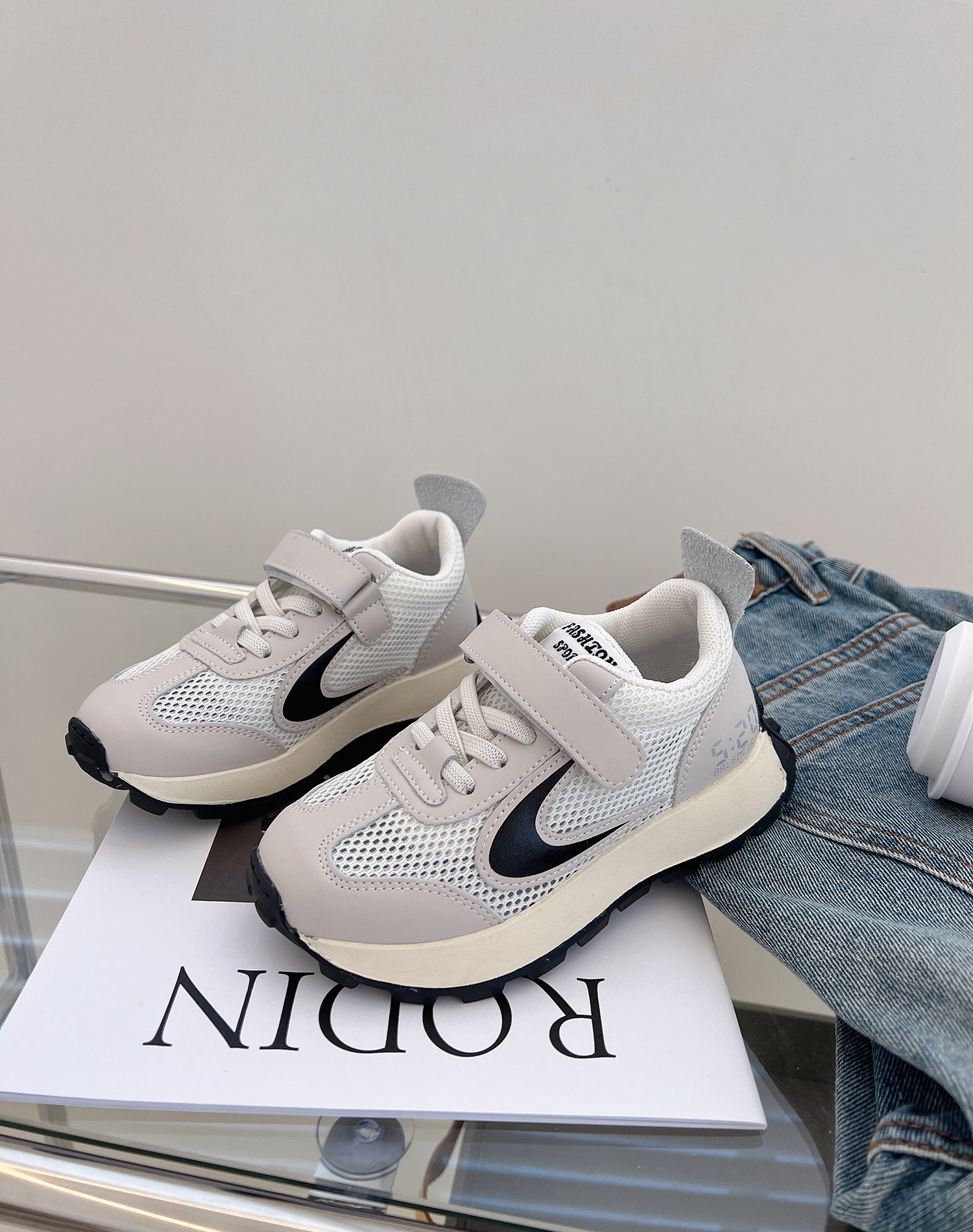 시아 멩 어린이 신발 2023 봄과 여름 소년과 소녀를 운동화 새로운 어린이 통기성 메쉬 신발 벨크로 부드러운 바닥 운동화