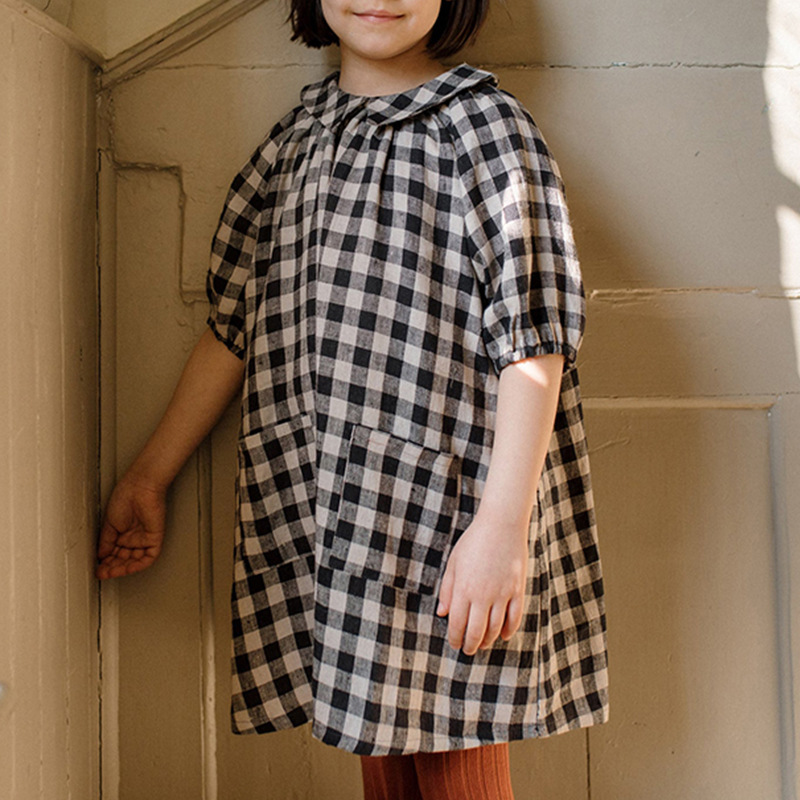 2023 여름 새로운 소녀 목회 스타일 흑백 원피스 하이 퀄리티 면화 인형 칼라 어린이 공주 원피스스토어 가기