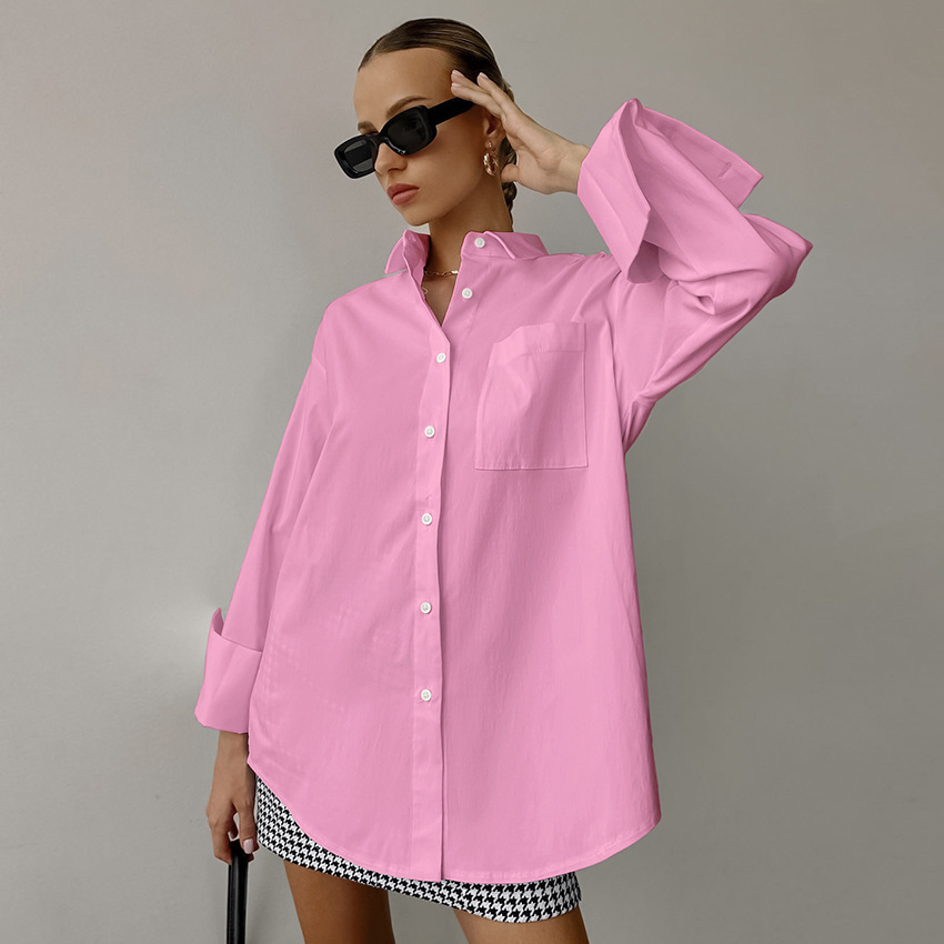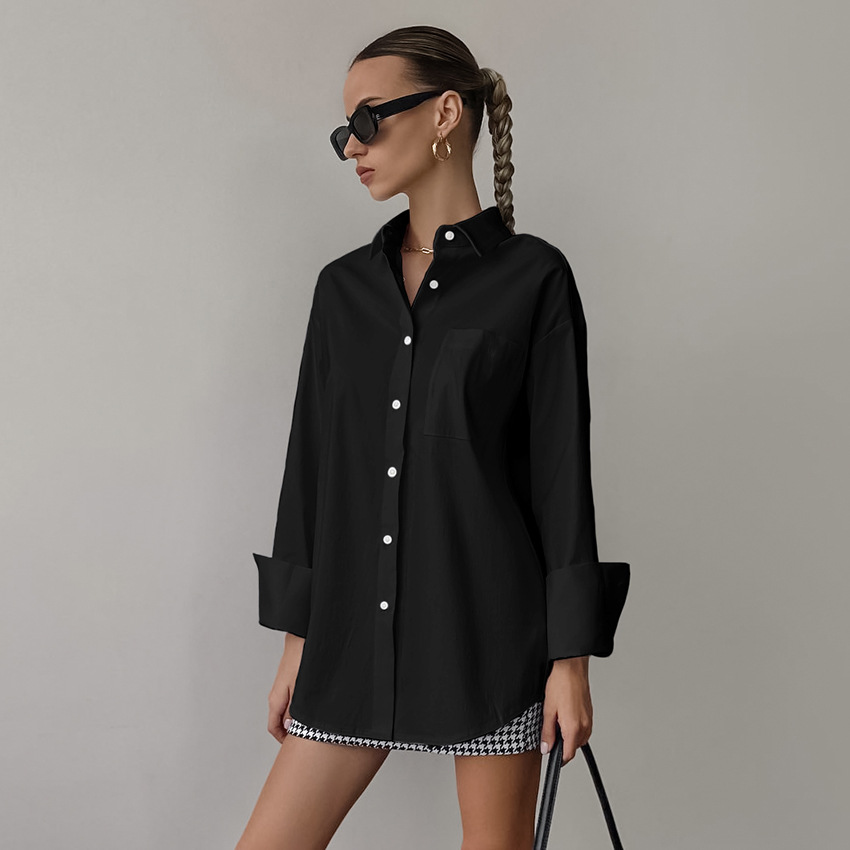 간단한 오버 사이즈 남자 친구 스타일 화이트 셔츠 캐주얼 패션 2025 봄/여름 캐주얼 통근 다목적 중간 길이 여성스토어 가기