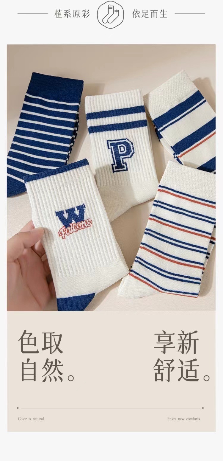 양말 여성용 봄 여름 면 스포츠 아우터 땀 흡수 중간 길이 양말 트렌디한 독특한 한식 레터 스타킹 가을 겨울