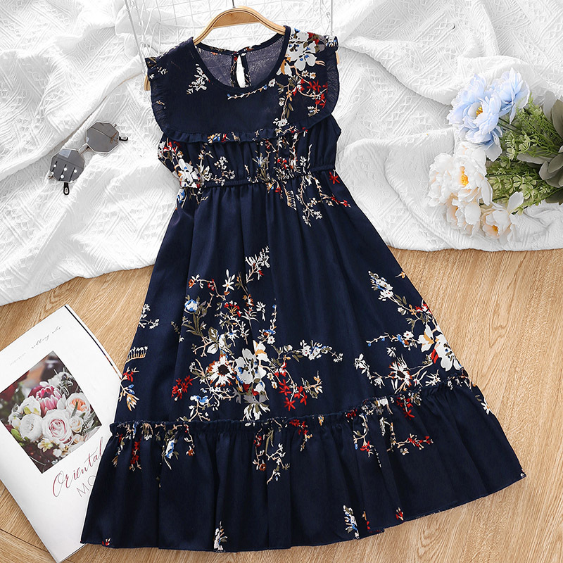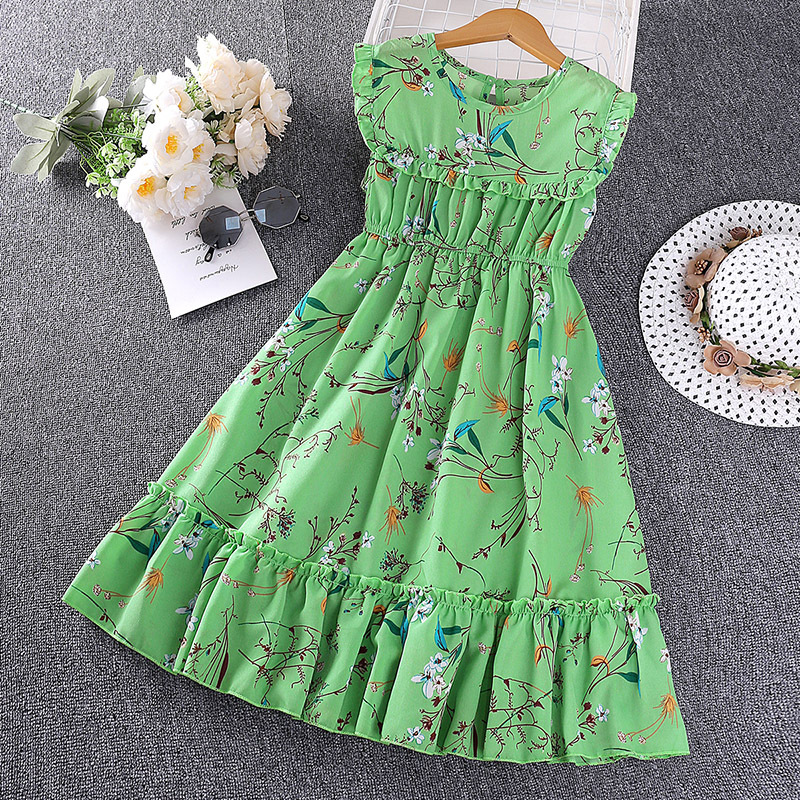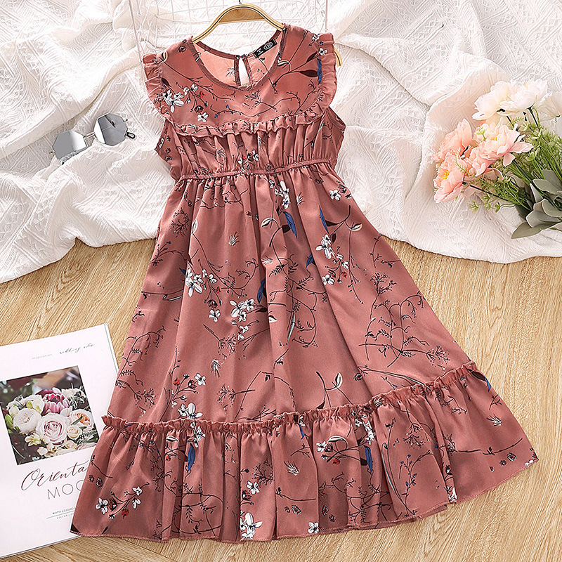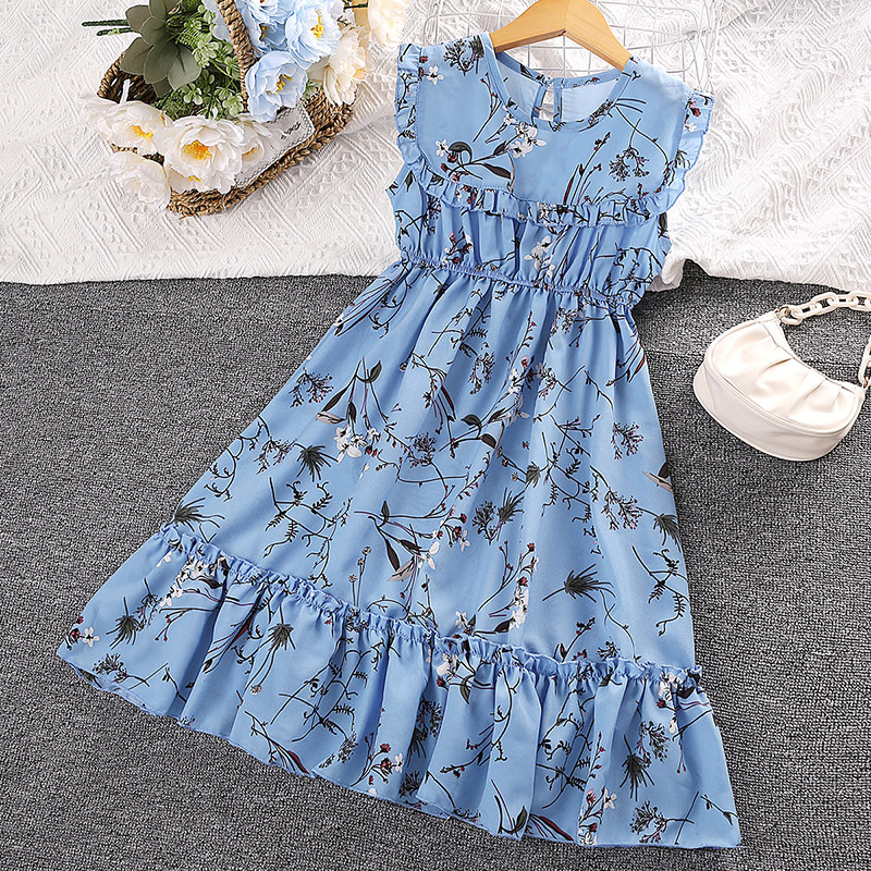 뜨거운 소녀 원피스 2024 여름 새로운 어린이 치마 인쇄 민소매 공주 원피스 국경 간 아동복 도매스토어 가기