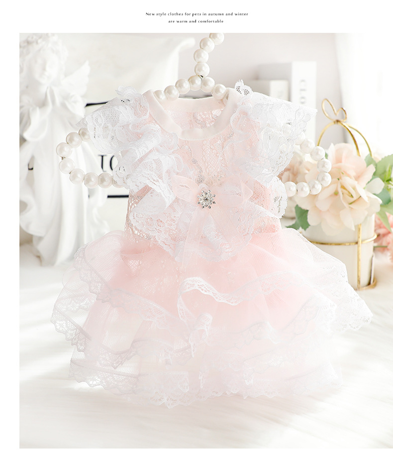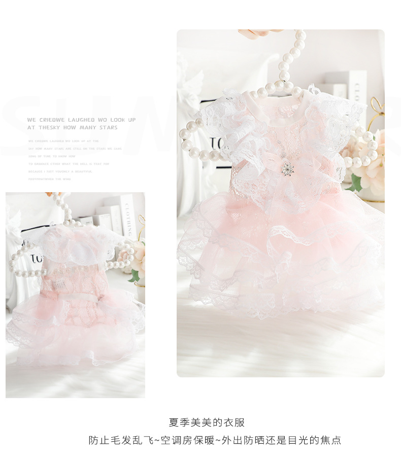 개 옷 봄과 여름 얇은 고양이 공주 원피스 높은 세트 원피스 고기 가루 레이스 작은 개 테디 애완 동물 3694 도매스토어 가기