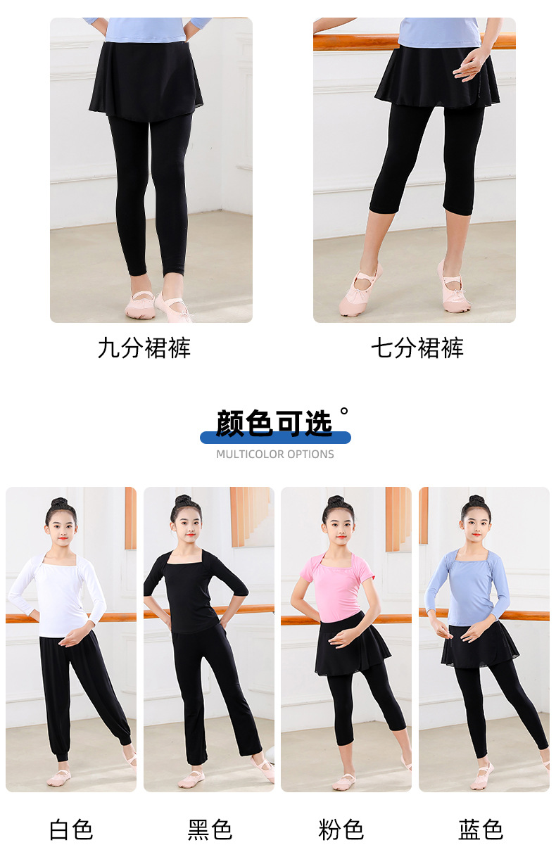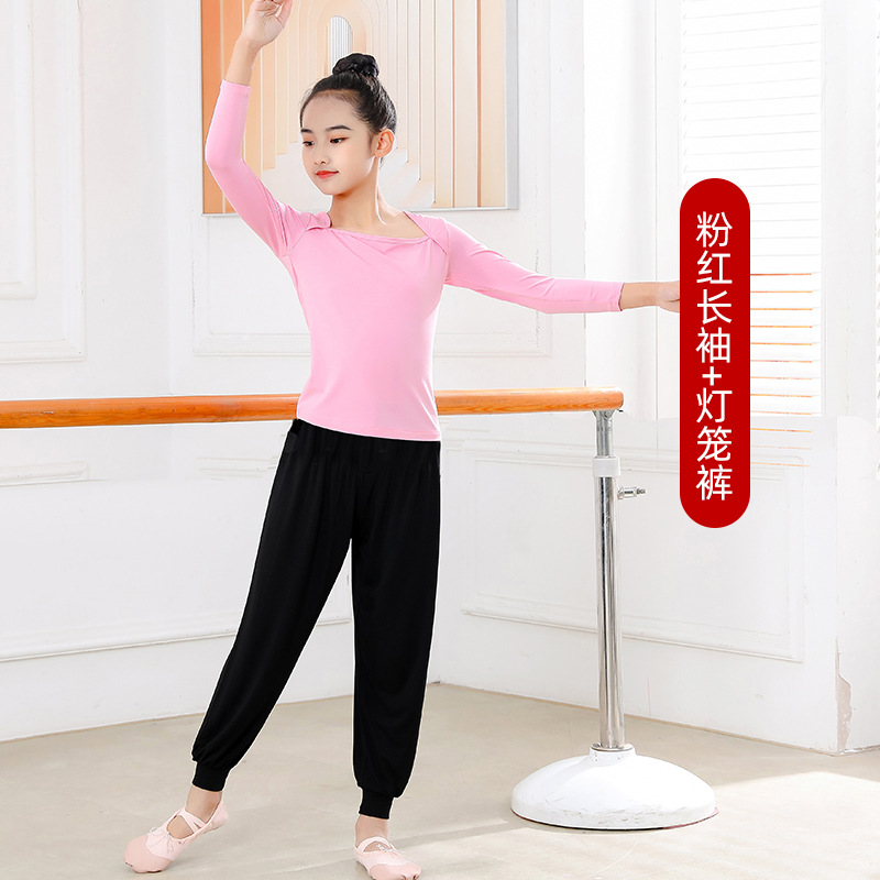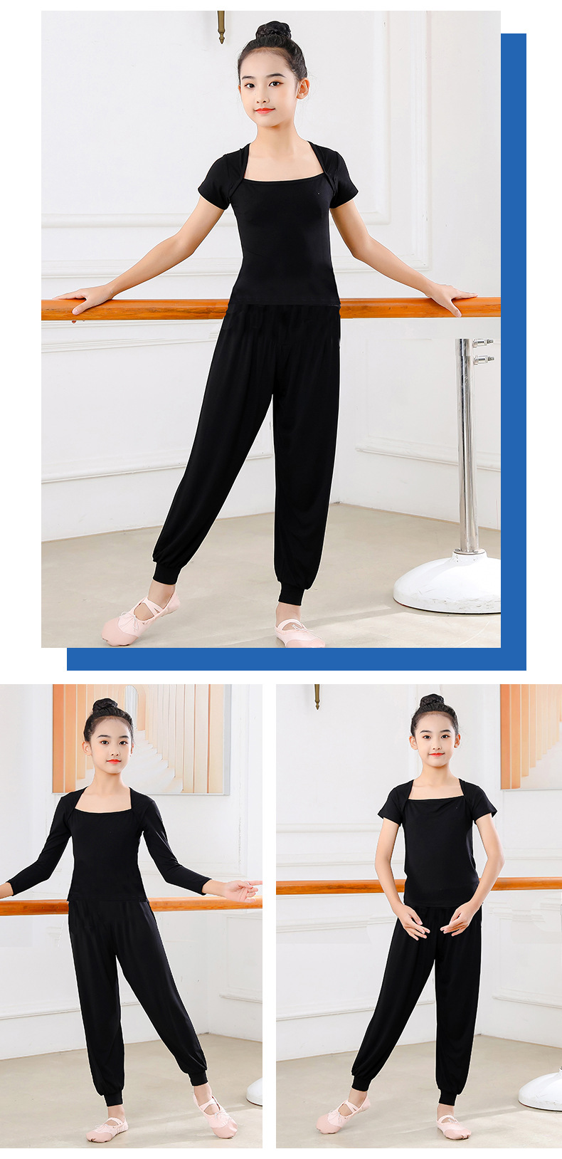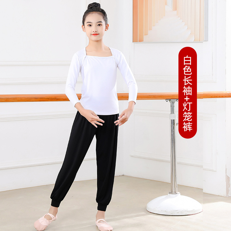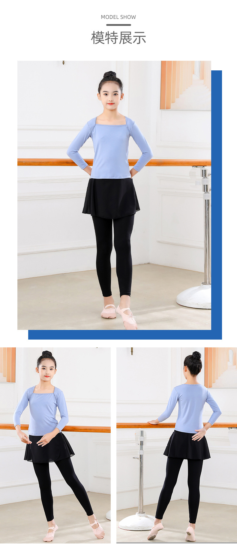여아 댄스와 신체 의류 모달 탑 스퀘어 칼라 연습복 느슨한 블루머 어린이 쉬폰 스커트 바지 세트스토어 가기