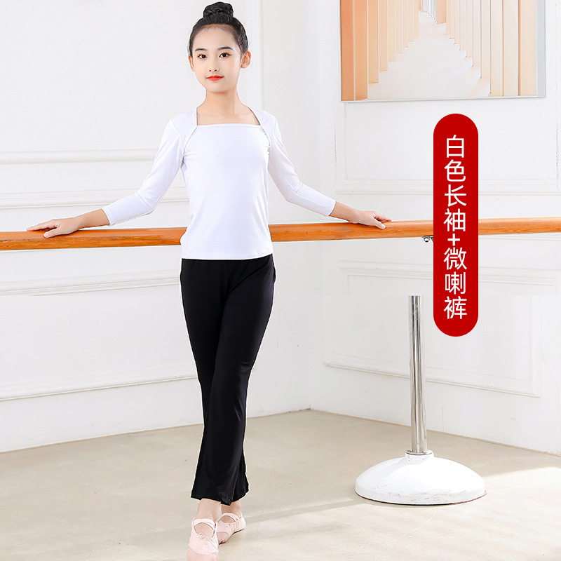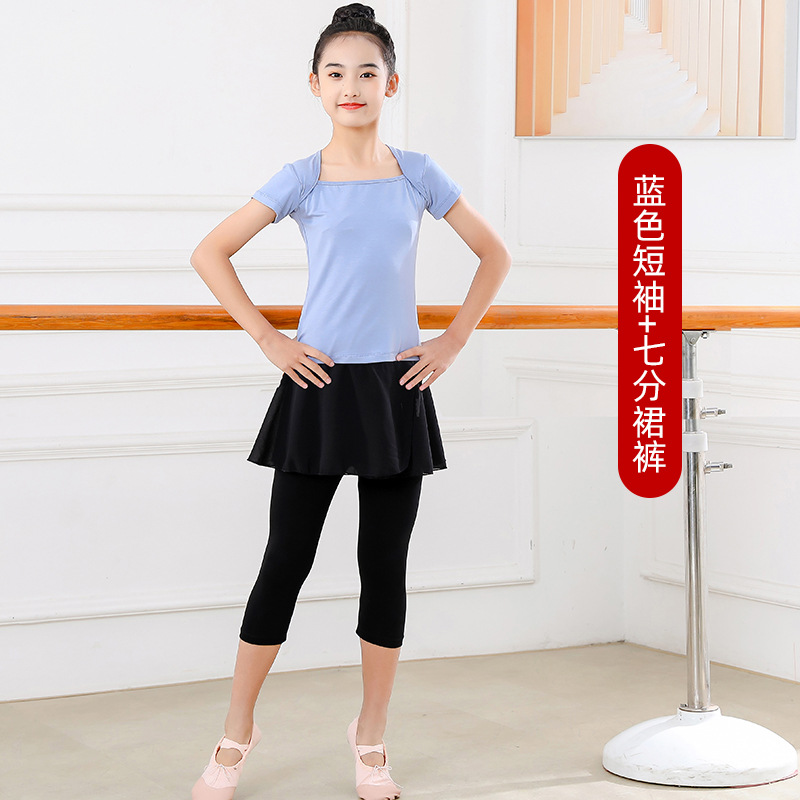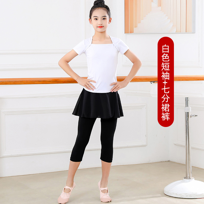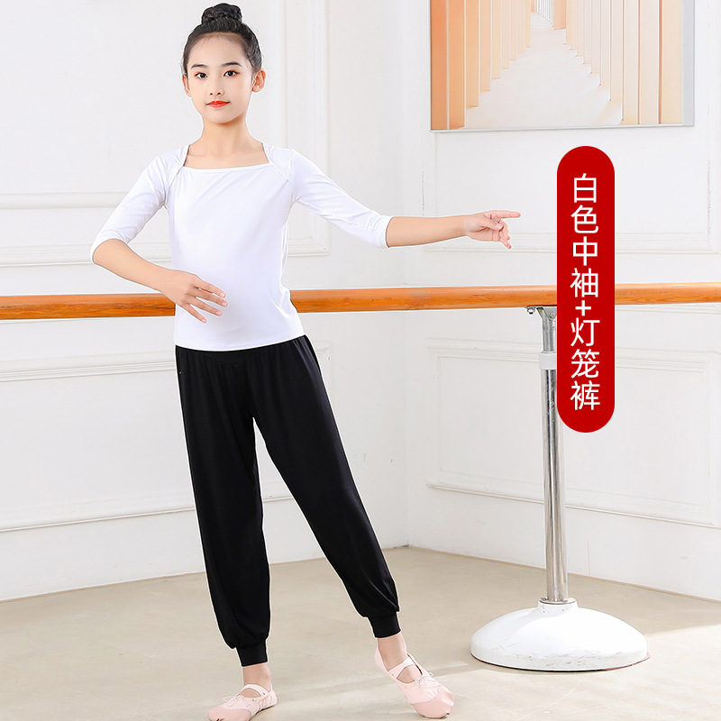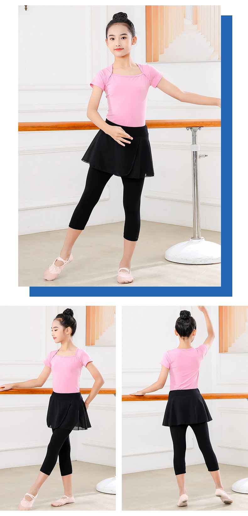여아 댄스와 신체 의류 모달 탑 스퀘어 칼라 연습복 느슨한 블루머 어린이 쉬폰 스커트 바지 세트스토어 가기