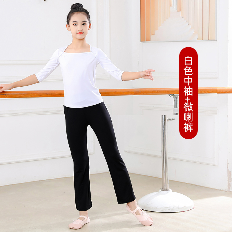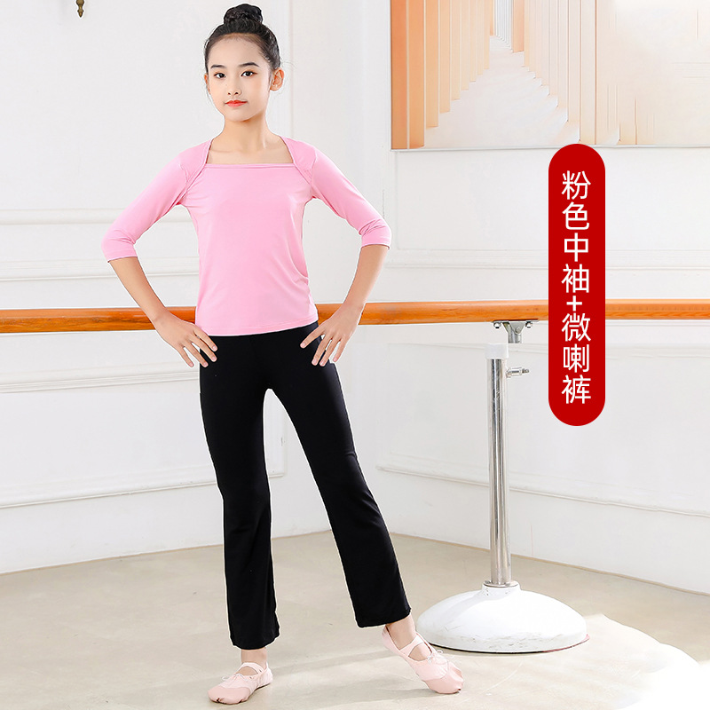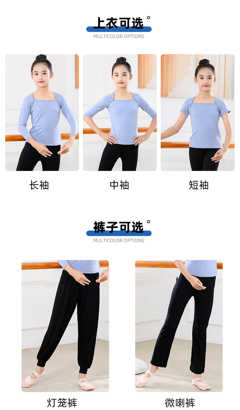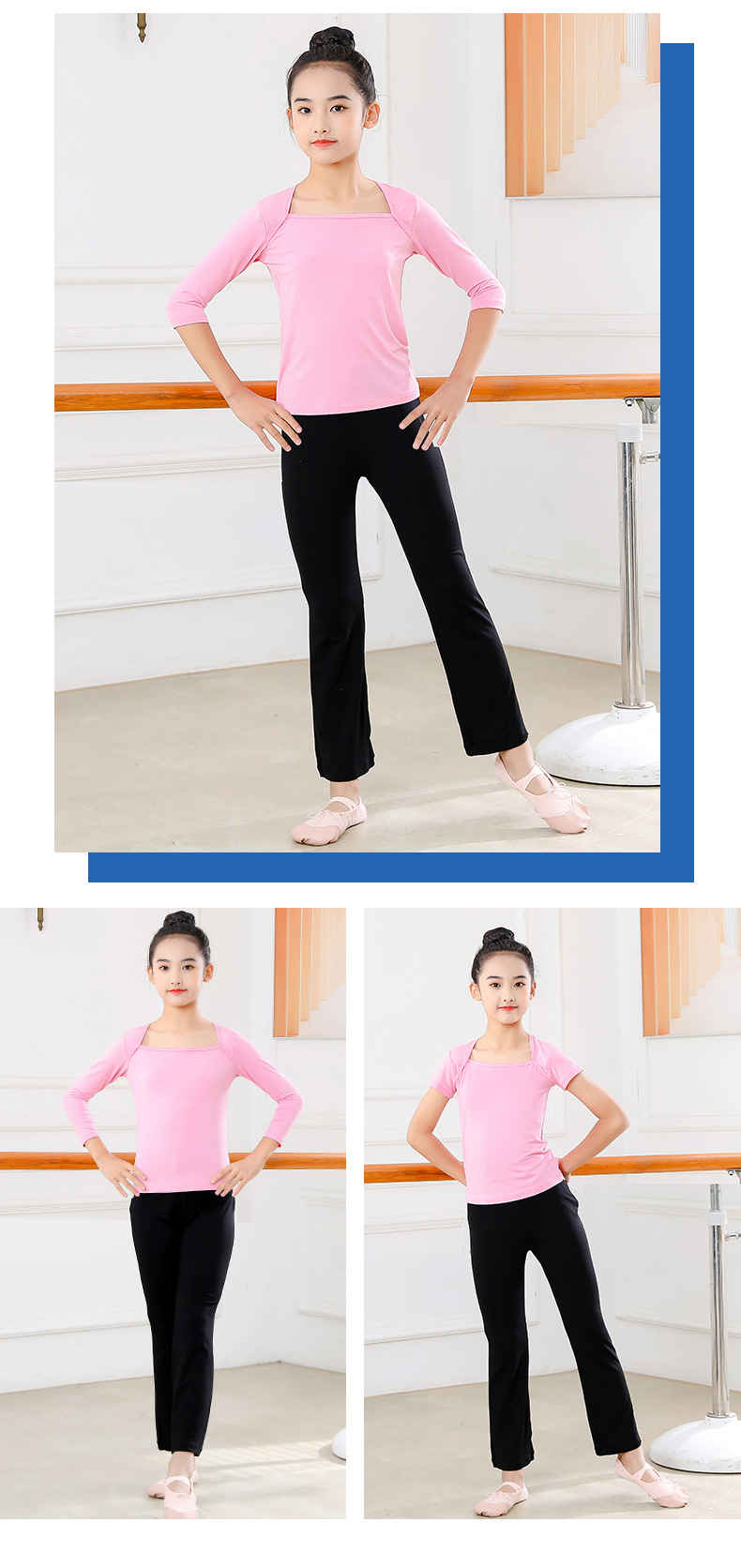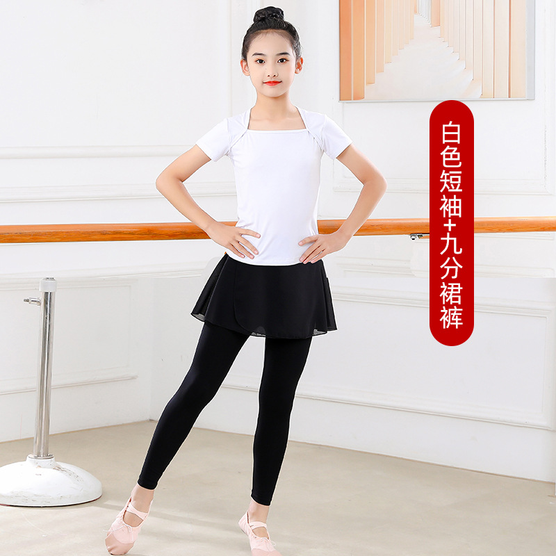 여아 댄스와 신체 의류 모달 탑 스퀘어 칼라 연습복 느슨한 블루머 어린이 쉬폰 스커트 바지 세트스토어 가기