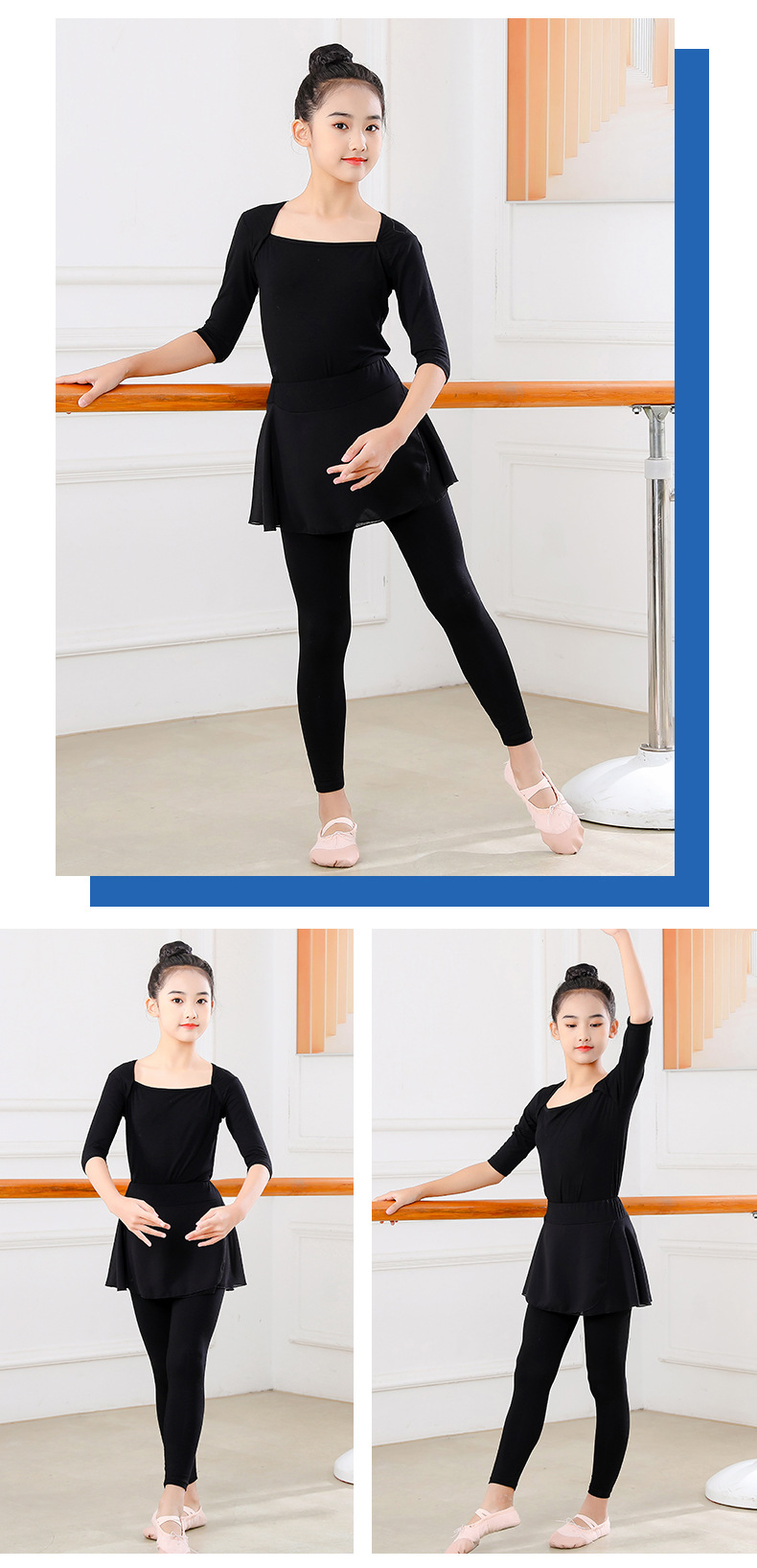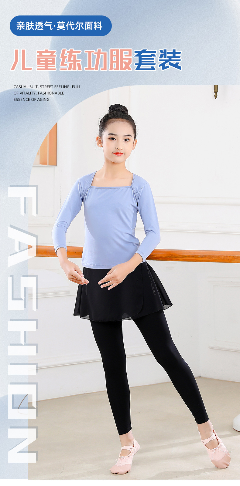 여아 댄스와 신체 의류 모달 탑 스퀘어 칼라 연습복 느슨한 블루머 어린이 쉬폰 스커트 바지 세트