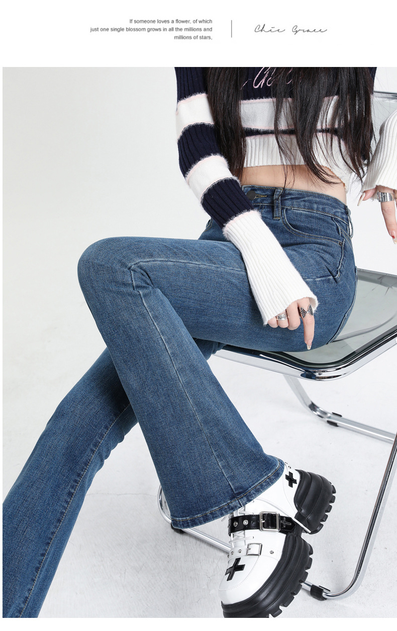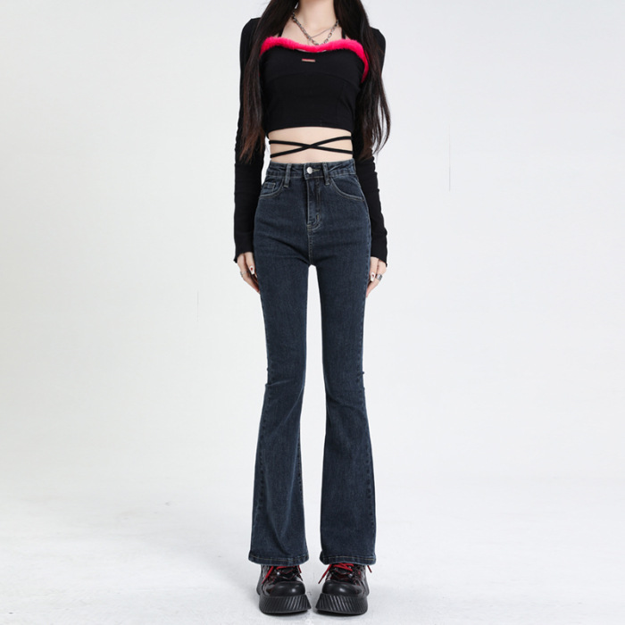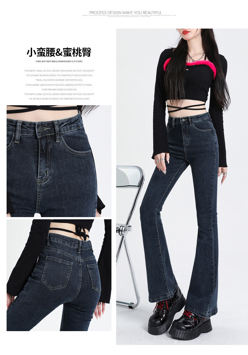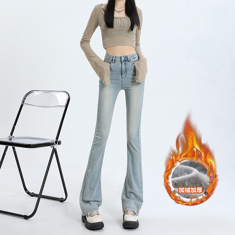 加绒牛仔裤女冬高腰显瘦加绒喇叭裤女微喇牛仔裤女冬弹力高街