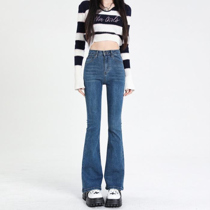 高腰微喇牛仔裤女秋款修身显瘦马蹄弹力喇叭裤女秋
