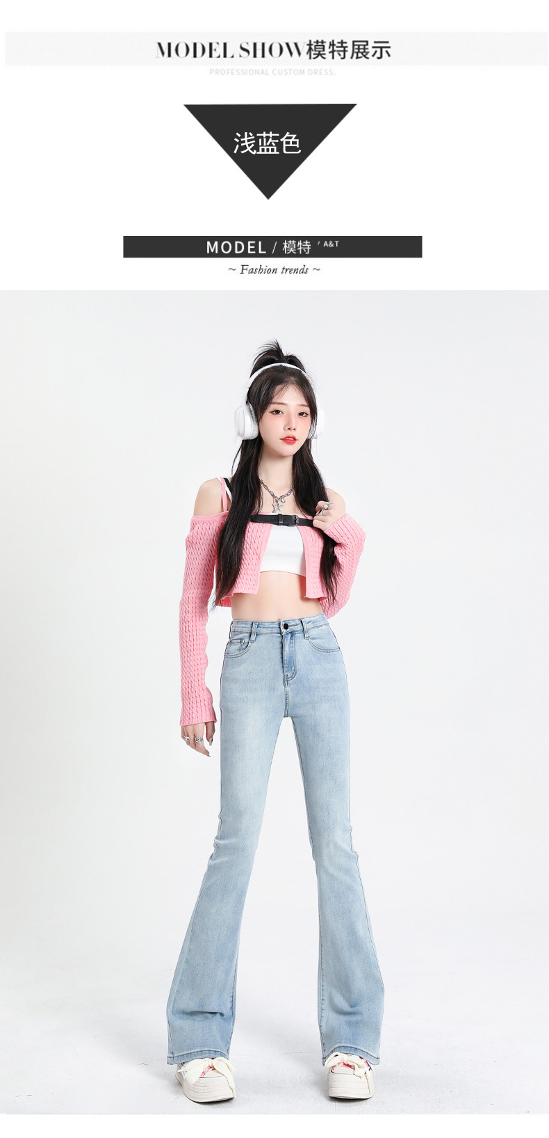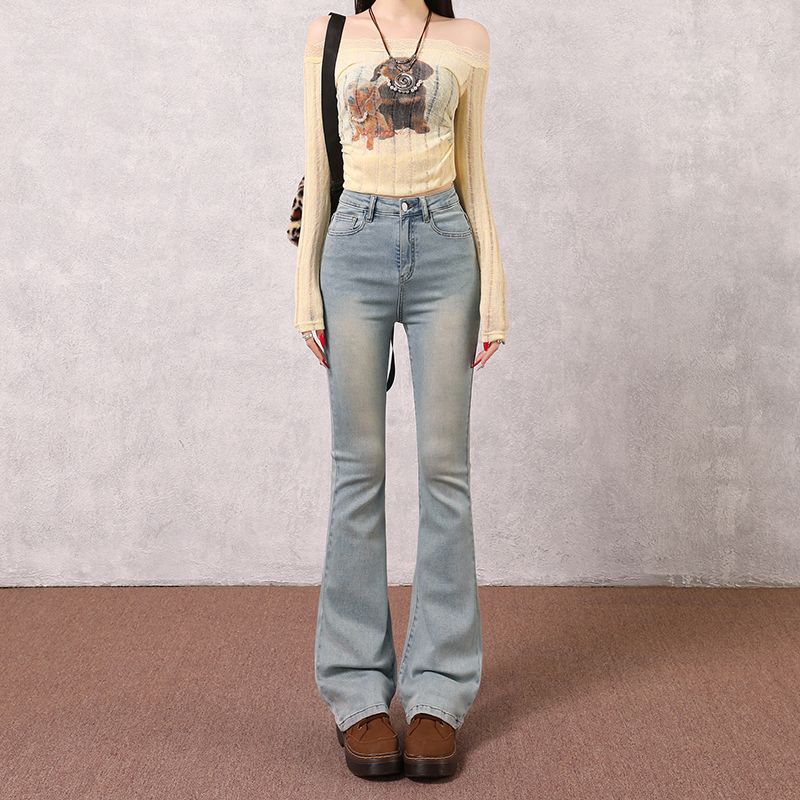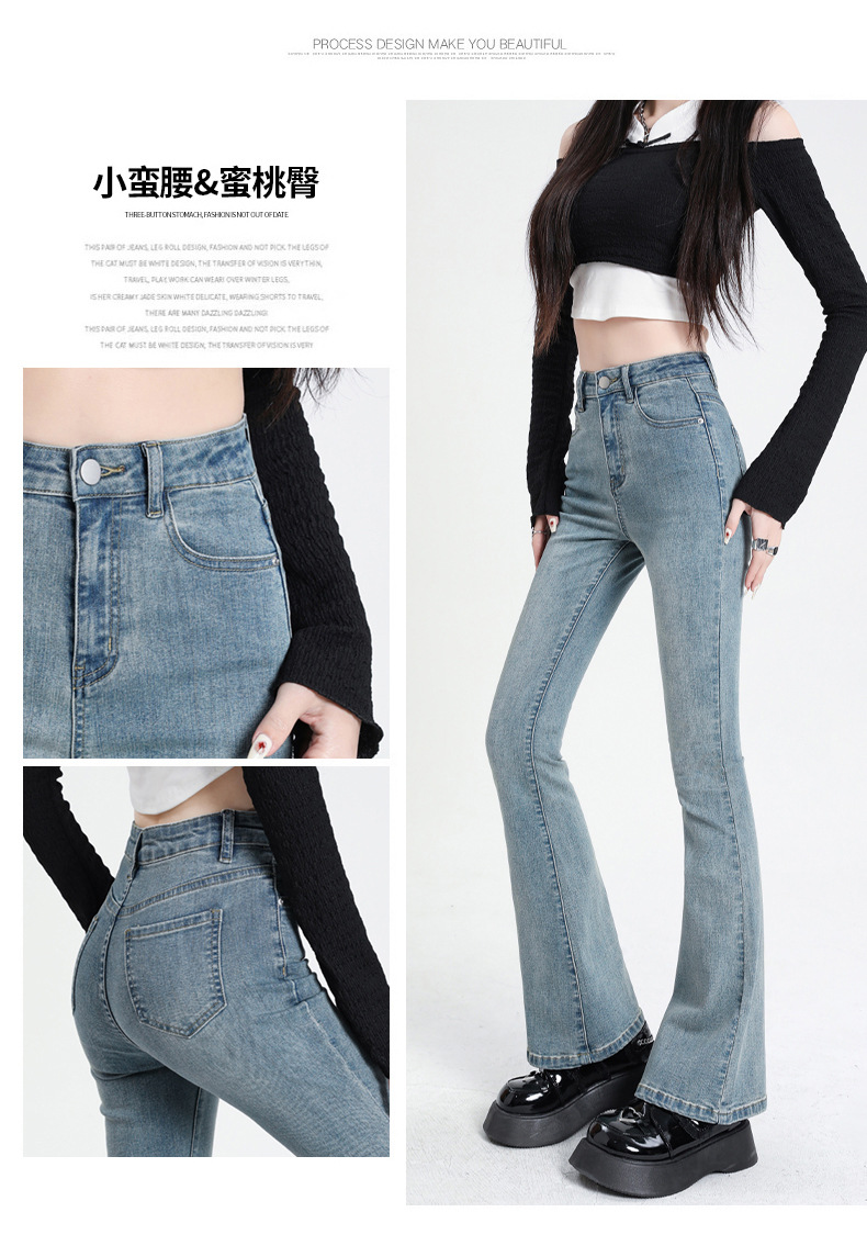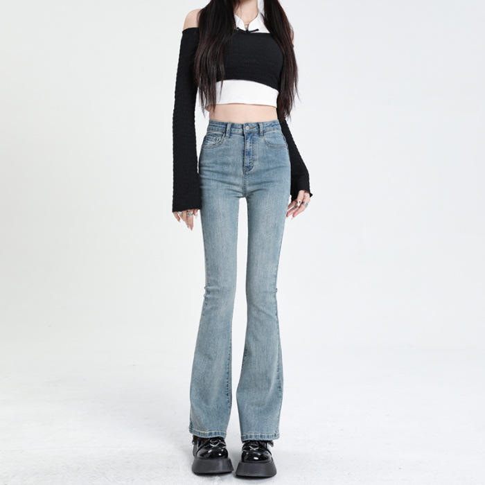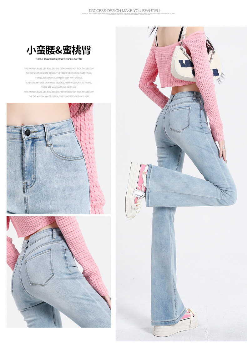 2023春夏季主推微喇叭牛仔裤女薄款设计感高腰显瘦马蹄裤子提臀