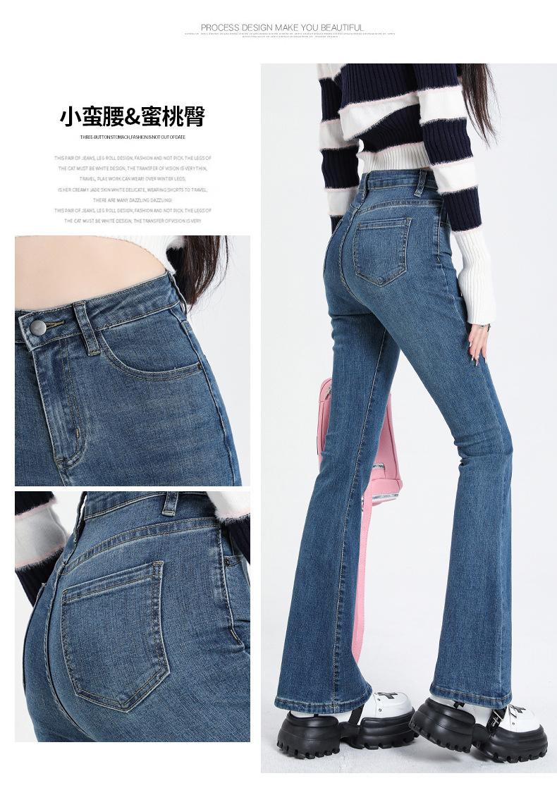加绒牛仔裤微喇牛仔裤女秋冬高腰显瘦小个子喇叭裤女秋冬马蹄裤