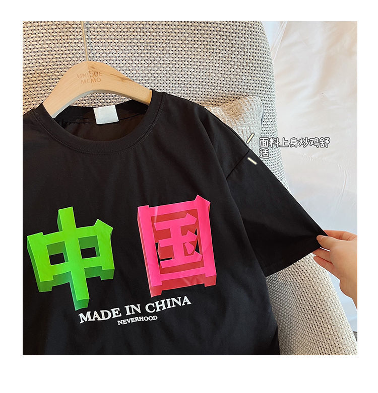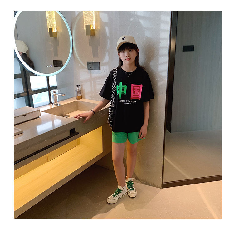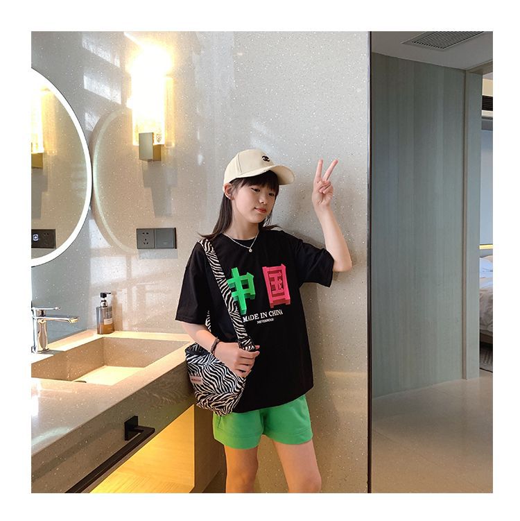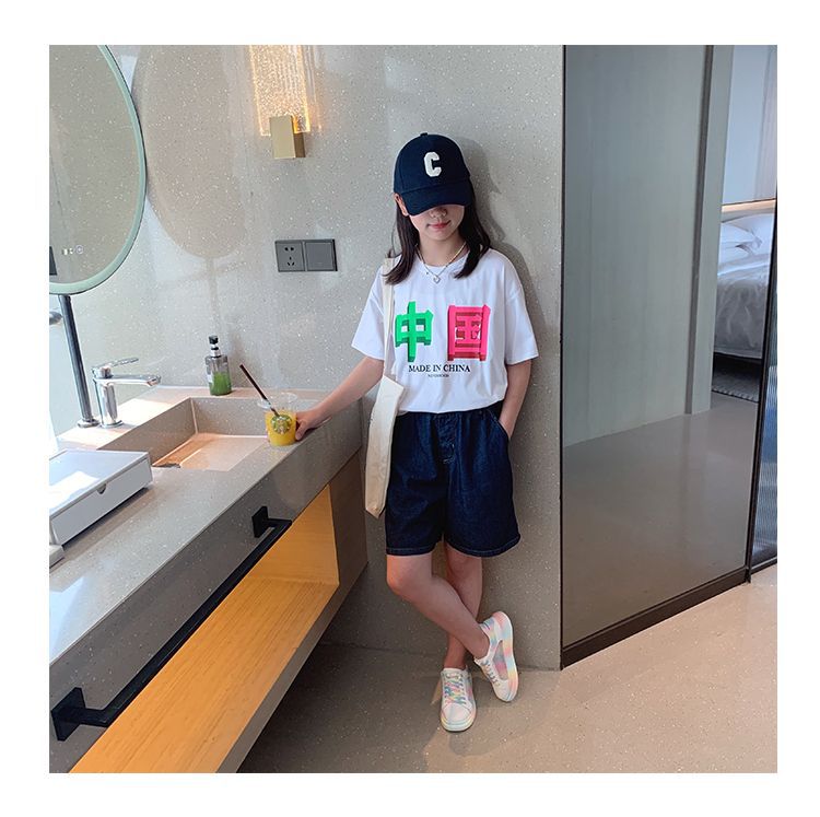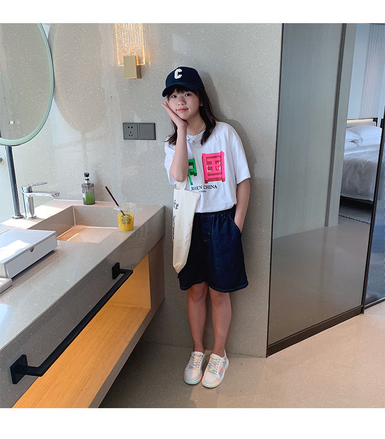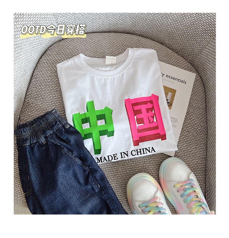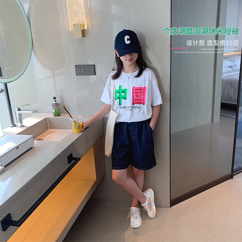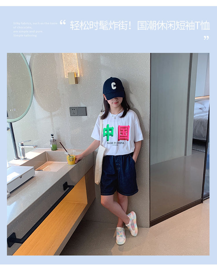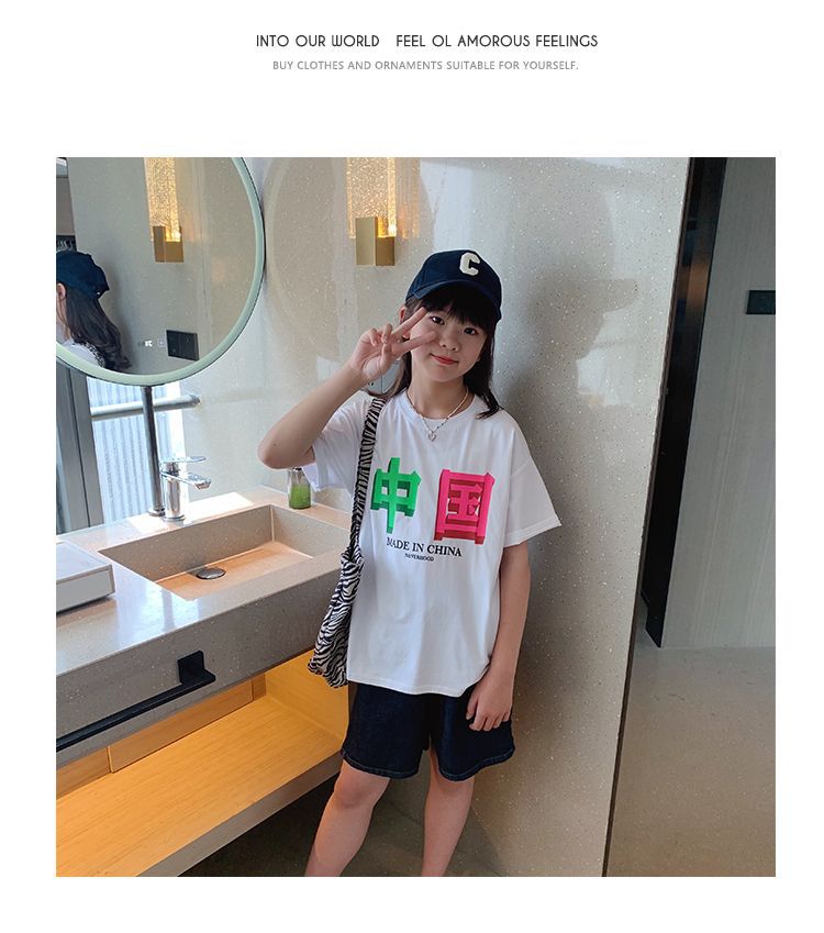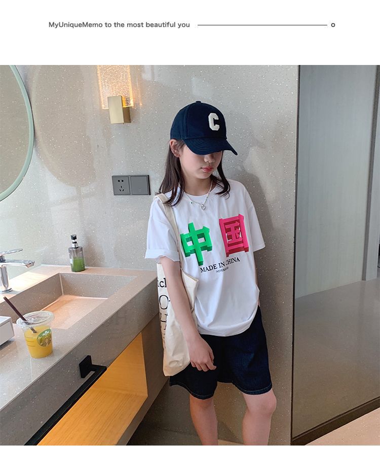 여아 반팔 면 통기성 티셔츠 중국 스타일 큰 아이들 여름 서양 스타일 느슨한 탑 반팔 티셔츠 어린이 패션스토어 가기