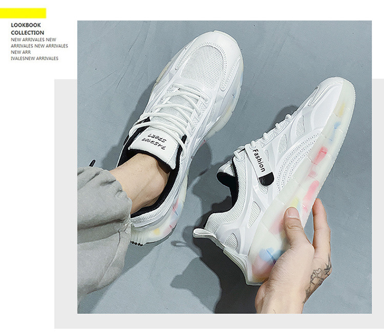 봄 2023 새로운 크로스 보더 팝콘 스포츠 트렌디 신발 메쉬 남성 신발 경량 통기성 스포츠 캐주얼 신발