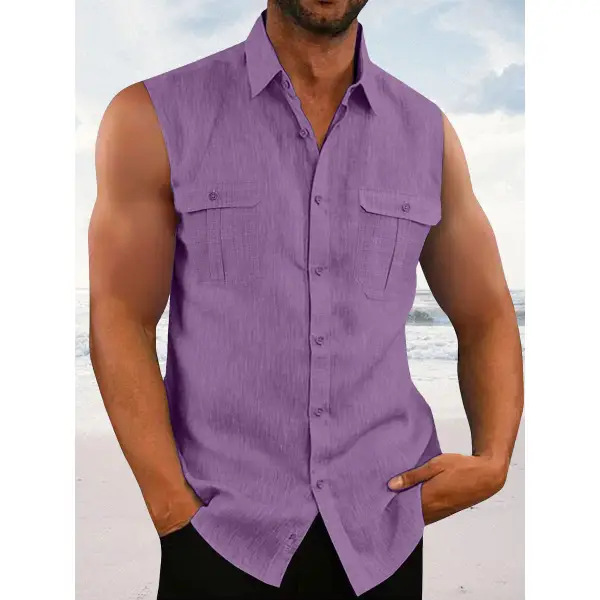 유럽과 미국의 국경 남성 면화와 린넨 단색 면화와 린넨 민소매 셔츠 2024 남성 패션 단순 멀티 컬러 워시 코튼 셔츠스토어 가기