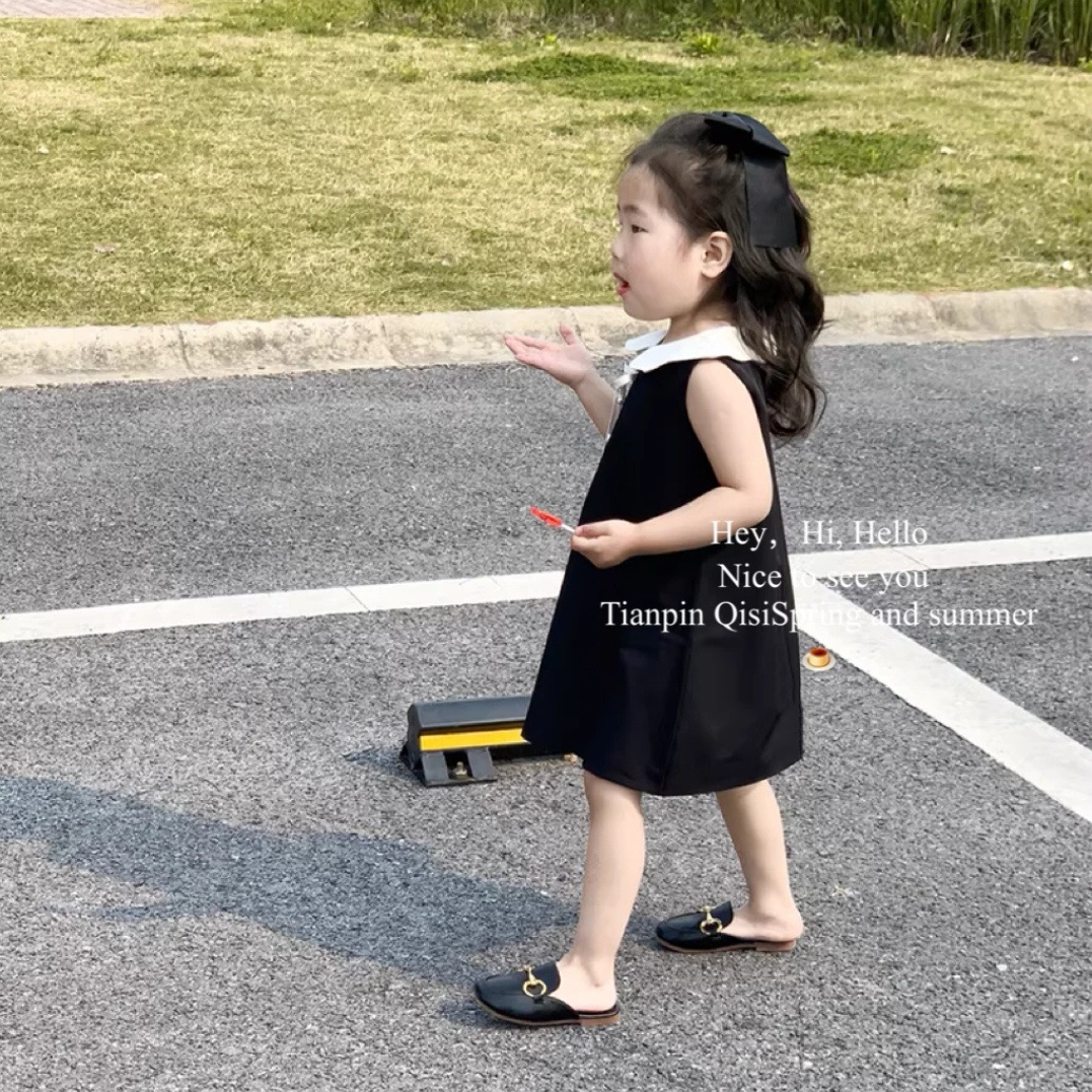 클래식 리틀 블랙 원피스 소녀의 원피스 여름 새로운 한국 스타일 세련된 민소매 인형 칼라 조끼 원피스 공주 원피스 유행