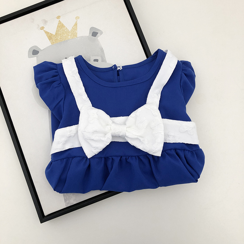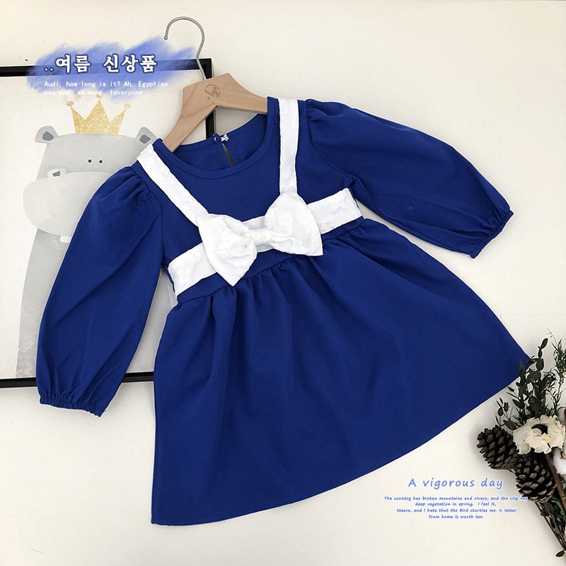 [통관 안 반환 안 변경] 여자 긴 소매 원피스 아기 소녀의 활이 가짜 투피스 공주 원피스