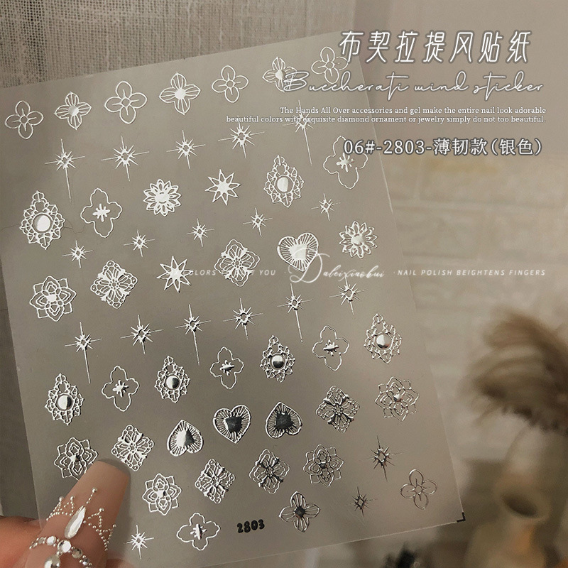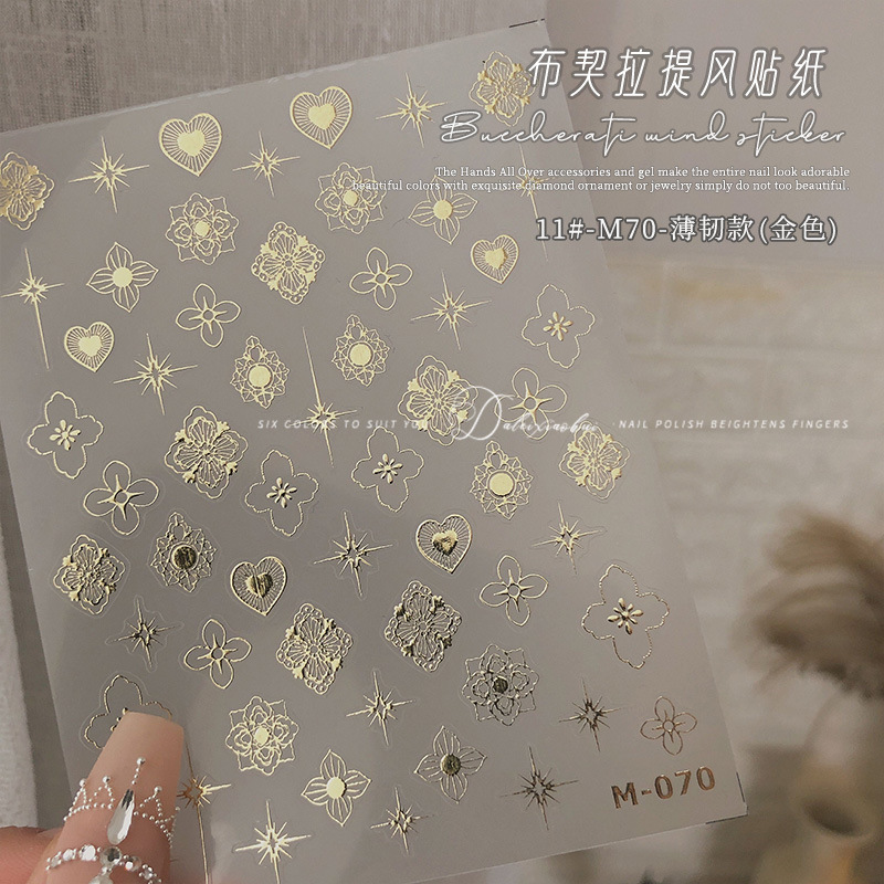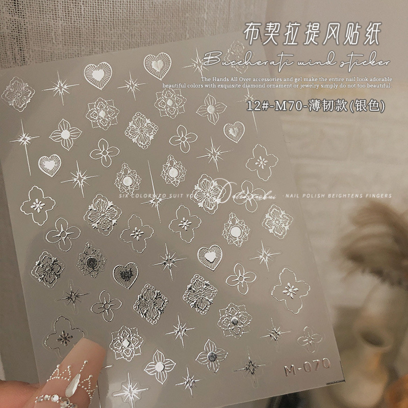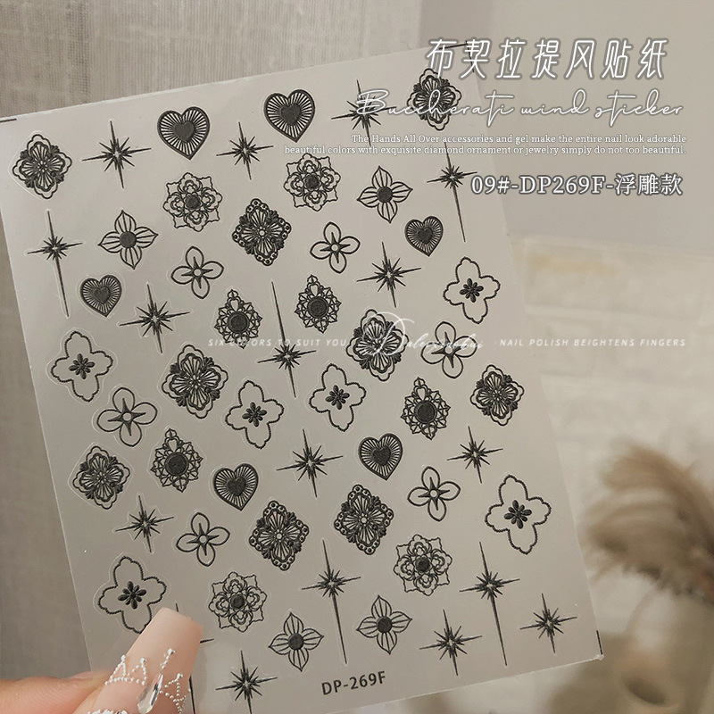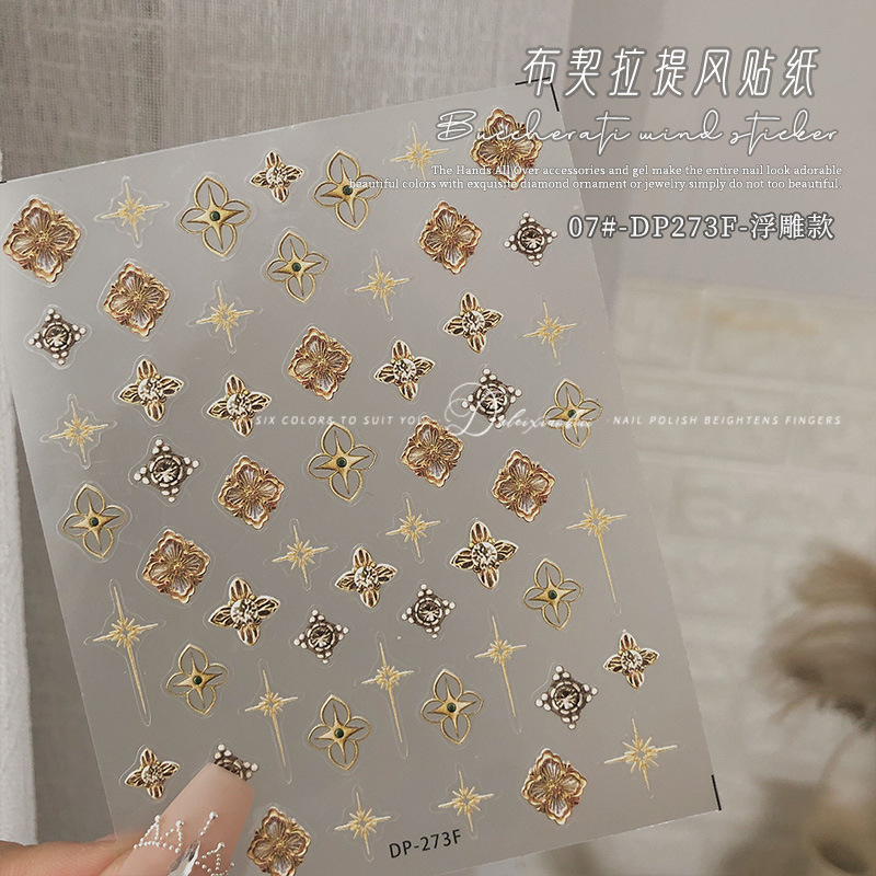Buchelati 네일 아트 스티커 2023 새로운 인터넷 축하 레트로 브론징 네일 데칼 5d 스테레오 릴리프 네일 아트 스티커