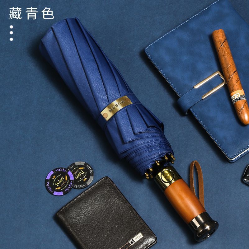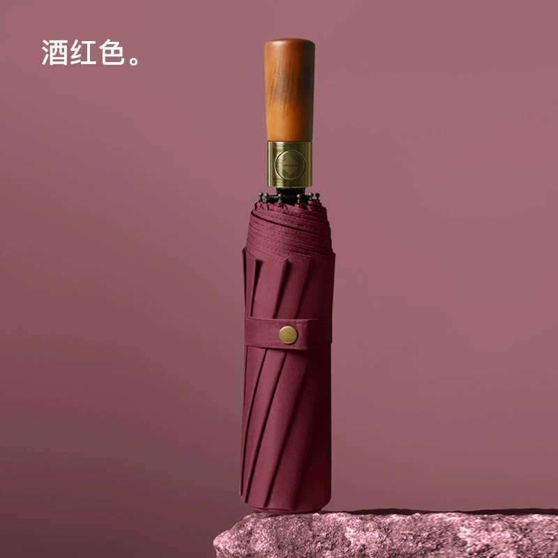70% off 레트로 원목 손잡이 남성용 비즈니스 우산, 비가 오나 눈이 오나 사용 가능, 폭우에도 견디는 접이식 우산, UPF 자외선 차단, 폭우 방지