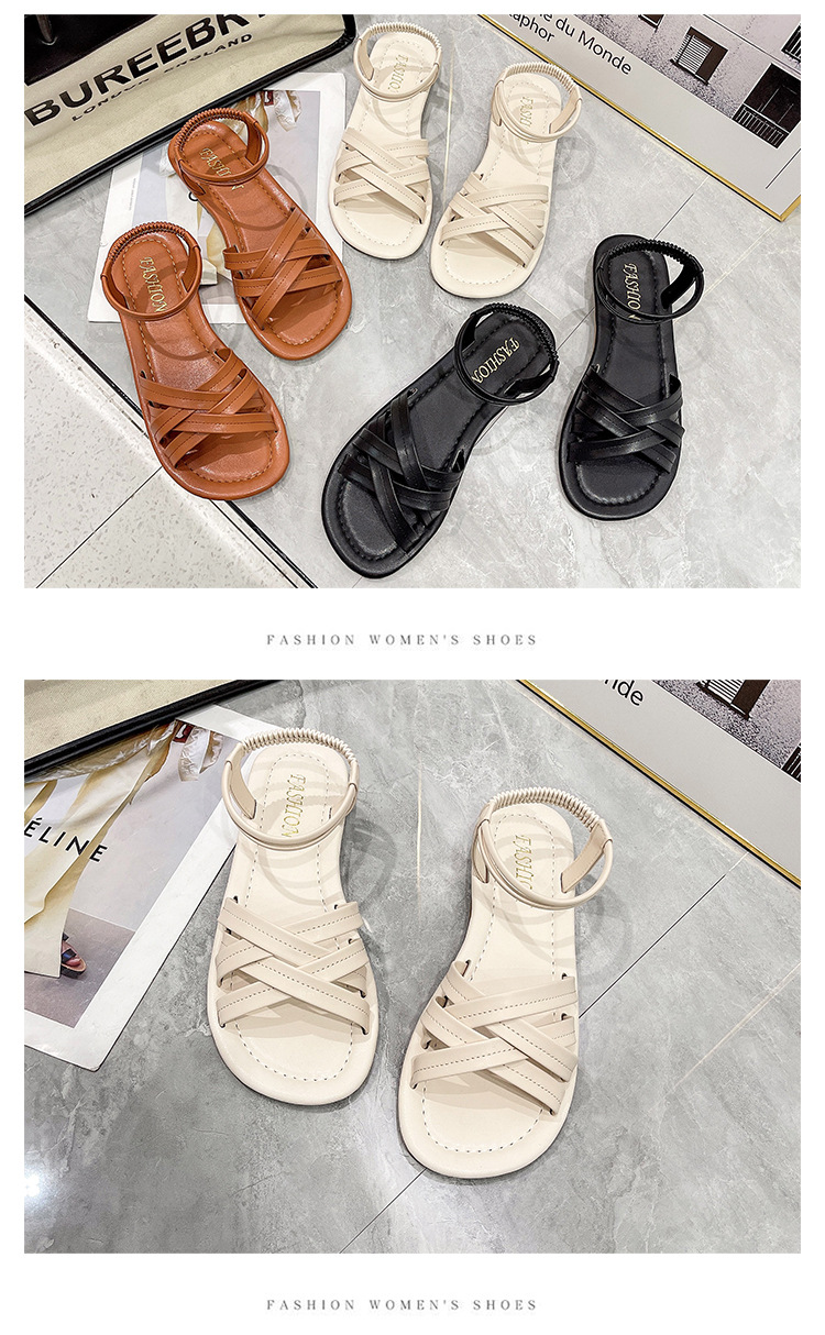 여성용 샌들 2024 새로운 여름 캐주얼 플랫 오픈 발가락 샌들 여성용 플랫 힐 소프트 하단 오픈 발가락 우아한 로마 여성 신발스토어 가기