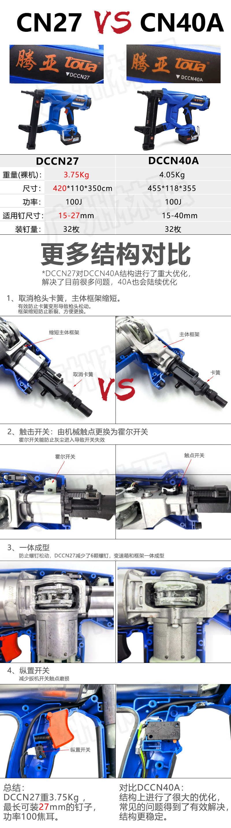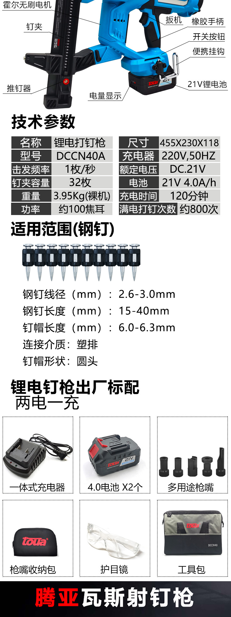 • Tengya DCCN40A 5개 노즐 단일 배터리 + 못 2000개
