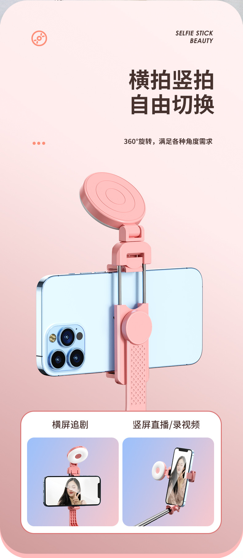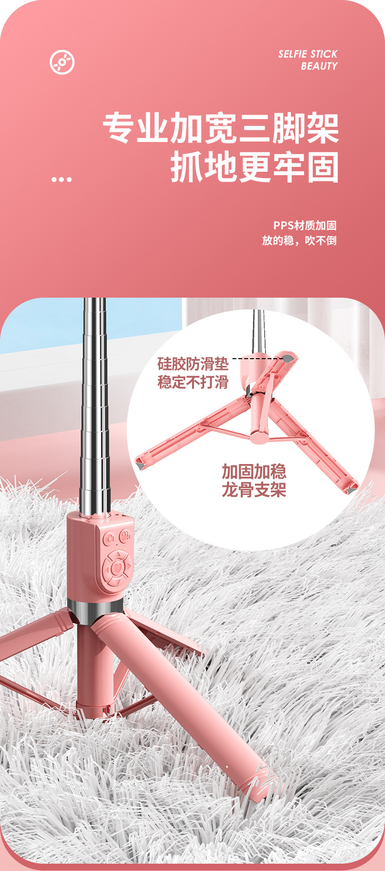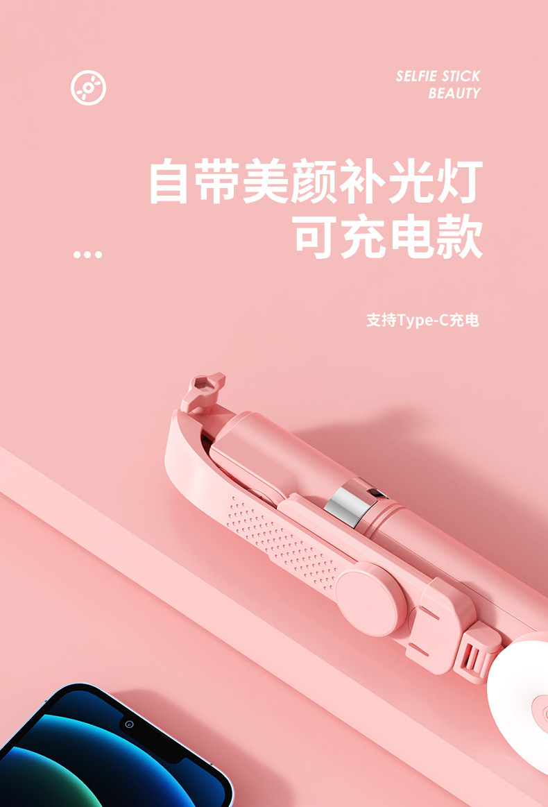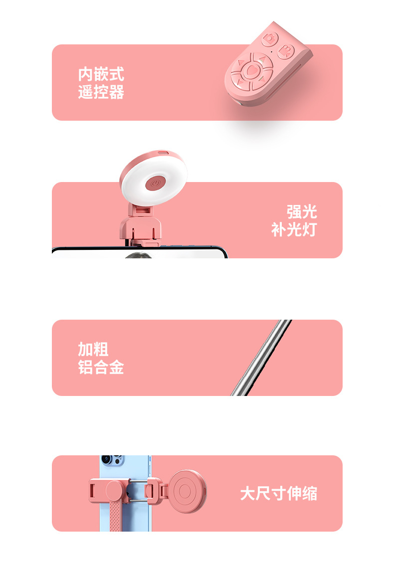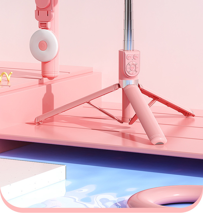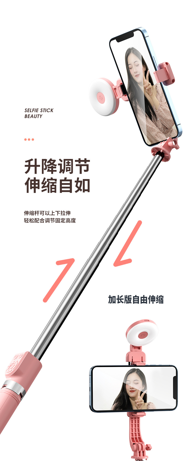 • Z14 프로 핑크 [연장 1.4 m + 다기능 블루투스 리모컨 + 중형 3 색 원형 램프]